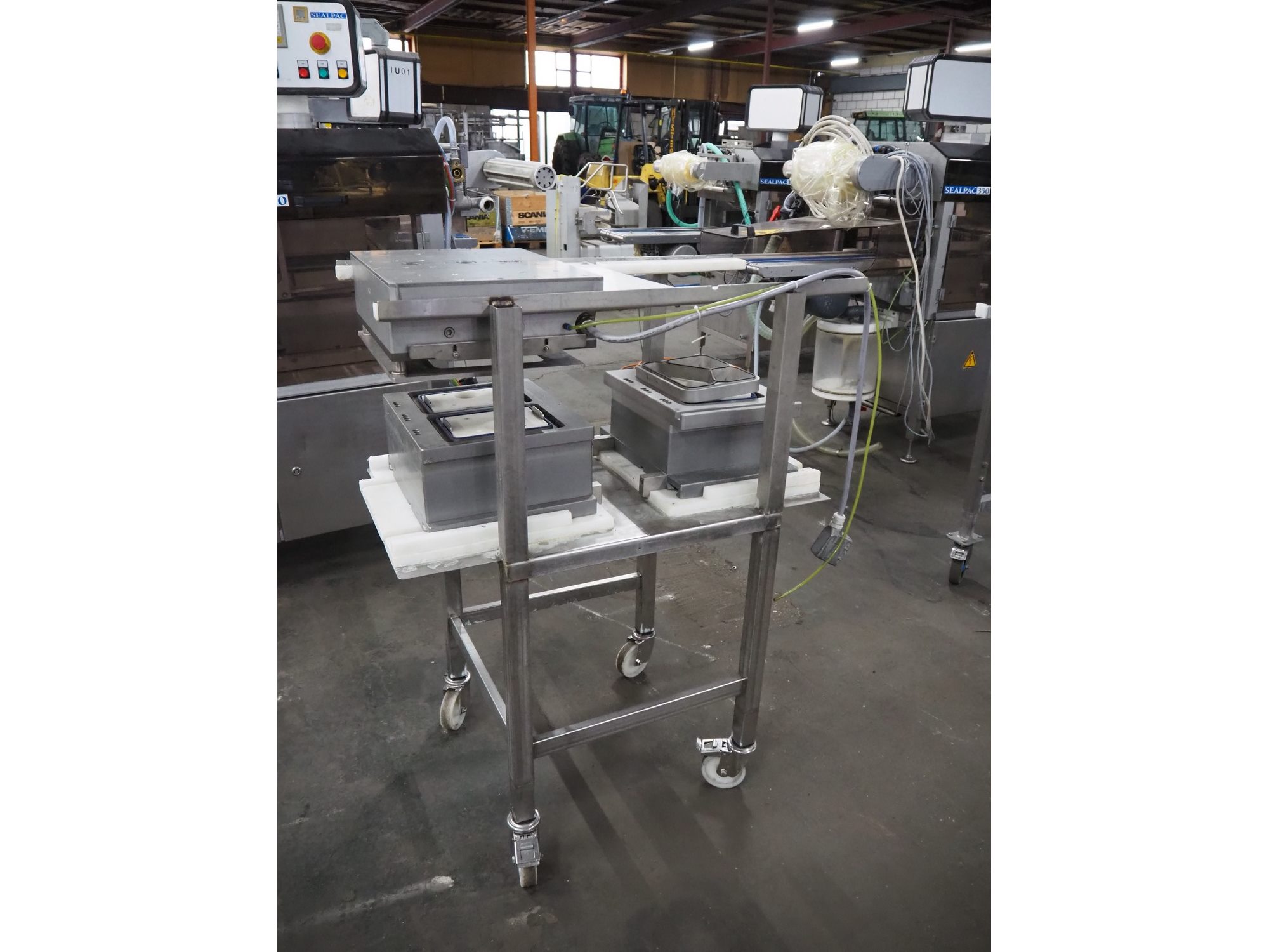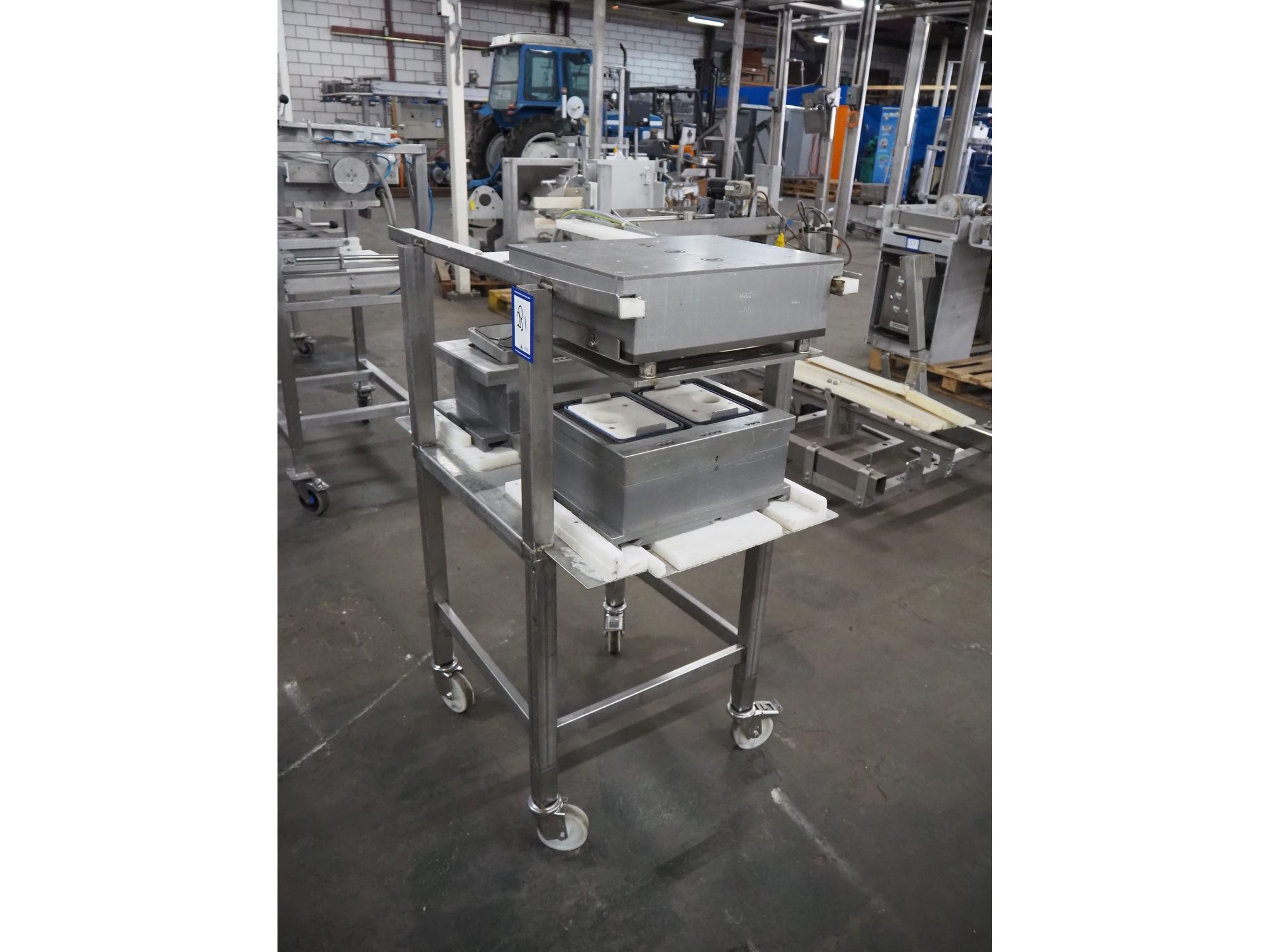 S/s trolley for Sealpac dyes, dimensions dyes: 170 mm x 220 mm, (2x) 185 mm x 140 mm, total dimensions: 1000 mm x 750 mm x 1150 mm.