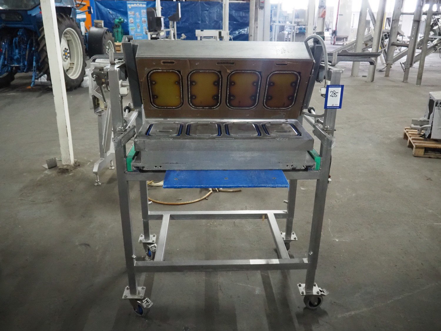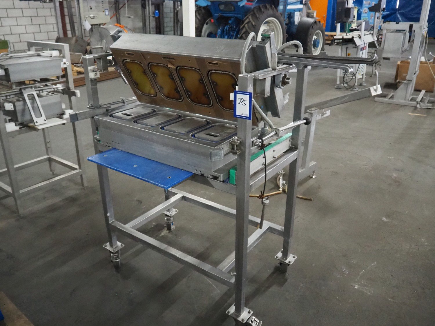 S/s trolley for Sealpac dyes, dimensions dyes: (4x) 215 mm x 145 mm, total dimensions: 1120 mm x 840 mm x 1400 mm.