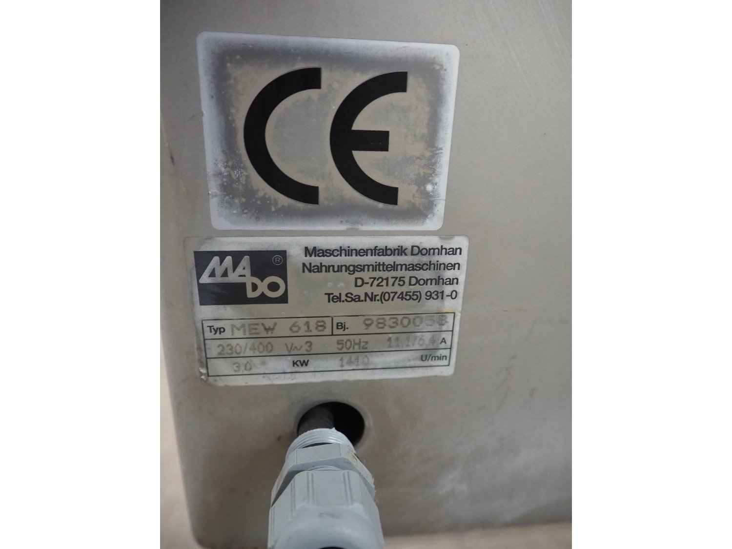 Mado mobile grinder, model: OPTIMO, type: MEW 618, number: 30058, year of construction: 1998, 230/40 V, 3 Ph, 50 Hz, 11.1/6.4 A, 3 kW, plate diameter: 98 mm, total dimensions: 850 mm x 480 mm x 1200 mm.