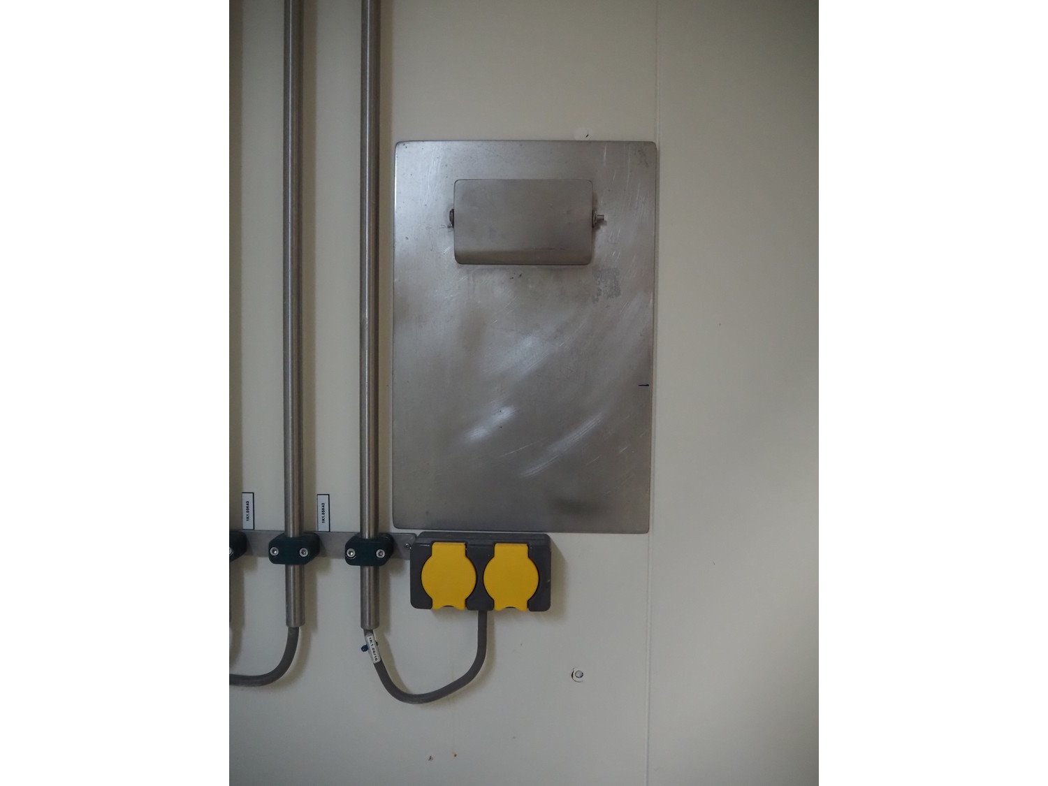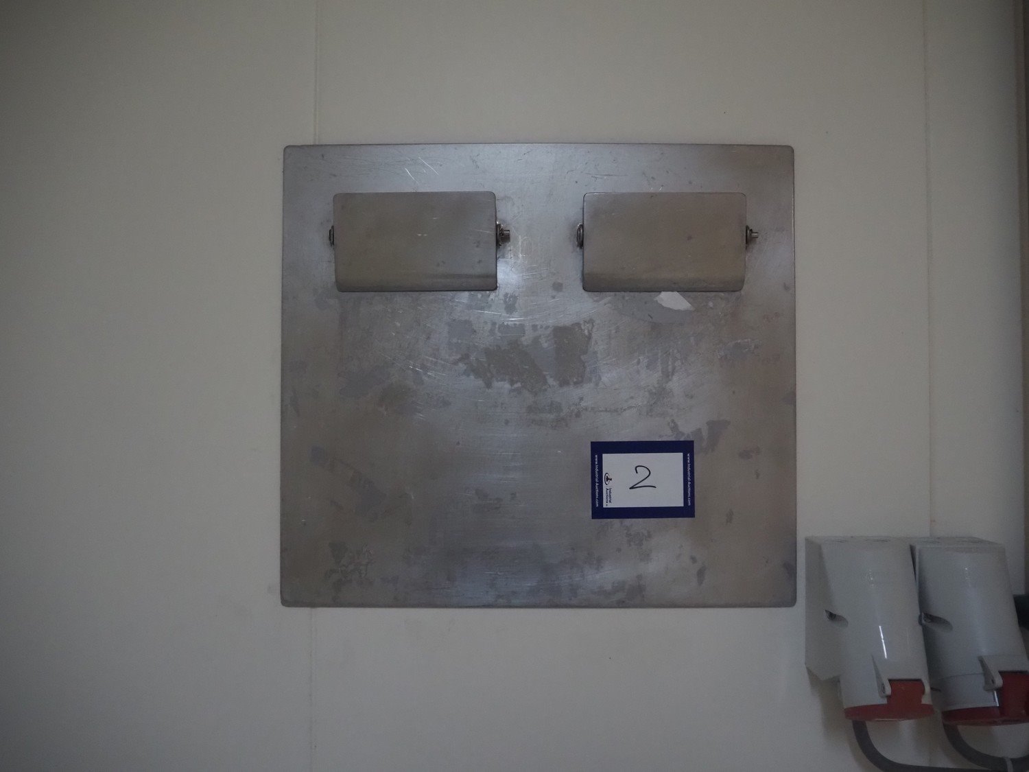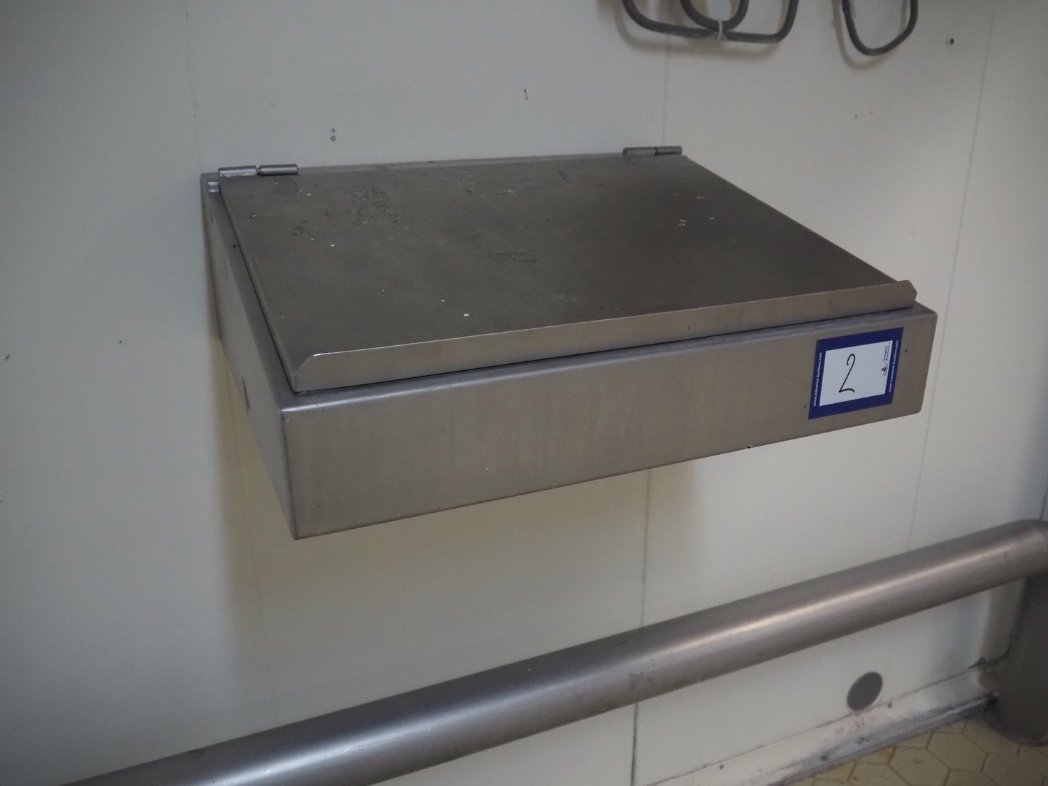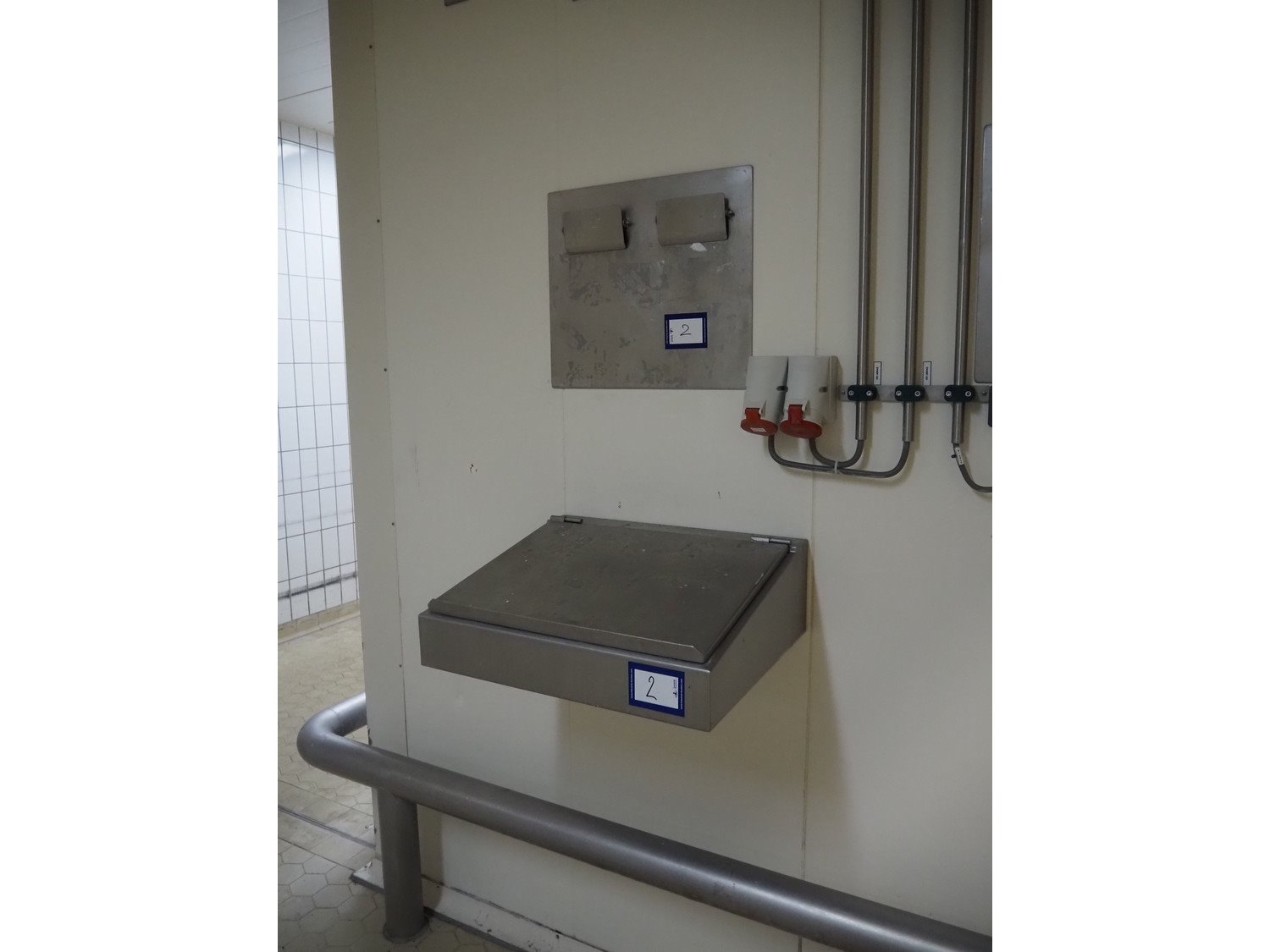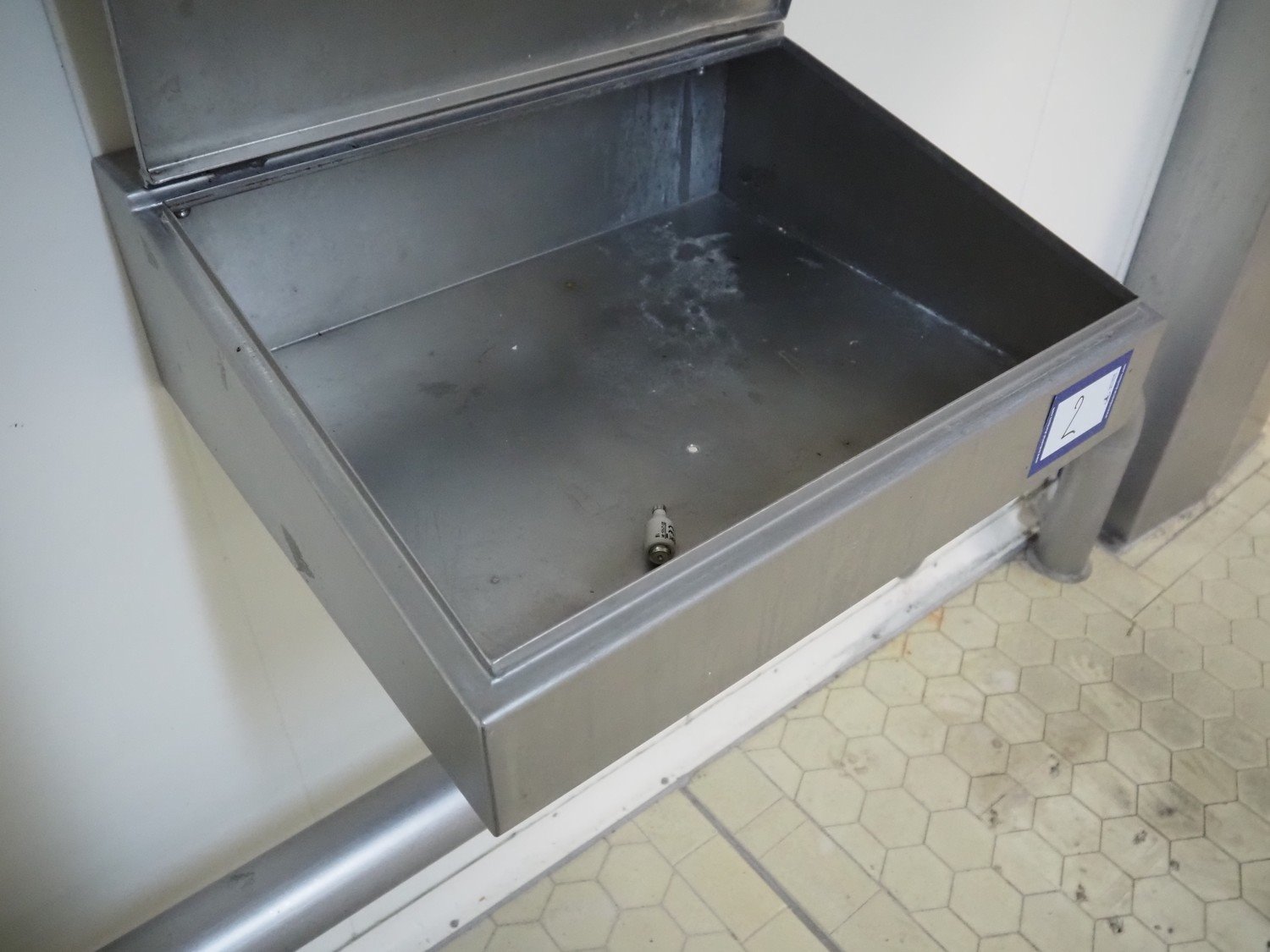 S/s wall mounted writing desk and s/s clipboard, dimensions writing desk: 600 mm x 500 mm x 200 mm.