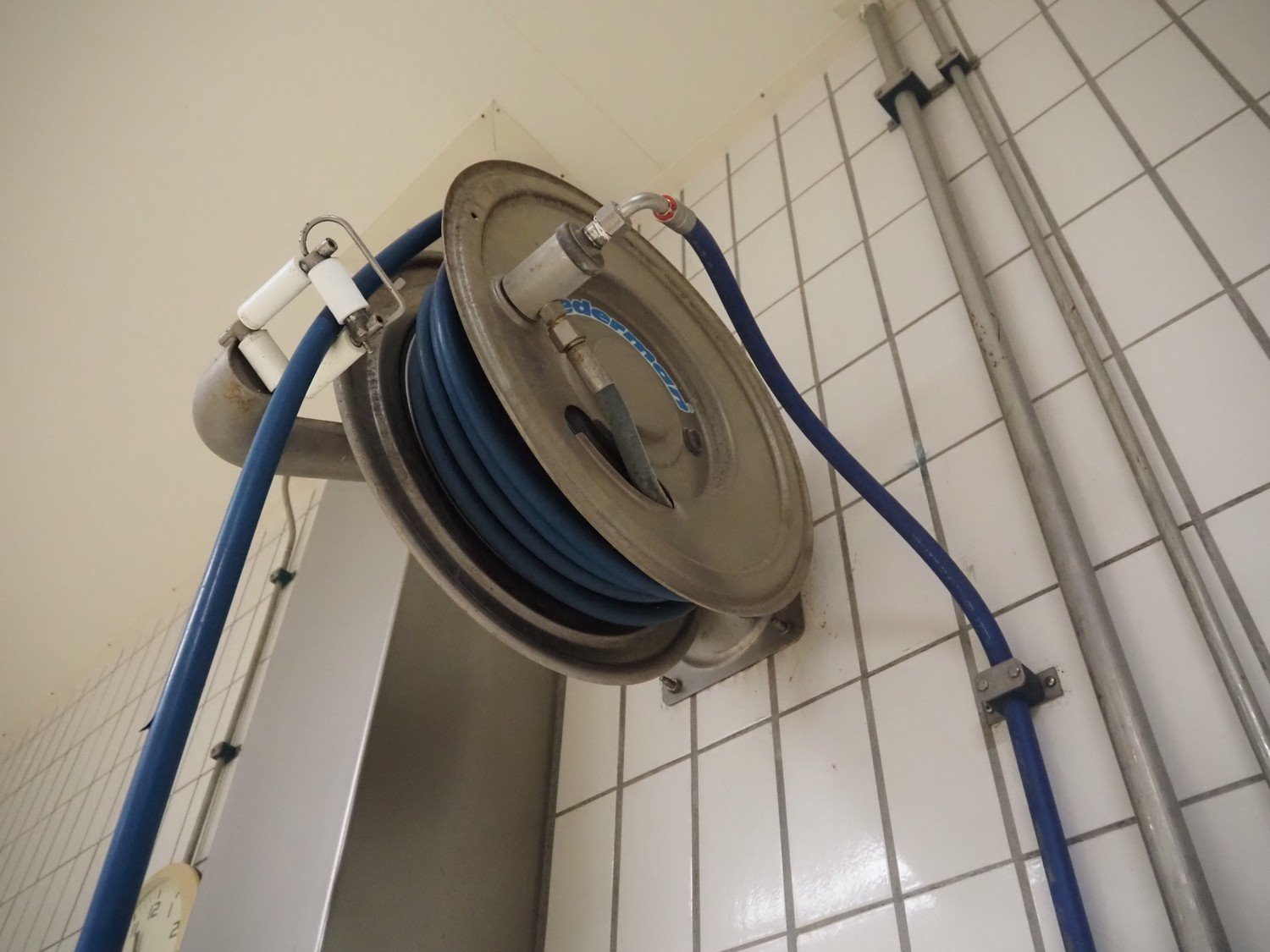 Nederman s/s hose reel, year of construction: 2001, bore: Ø 12.5 mm (1/2"), maximum pressure: 10 Mpa, maximum length: 25 meter, dimensions hose reel: 700 mm x 350 mm x 700 mm.