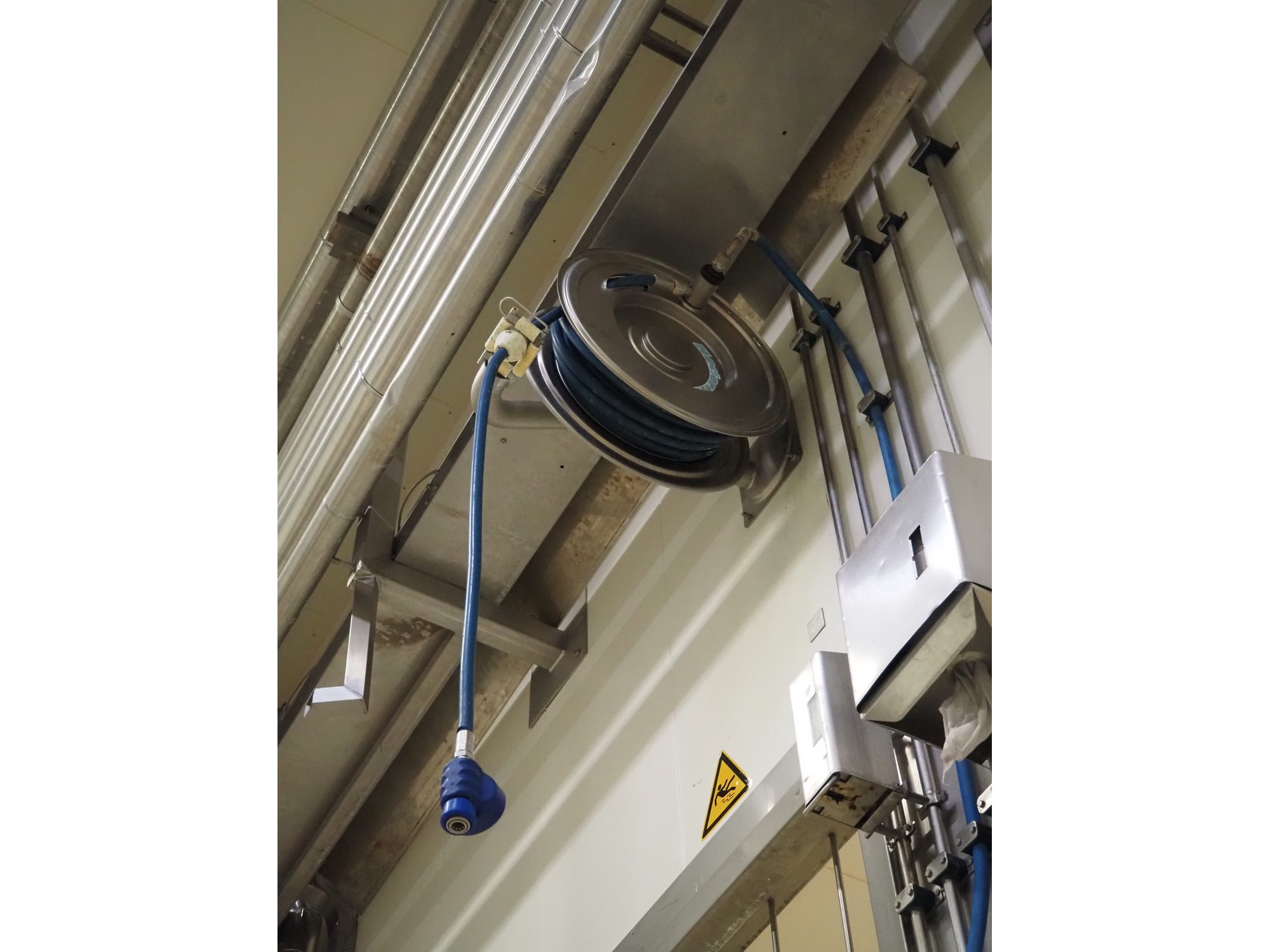 Nederman s/s hose reel, year of construction: 2001, bore: Ø 12.5 mm (1/2"), maximum pressure: 10 Mpa, maximum length: 25 meter, dimensions hose reel: 700 mm x 350 mm x 700 mm.