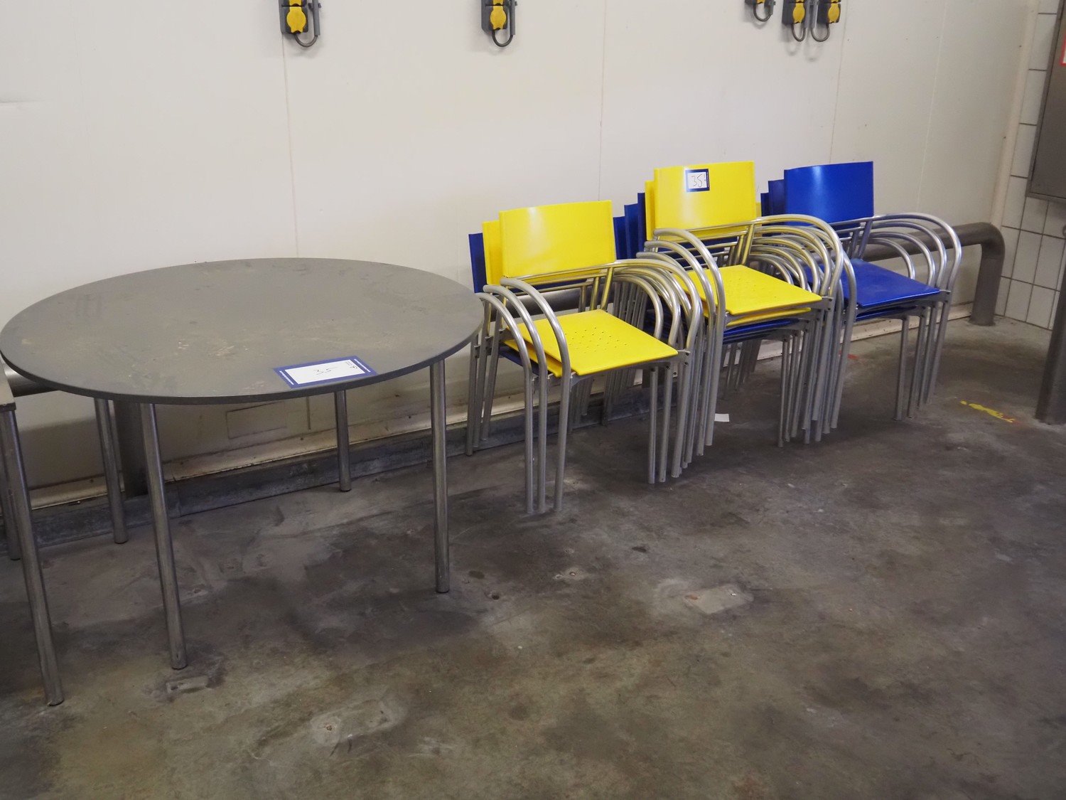 Table with 12 chairs, dimensions table: Ø 1200 mm x 750 mm, dimensions chairs: (12x) 500 mm x 560 mm x 780 mm.