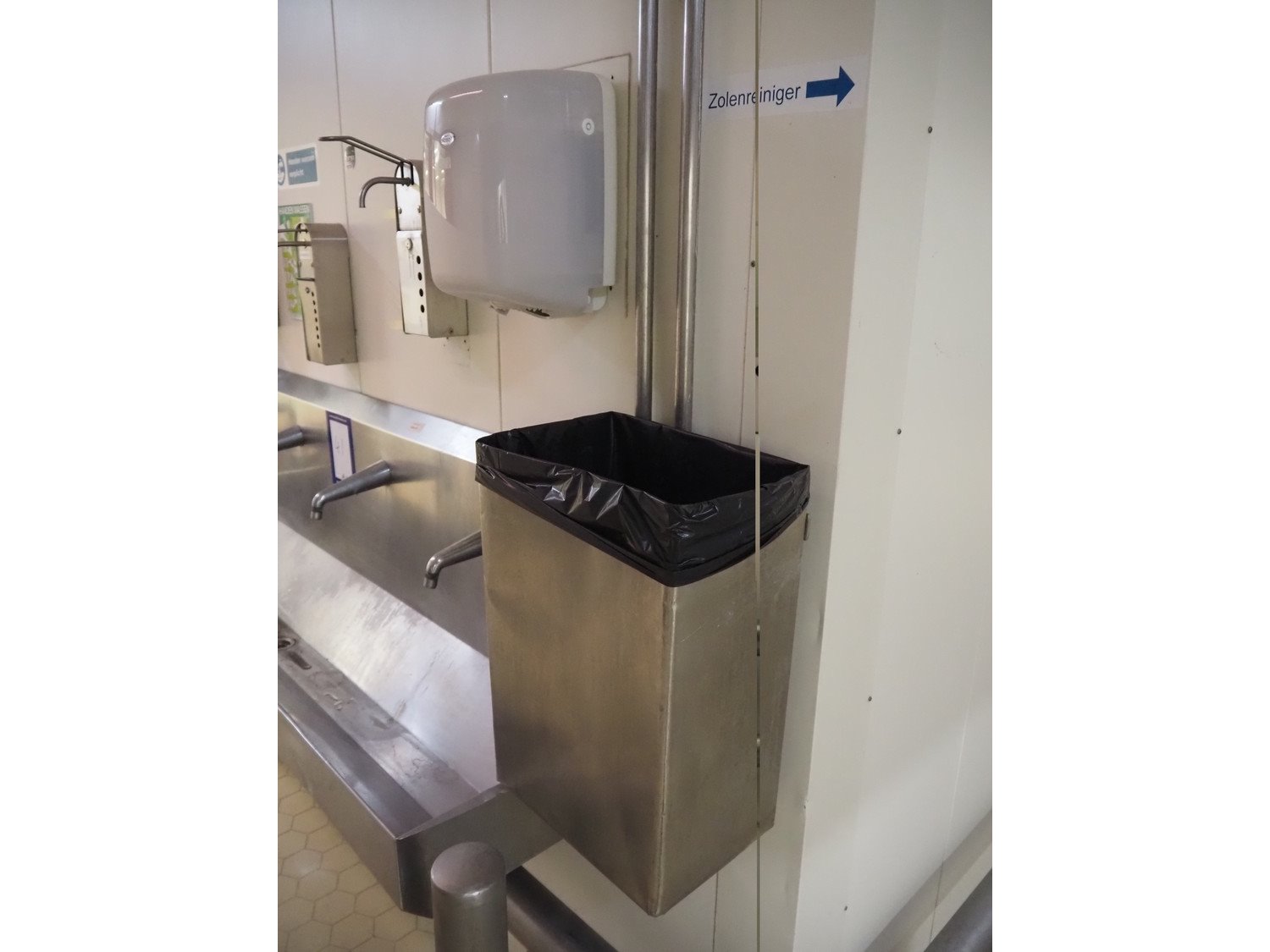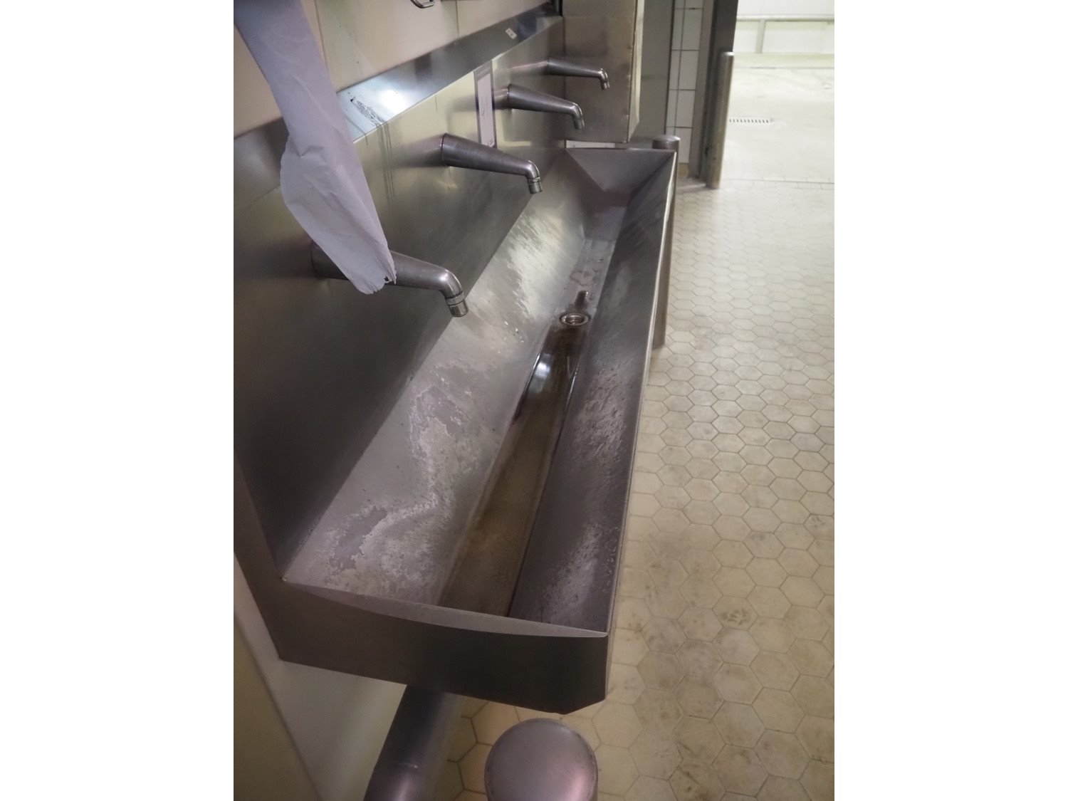 S/s sink, 4 faucets, sensor control, dimensions: 2050 mm x 450 mm x 650 mm. Including 3 s/s soap dispenser, 2 soap dispensers and a s/s waste bag holder.