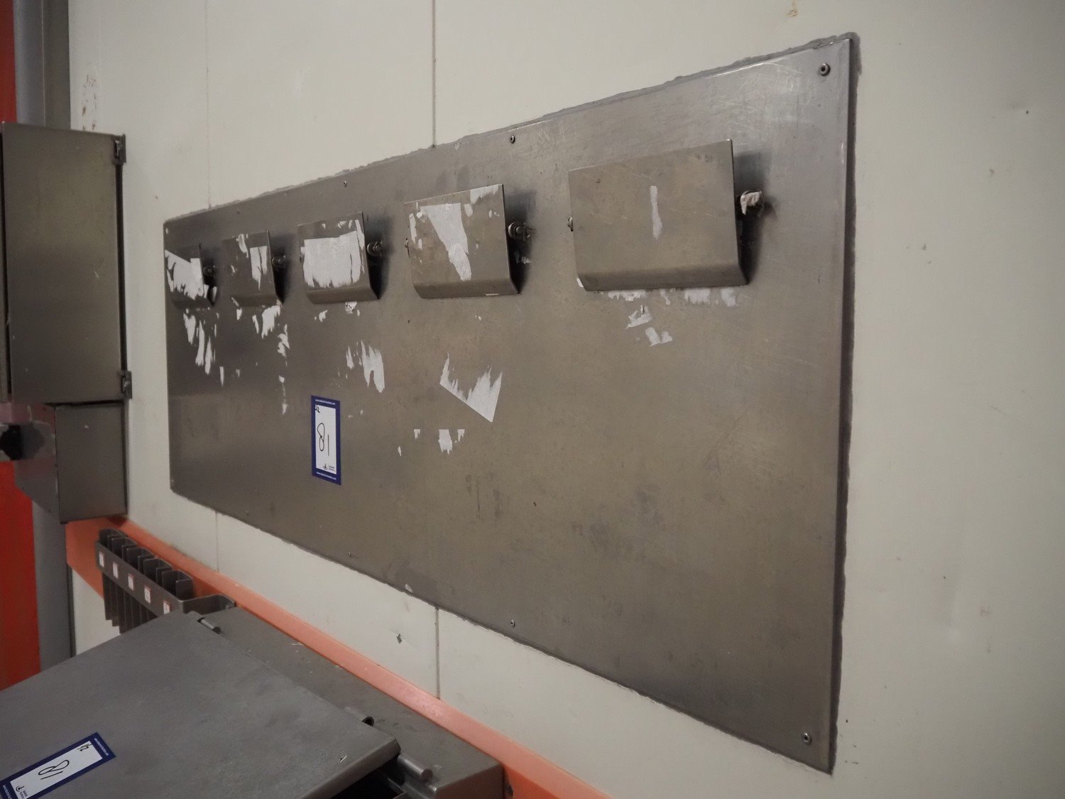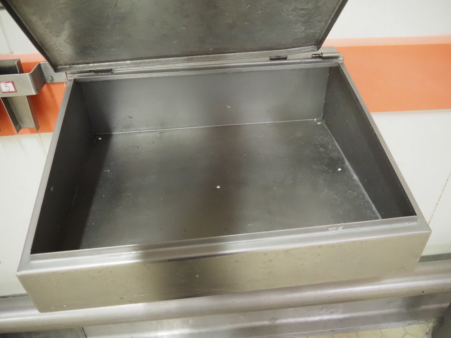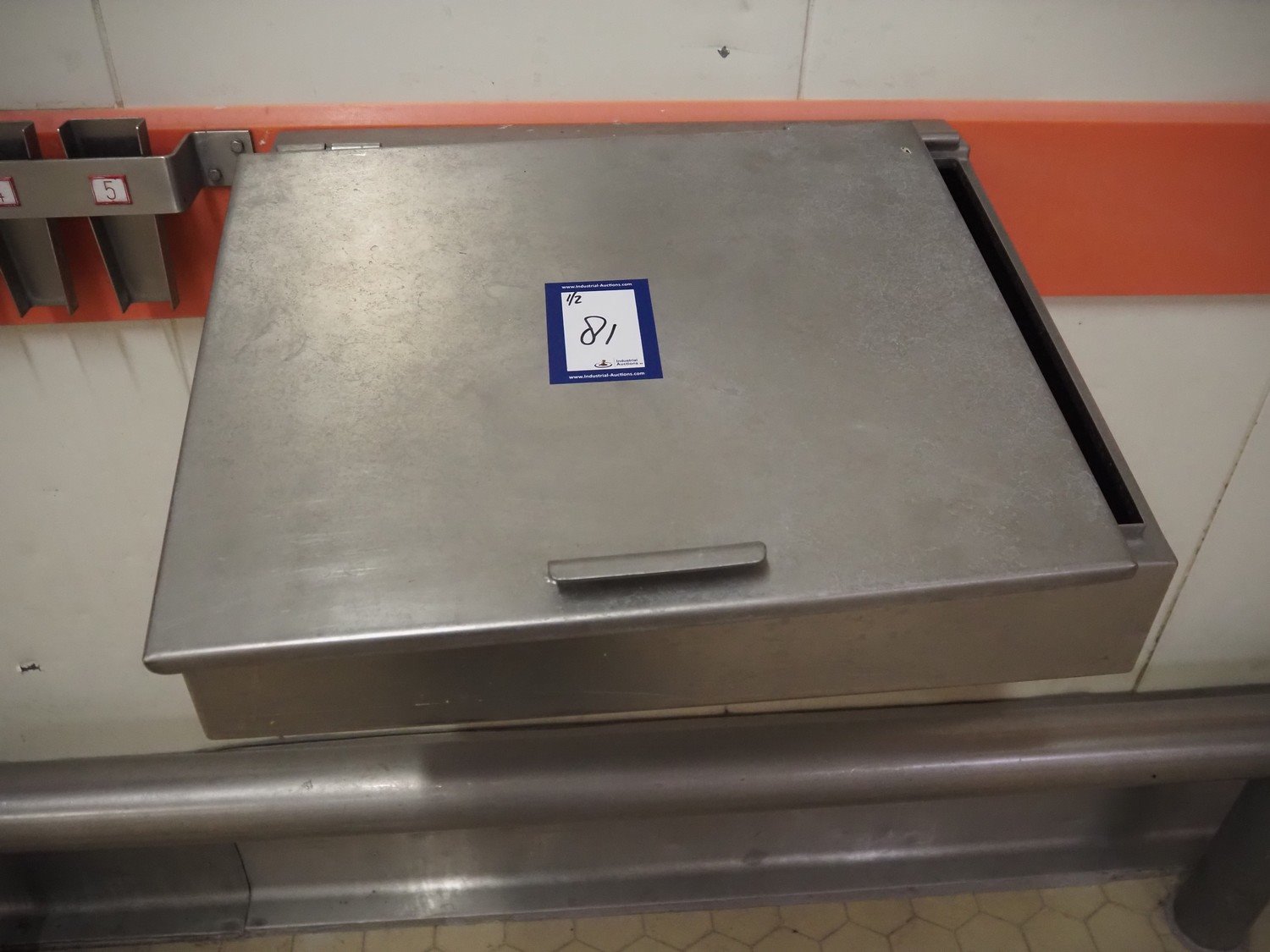 S/s wall mounted writing desk and s/s clipboard, dimensions cabinet: 600 mm x 500 mm x 200 mm.