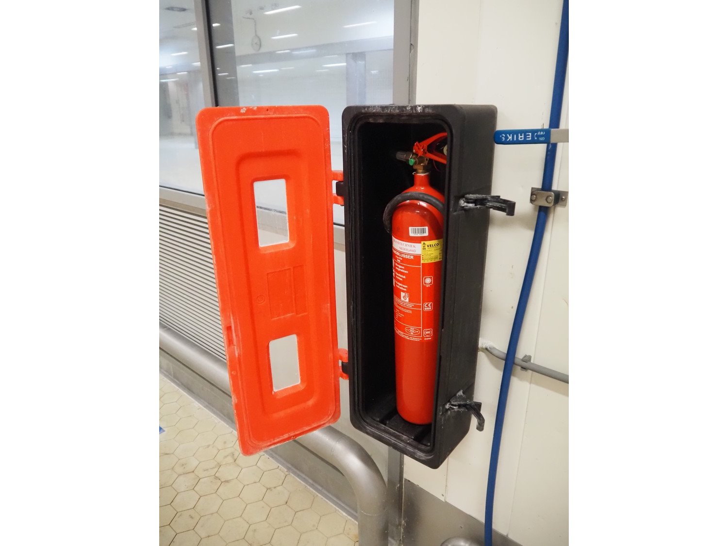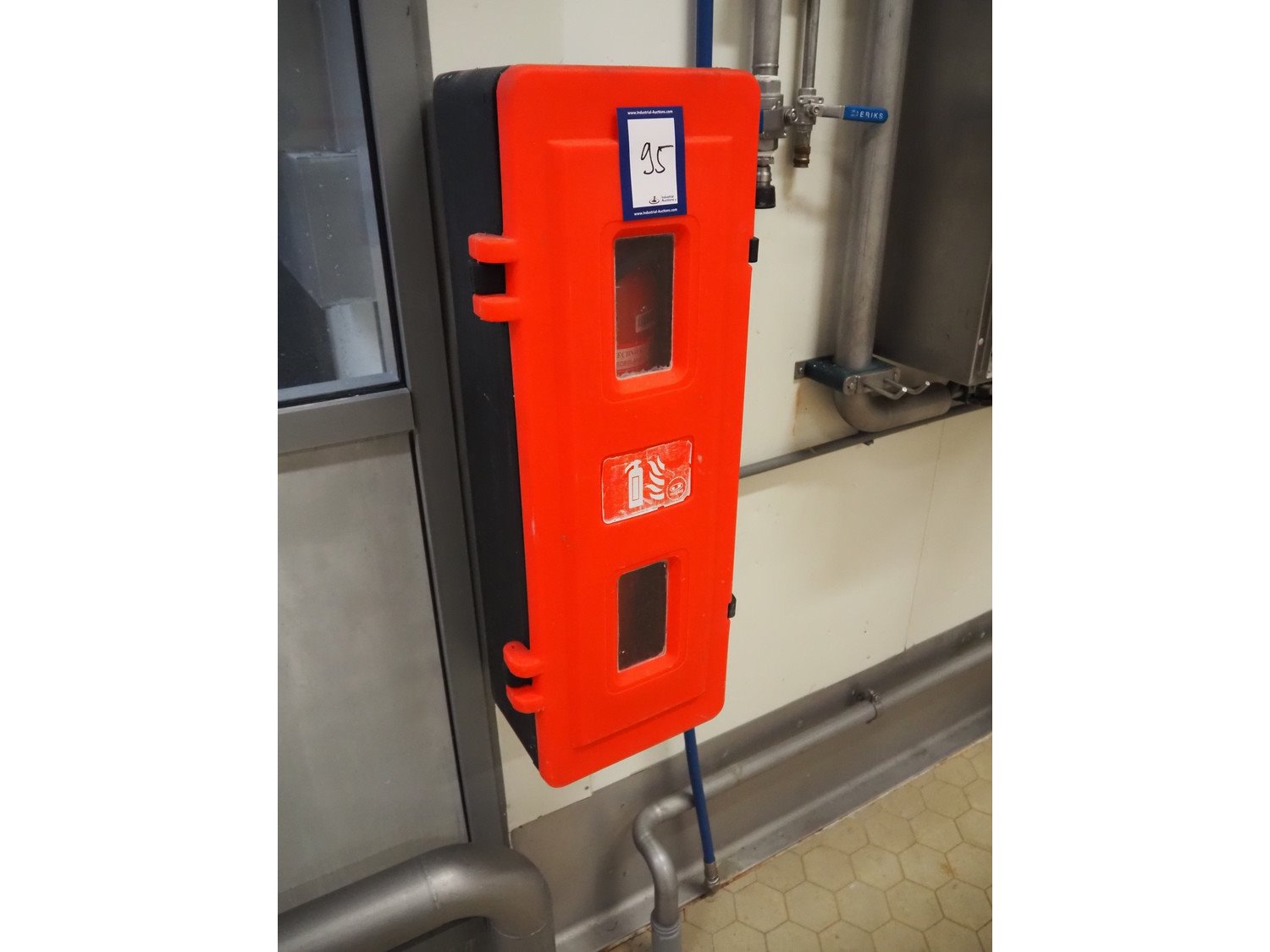 Plastic cabinet with BTN fire extinguisher, dimensions: 320 mm x 270 mm x 830 mm.