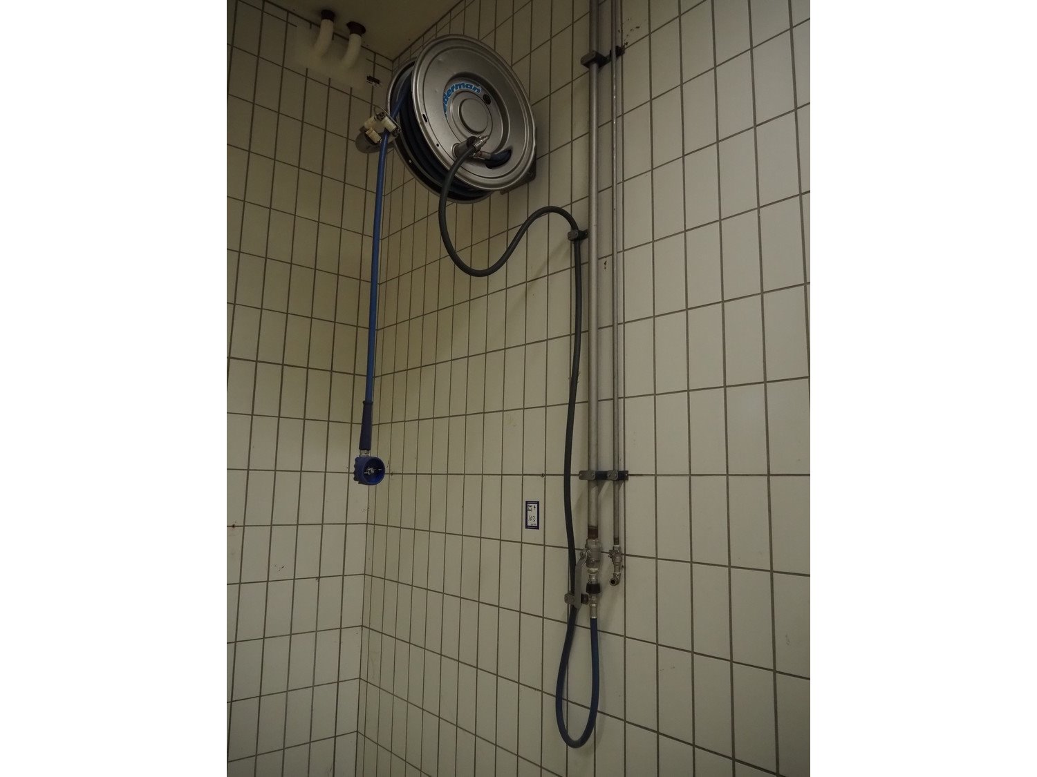 Nederman s/s hose reel, serial number: 886, year of construction: 2000, bore: Ø 12.5 mm (1/2"), maximum pressure: 10 Mpa, maximum length: 25 meter, dimensions hose reel: 700 mm x 350 mm x 700 mm.
