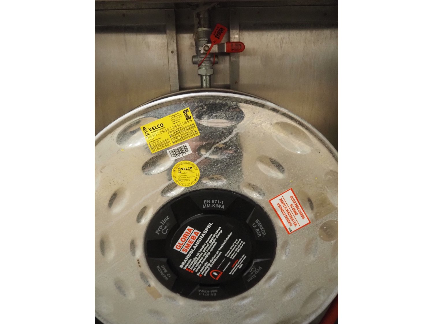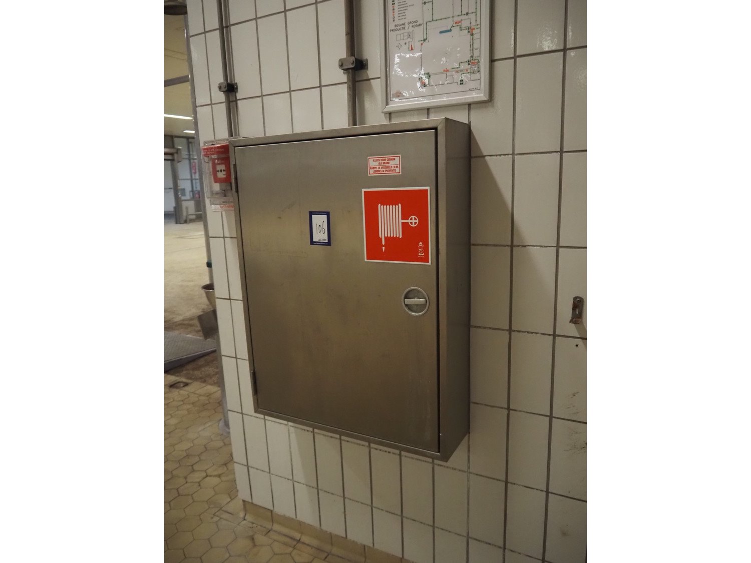 S/s cabinet with Gloria Smeba fire hose reel, dimensions: 730 mm x 180 mm x 940 mm.