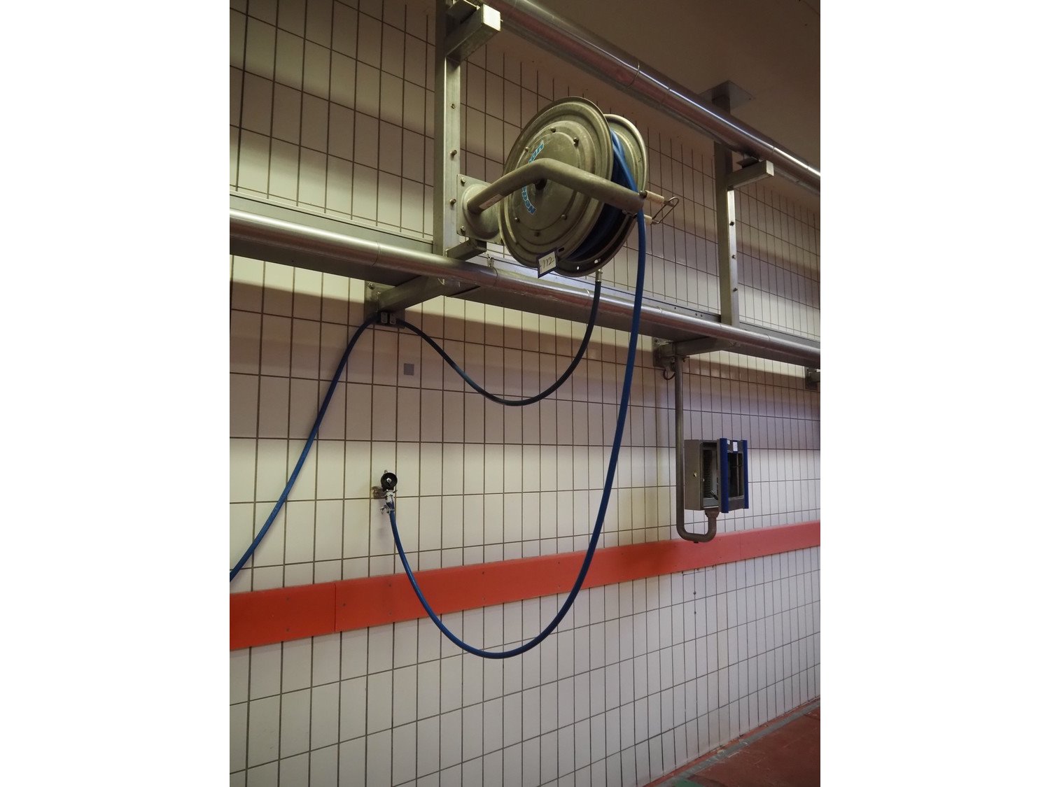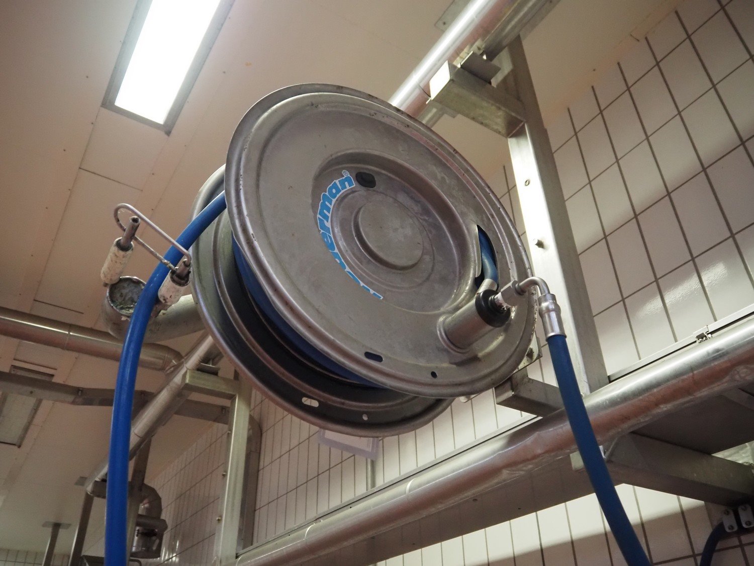 Nederman s/s hose reel, serial number: 886, year of construction: 2001, bore: Ø 12.5 mm (1/2"), maximum pressure: 10 Mpa, maximum length: 25 meter, dimensions hose reel: 700 mm x 350 mm x 700 mm.