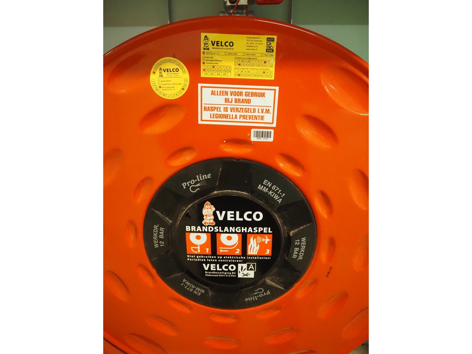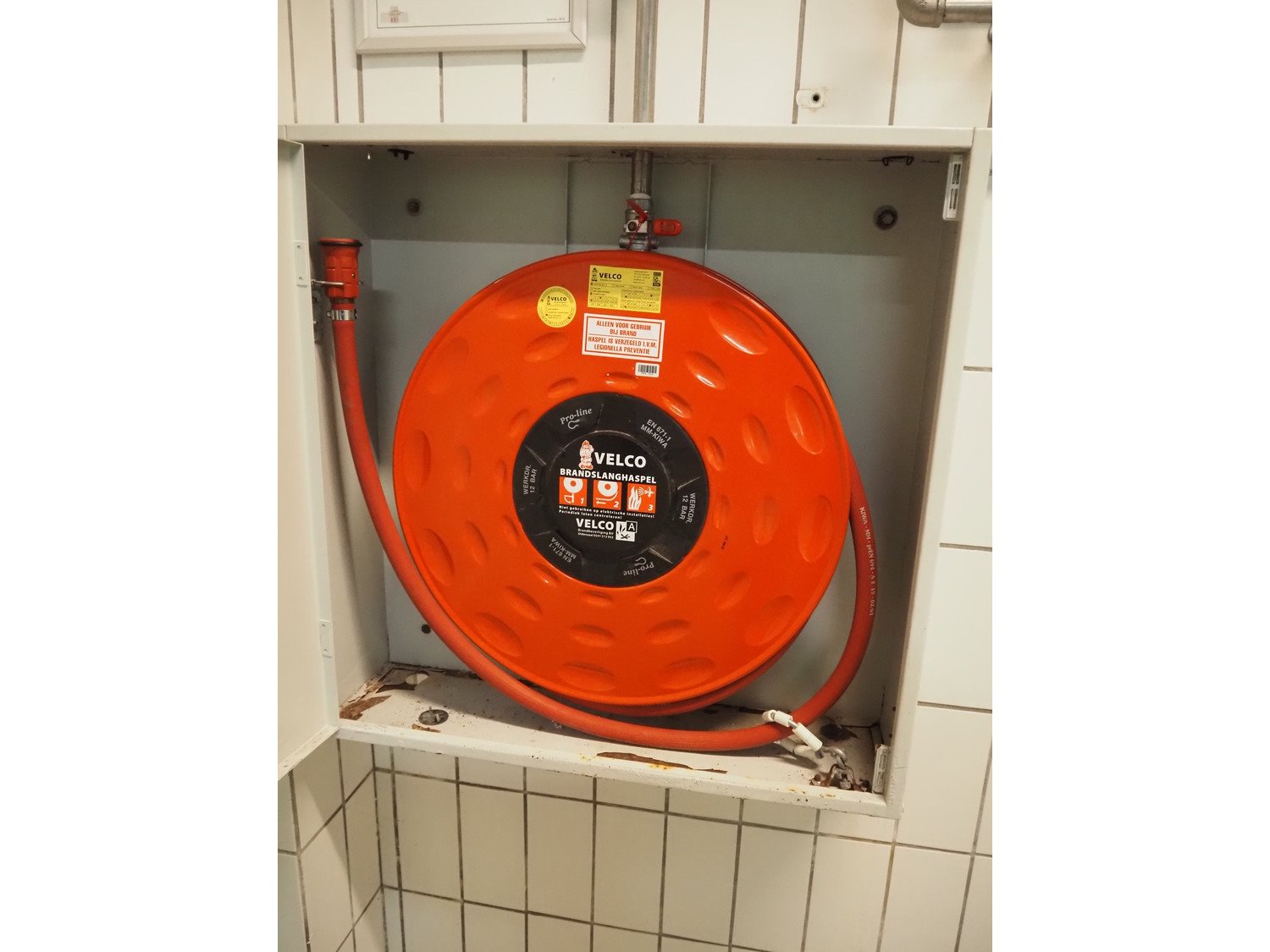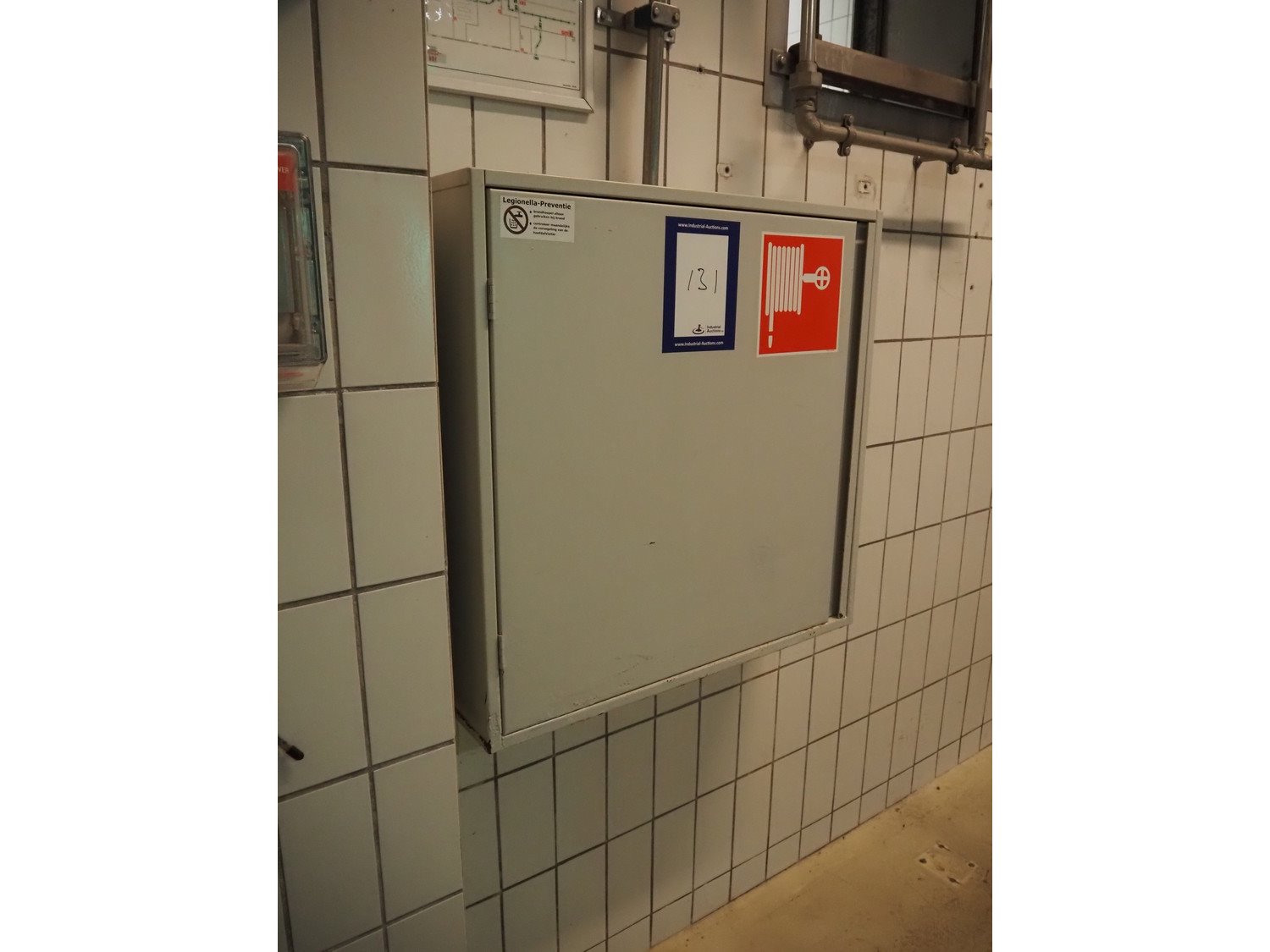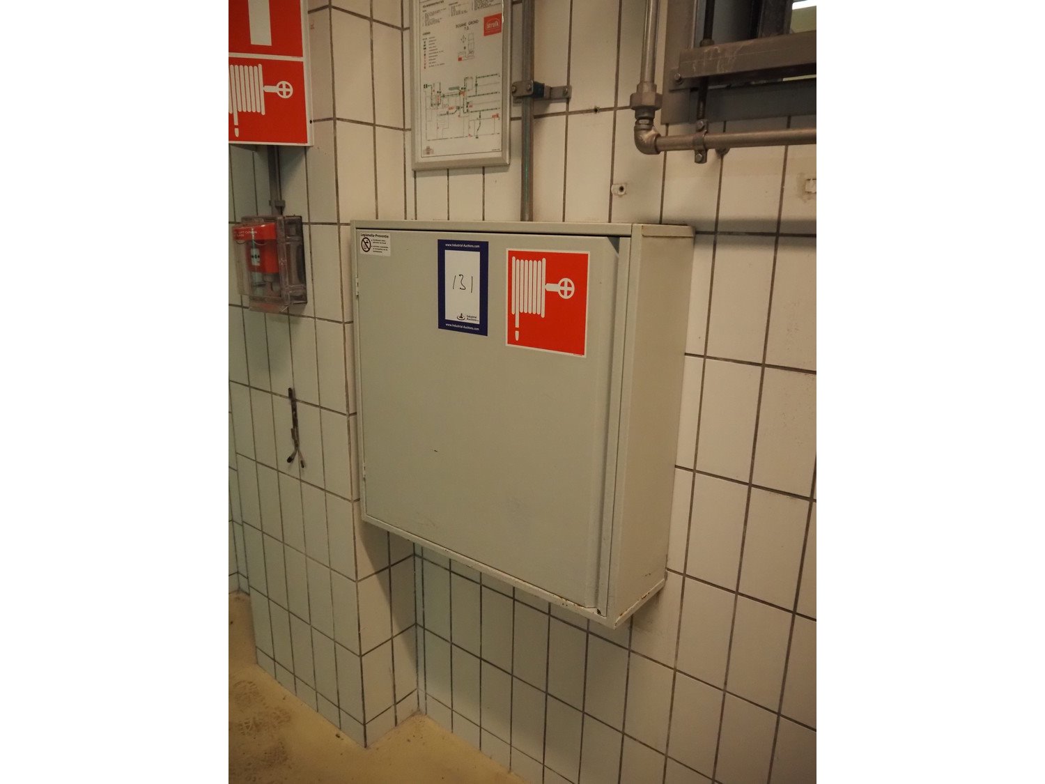 S/s cabinet with Velco fire hose reel, dimensions: 790 mm x 230 mm x 790 mm.