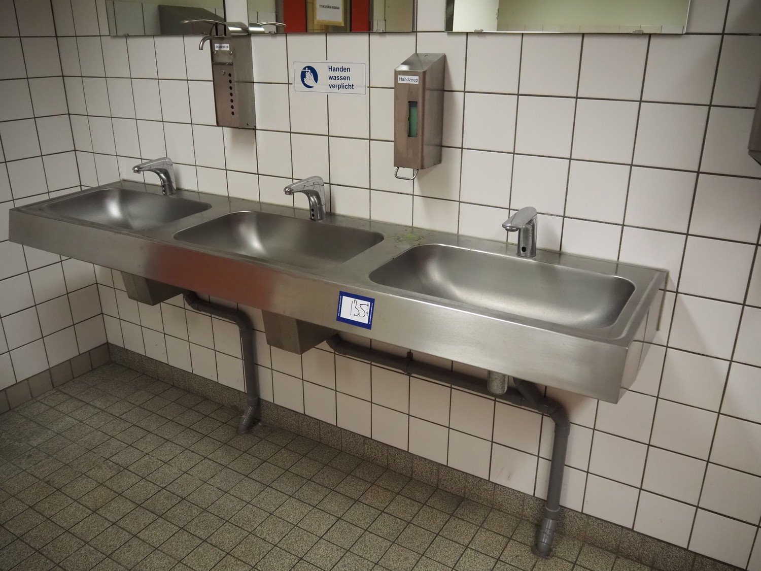 Franke s/s sink with 3 faucets, sensor control, dimensions: 2700 mm x 500 mm x 200 mm. Including 3 mirrors, 2 s/s soap dispensers and 2 s/s paper dispensers.