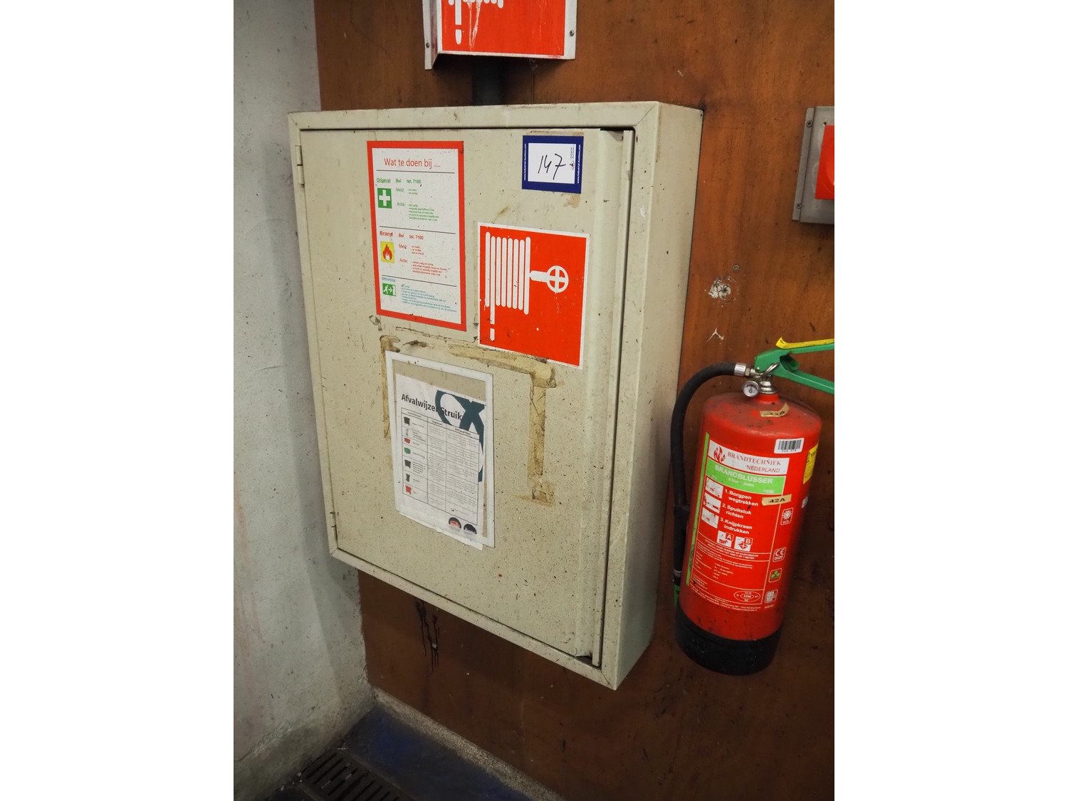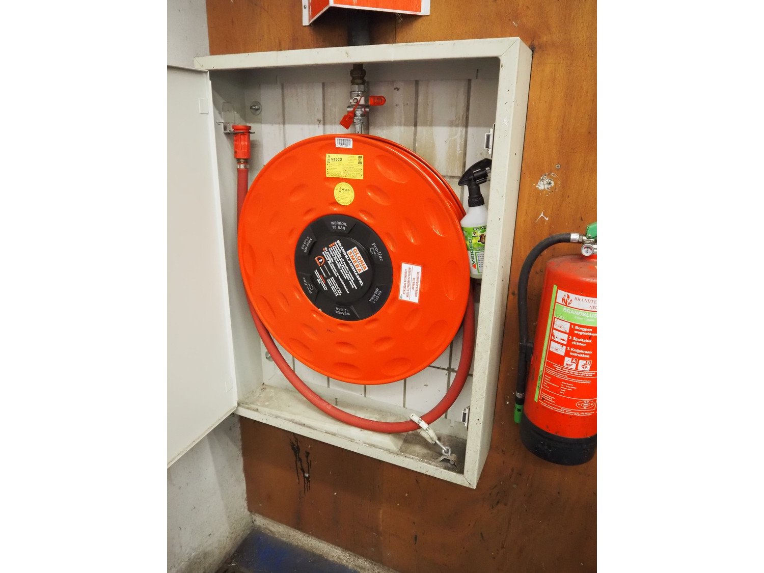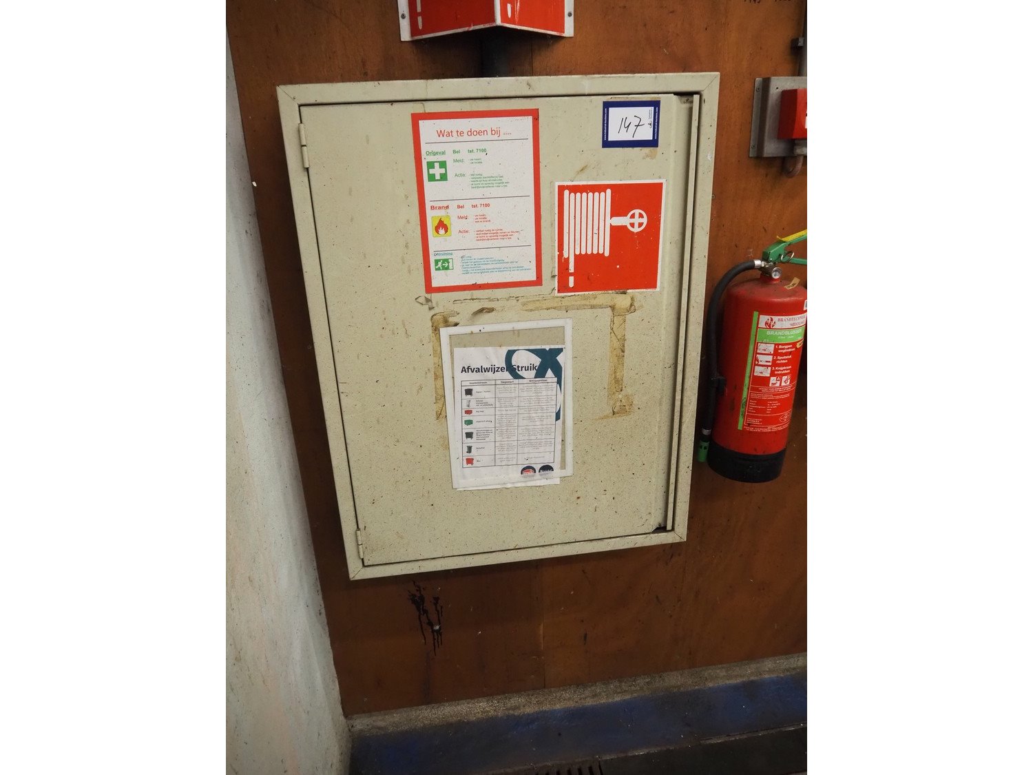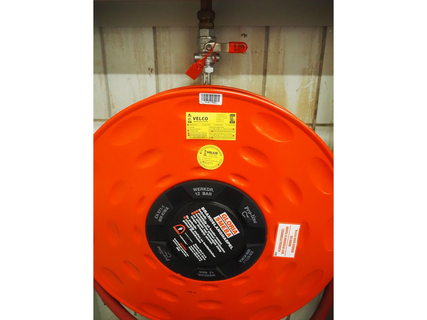S/s cabinet with Gloria Smeba fire hose reel, dimensions: 730 mm x 180 mm x 940 mm.