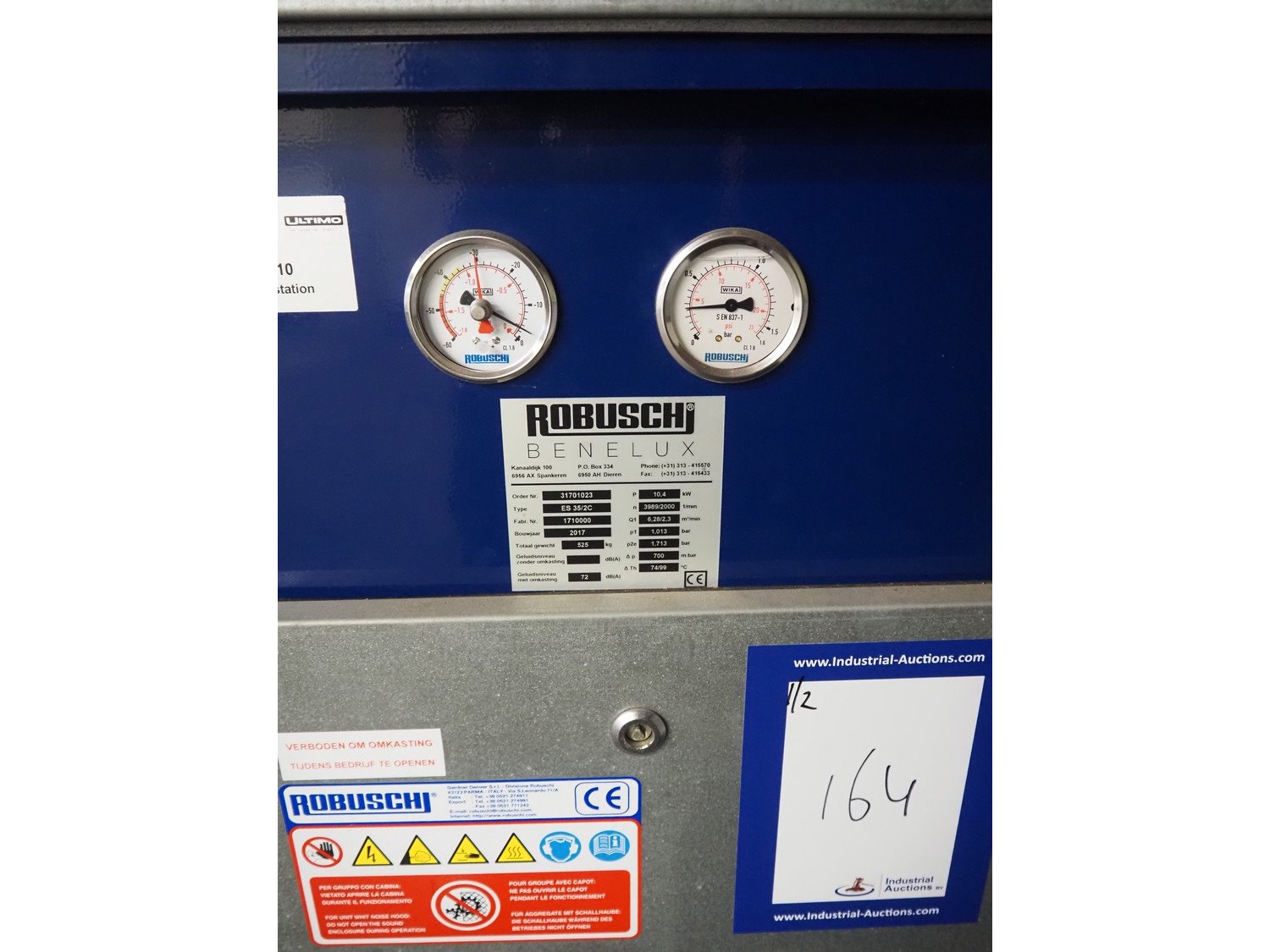 Robusch blower unit, type: ES 35/2C, factory number: 1710000, year of construction: 2017, capacity: 6.28/2.3 m³/min, weight: 525 kg, dimensions: 1200 mm x 1200 mm x 1300 mm.