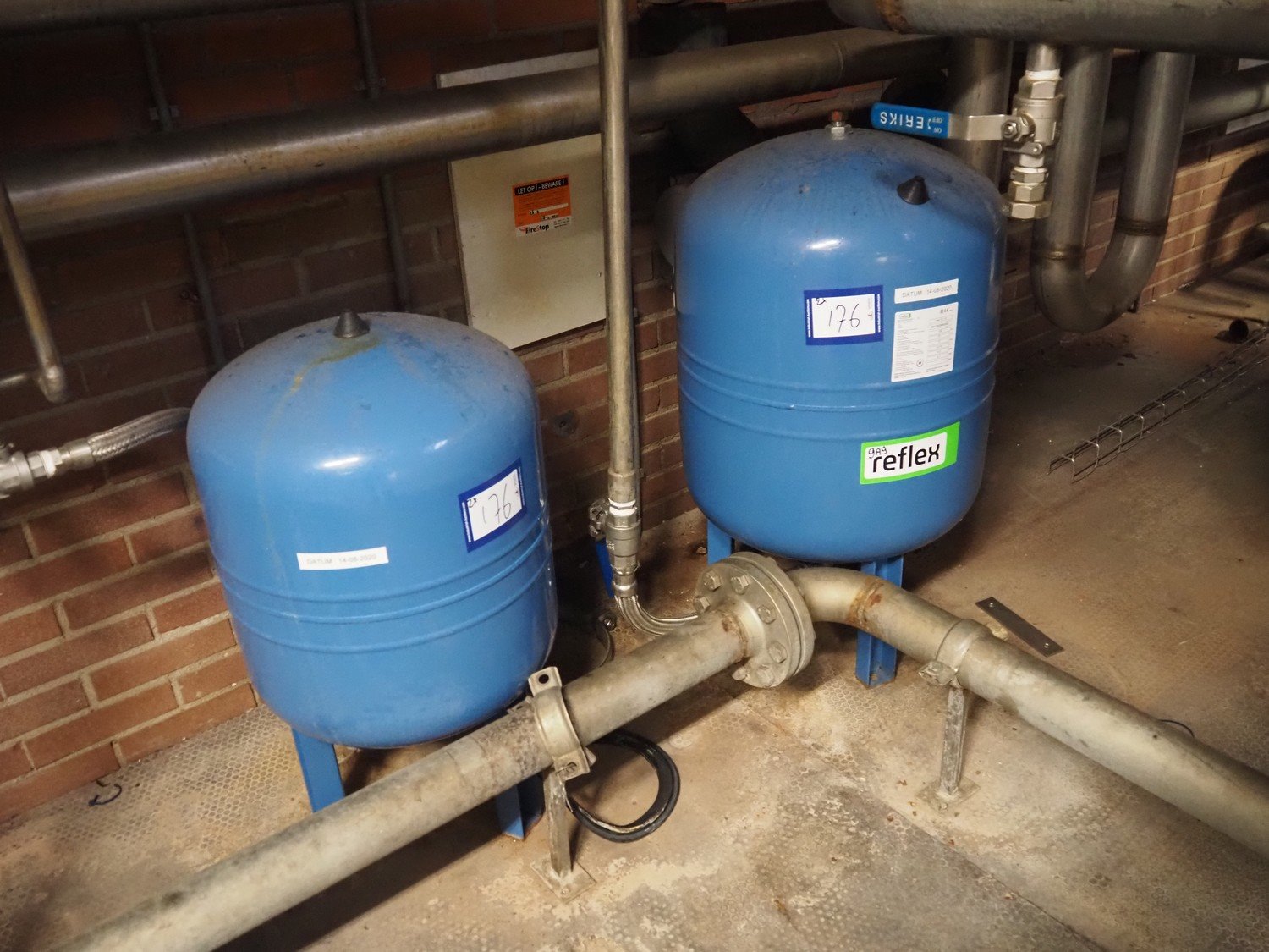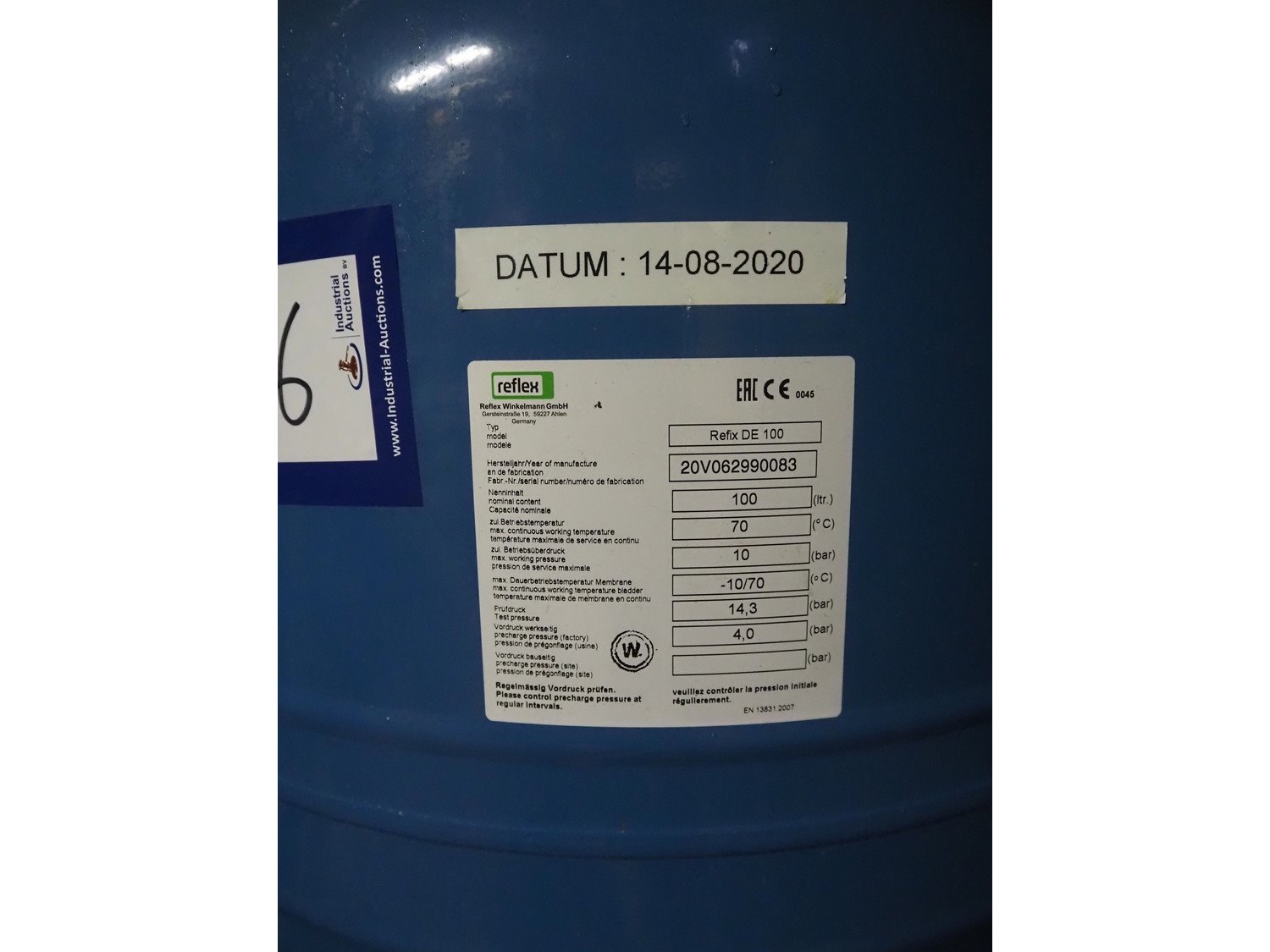 2 Reflex steel pressure vessels, (1x) model: Refix DE 100, serial number: 20V062990083, volume: 100 litres, dimensions: Ø 400 mm x 750 mm and (1x) Ø 400 mm x 750 mm.
