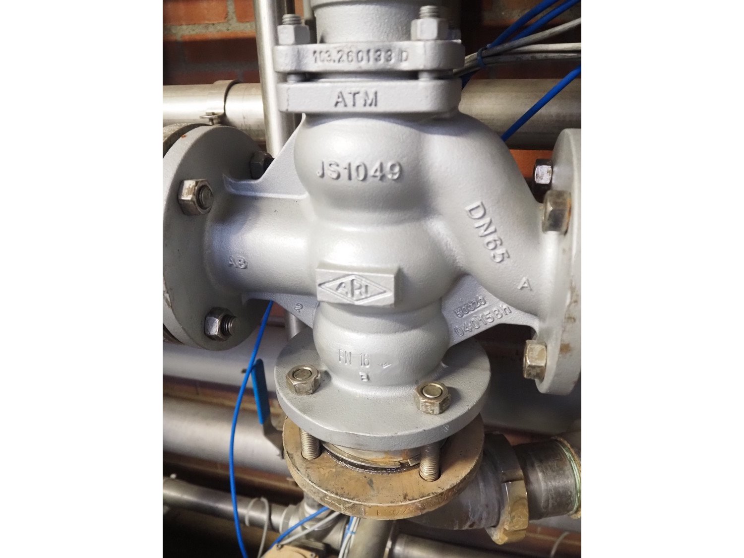 ARI valve with Siemens actuator, DN 65, dimensions: 280 mm x 170 mm x 920 mm.