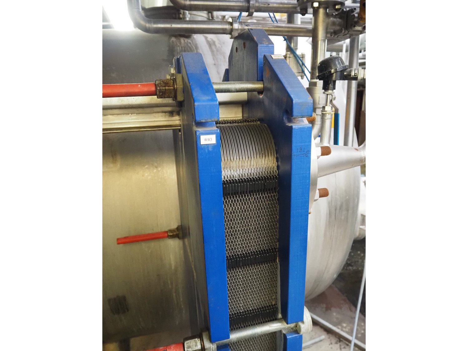 Alfa Laval plate heat exchanger, type: M15-BFM8, manufacturing number: 30103-25741, year of construction: 2001, maximum pressure: 10.0 bar, maximum temperature: 100°C, dimensions: 500 mm x 600 mm x 1900 mm.