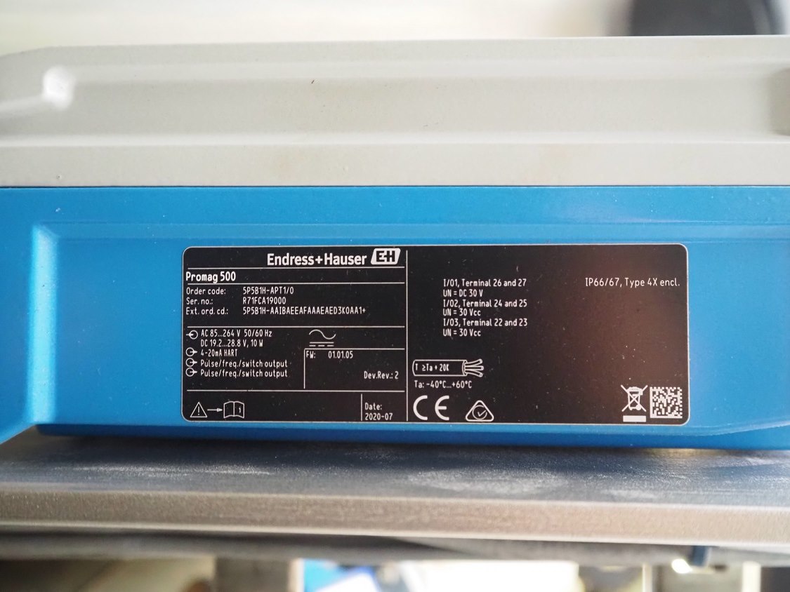 Endress + Hauser flowmeter, model: PROMAG 500, serial number: R71FCA19000, dimensions: 100 mm x 200 mm x 350 mm.