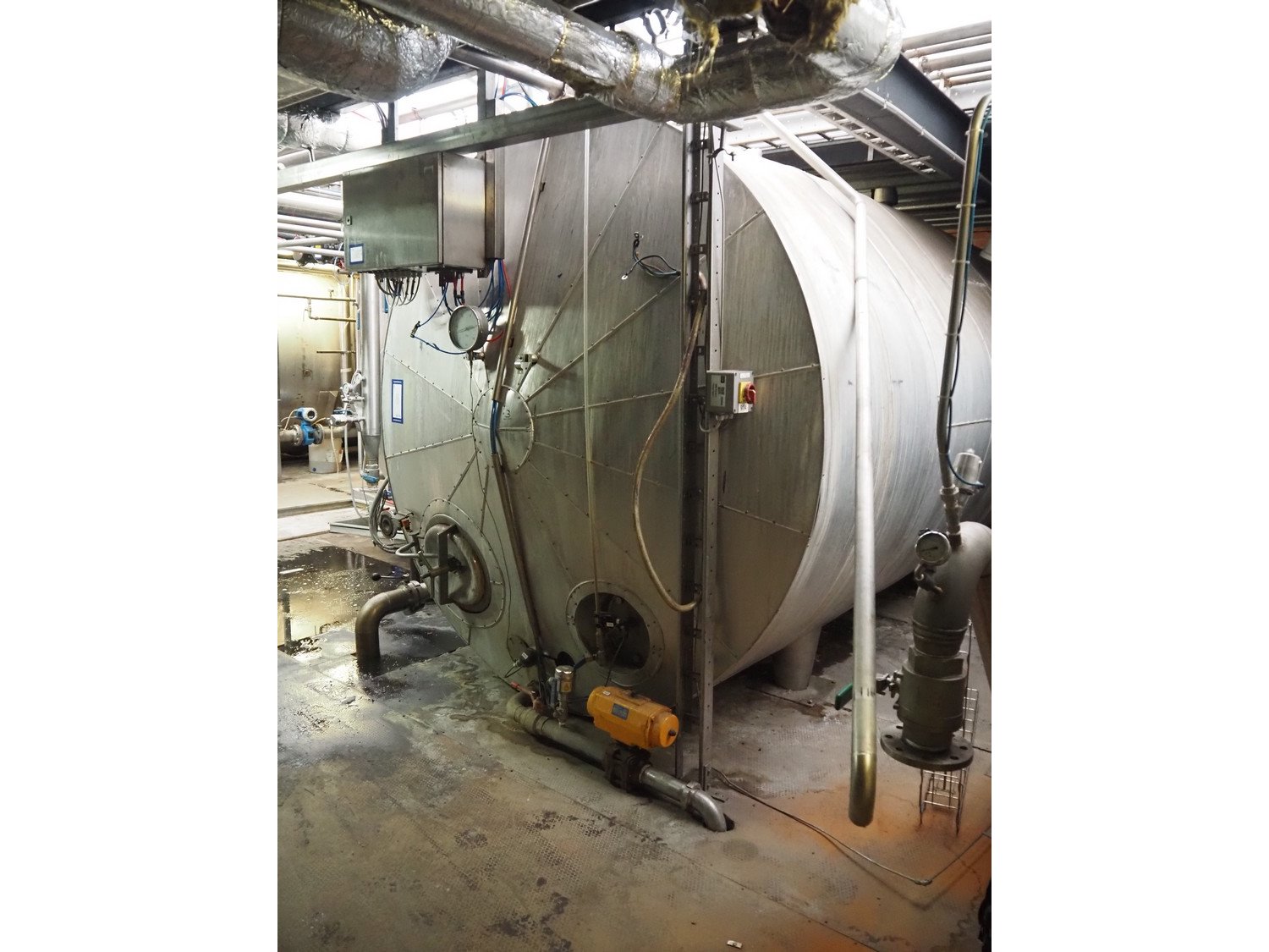 Isolated hot water tank, Ø tank: 2300 mm, total dimensions: 4200 mm x 2300 mm x 2400 mm. Including s/s switch cabinet, dimensions switch cabinet: 600 mm x 200 mm x 390 mm.