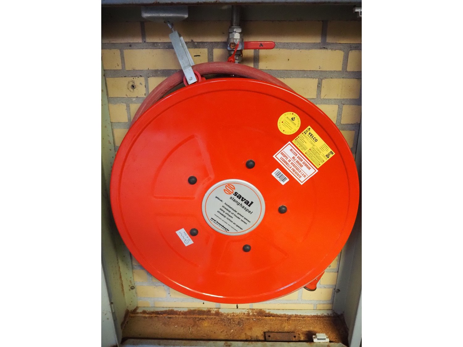 Steel cabinet with Saval fire hose reel , dimensions: 730 mm x 140 mm x 950 mm.