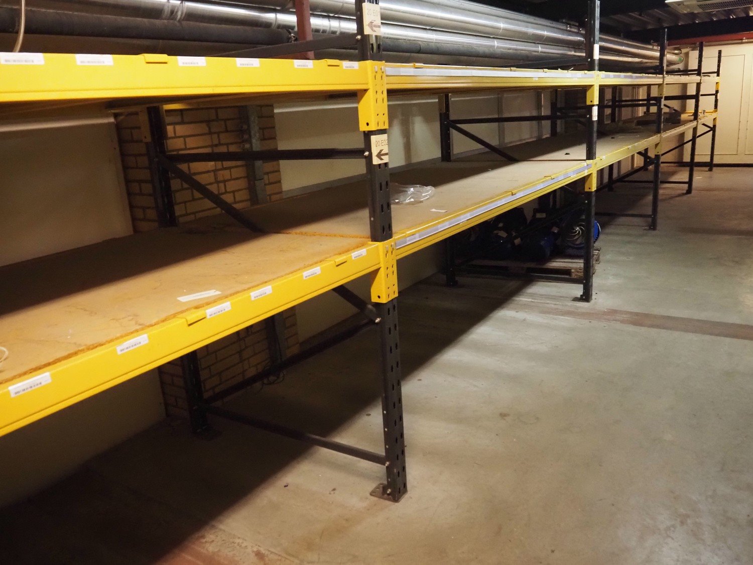 3 pallet racks, consisting of: 18 uprights, dimensions uprights: 1200 mm x 2100 mm, 80 beams, length beams: (70x) 2700 mm and (10x) 1200 mm.