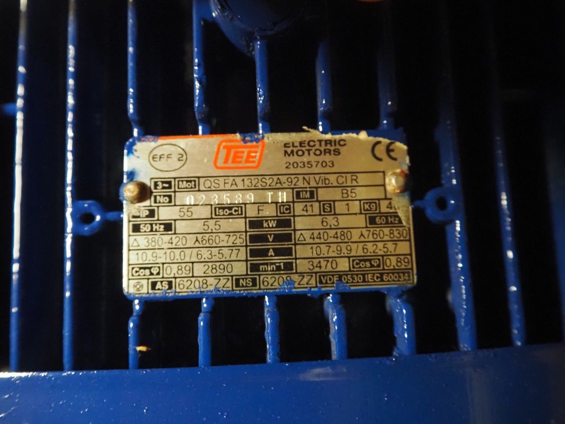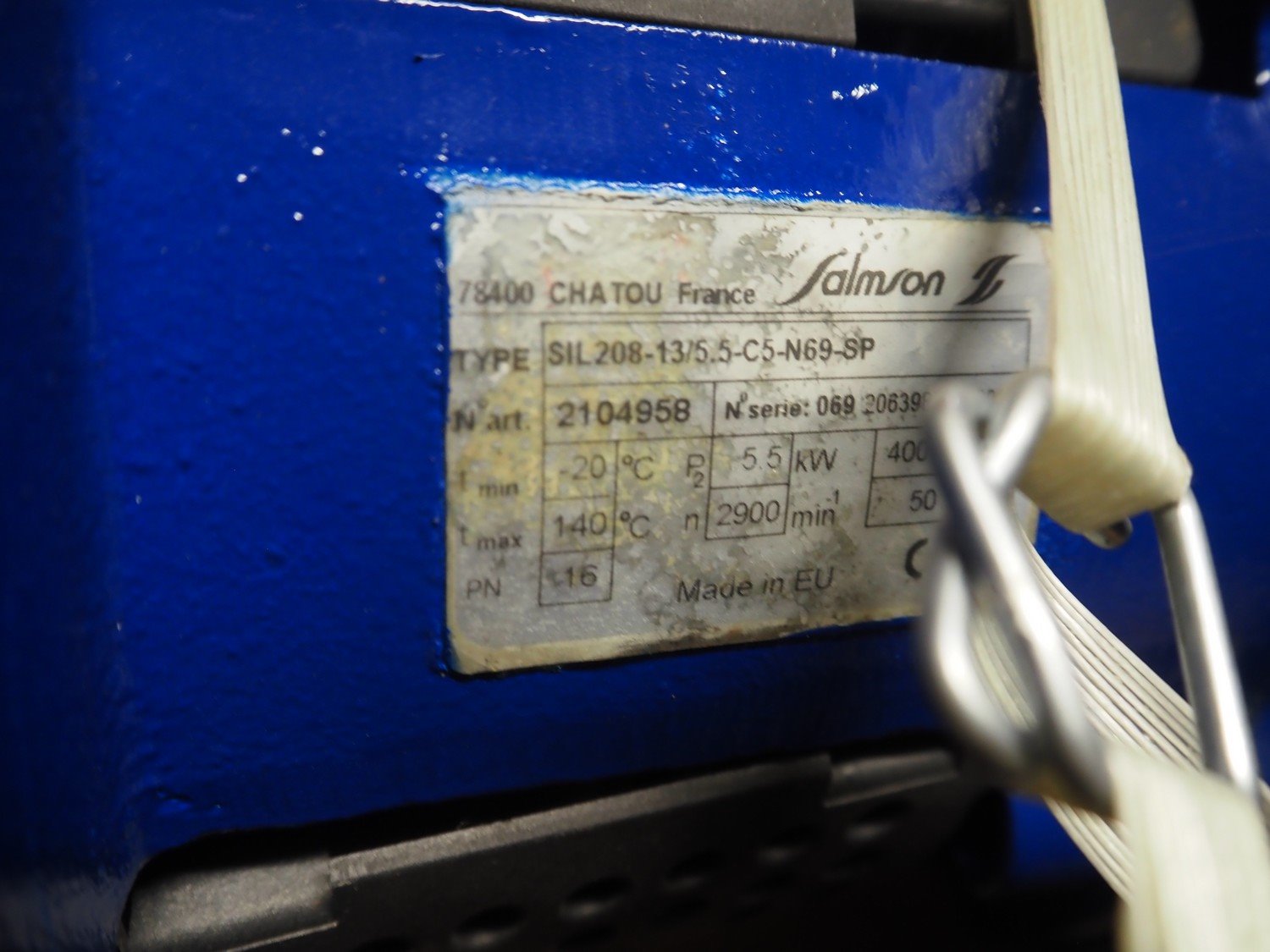 Salmson centrifugal pump, type: SIL208-13/5.5-C5-N69-SP, serial number: 069 20639859 0001, 400 V, 50 Hz, 5.5 kW, PN: 16, dimensions: 720 mm x 450 mm x 300 mm.