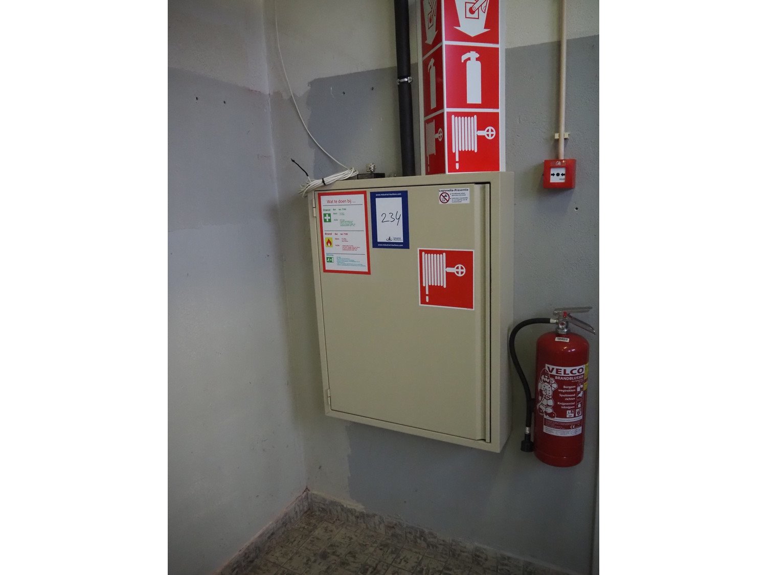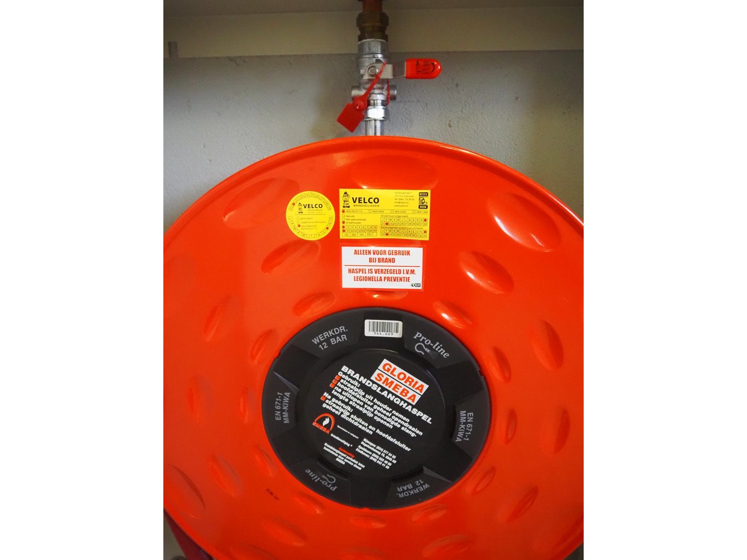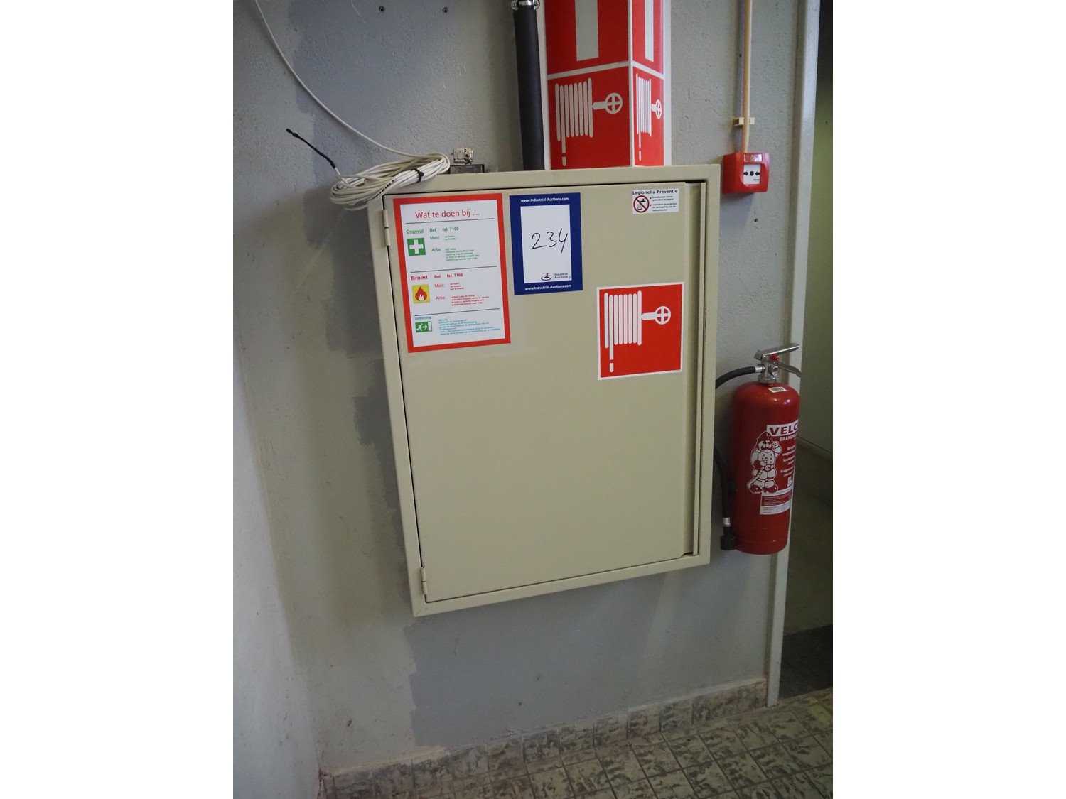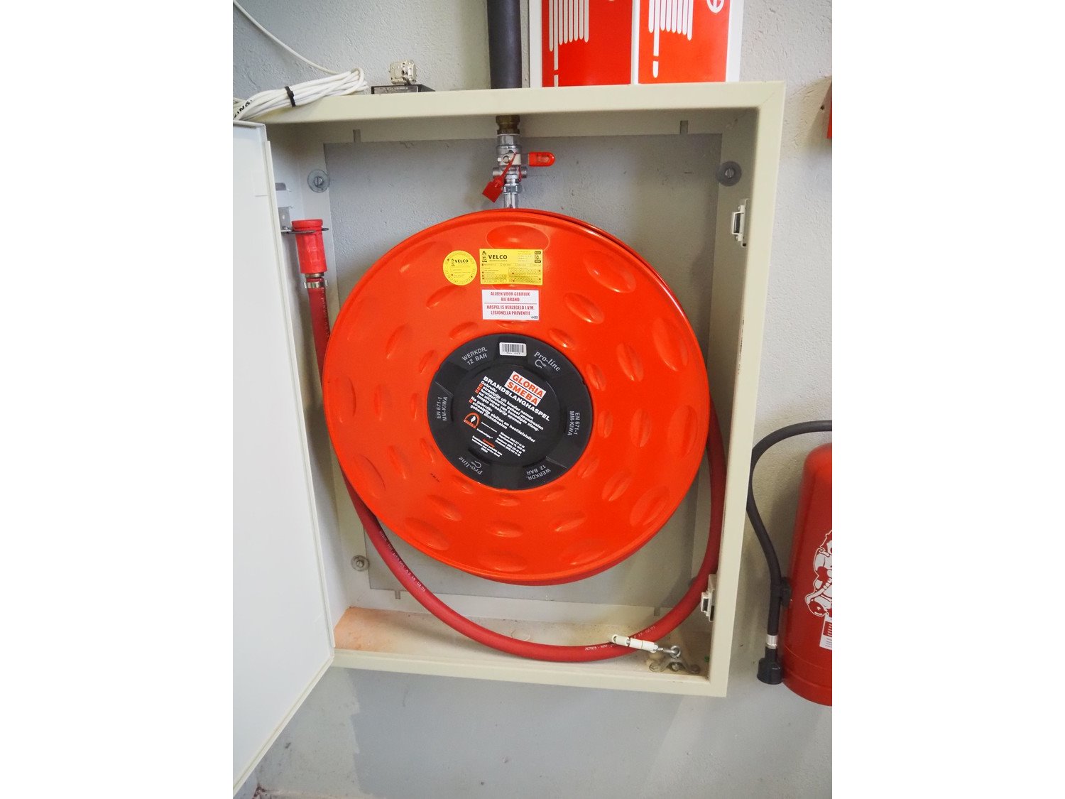Steel cabinet with Gloria Smeba fire hose reel, dimensions: 730 mm x 180 mm x 940 mm.