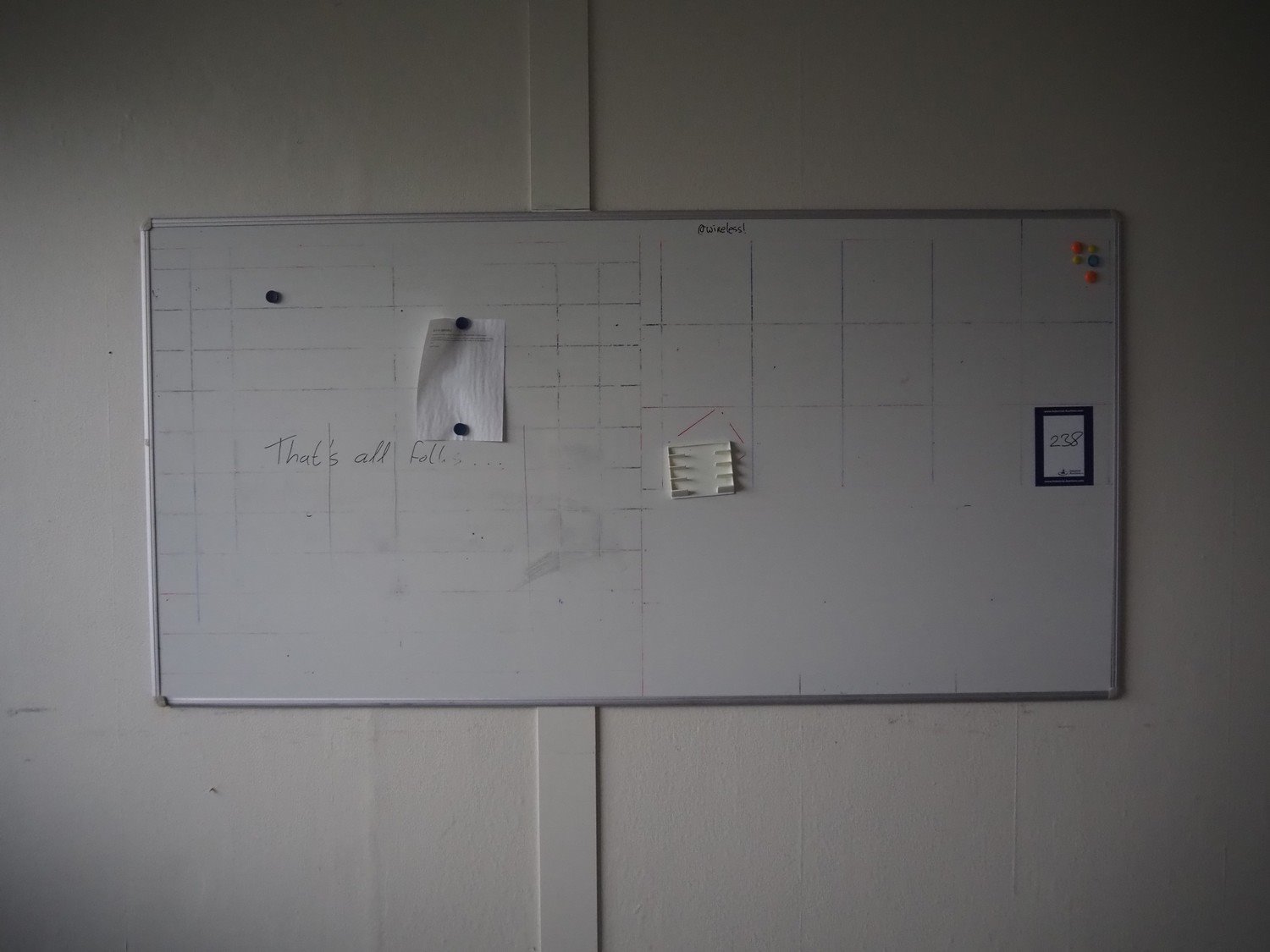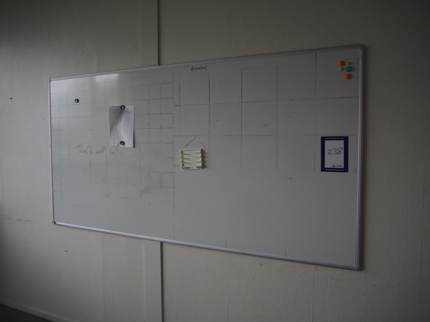 Whiteboard, dimensions: 2410 mm x 1210 mm x 10 mm.