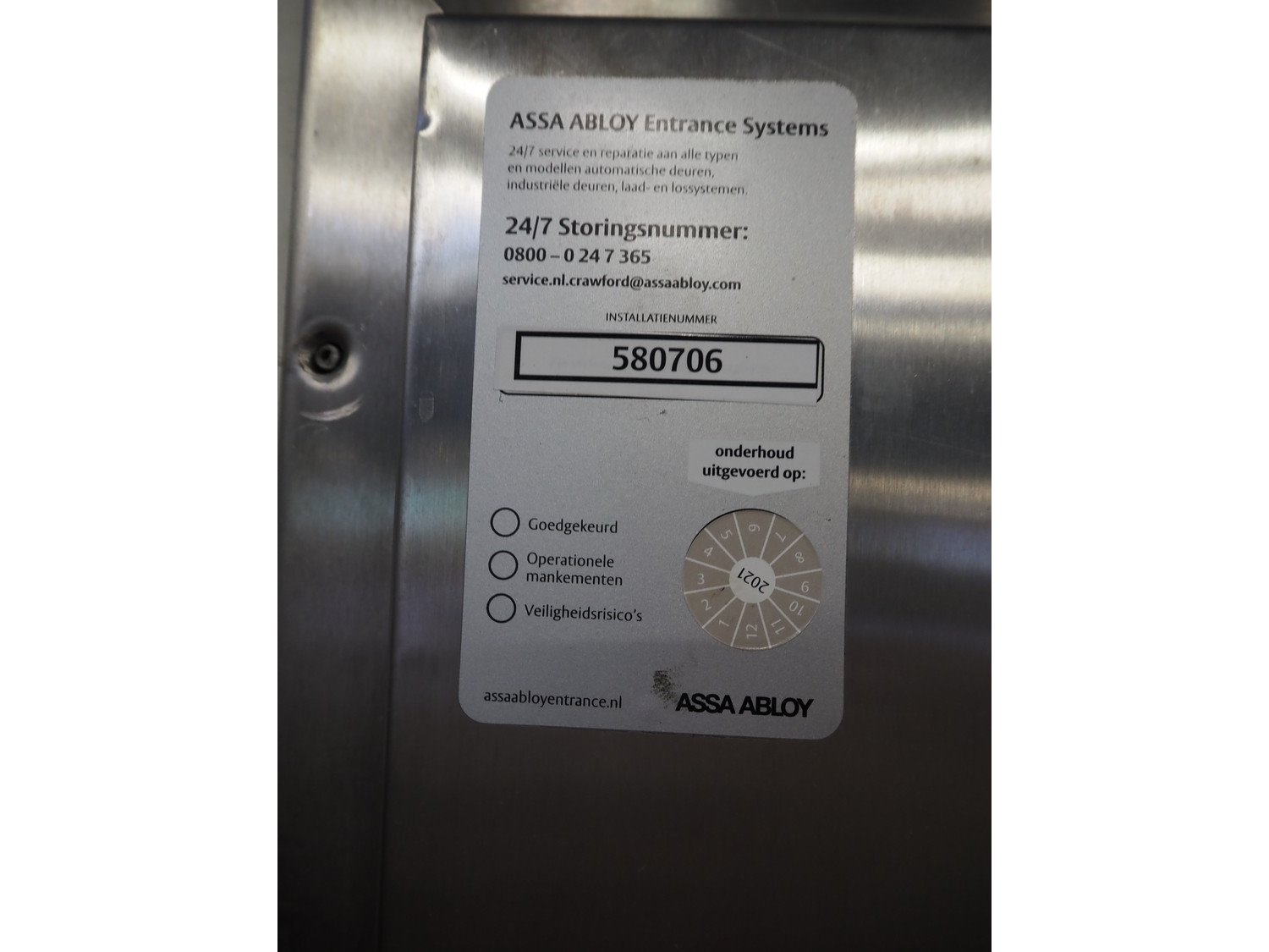 Assa Abloy Entrance Systems AB s/s fire-resistant door, dimensions: 970 mm x 2130 mm.