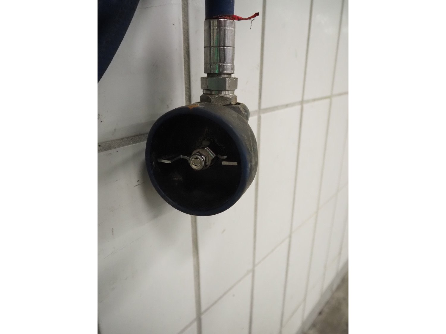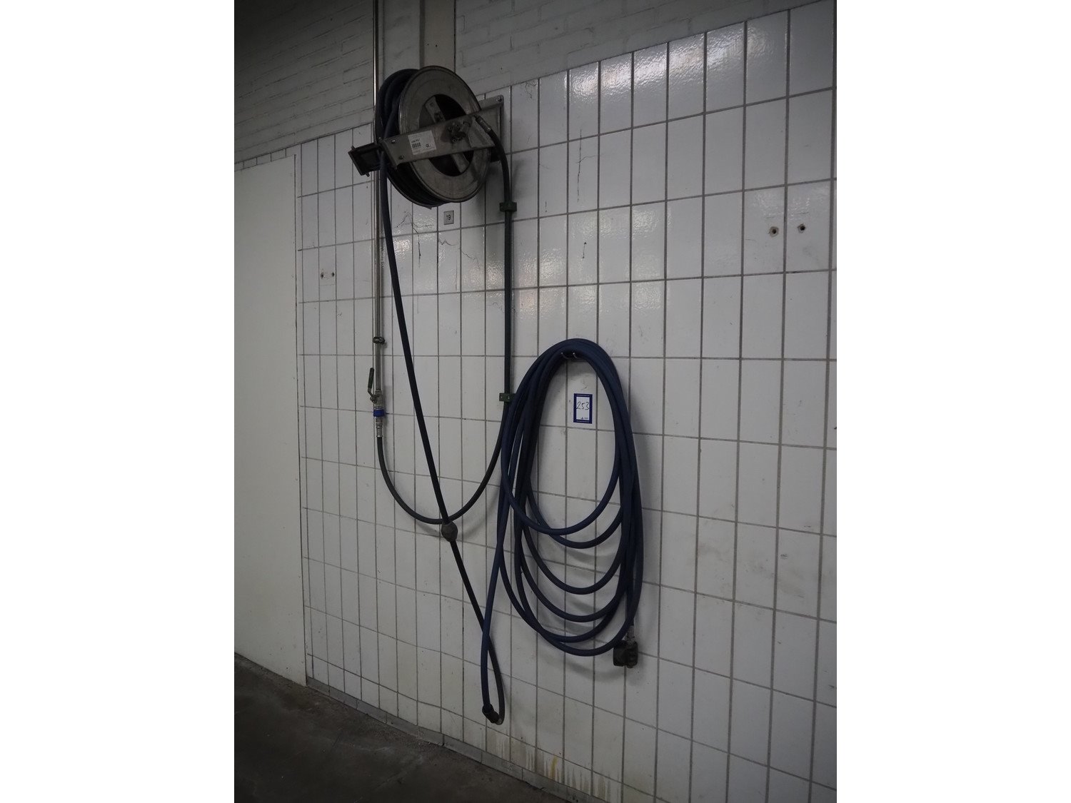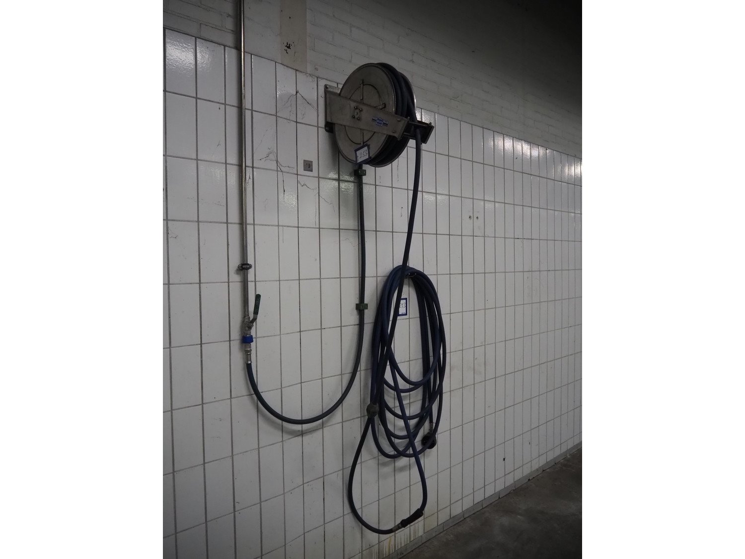 Flexbimec s/s hose reel with plastic hose, dimensions hose reel: 550 mm x 220 mm x 500 mm.