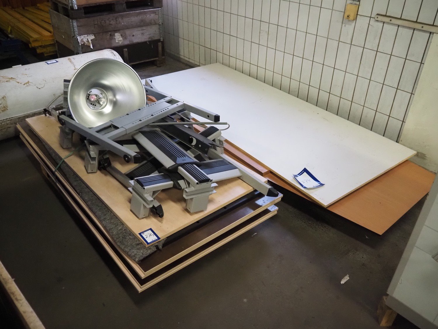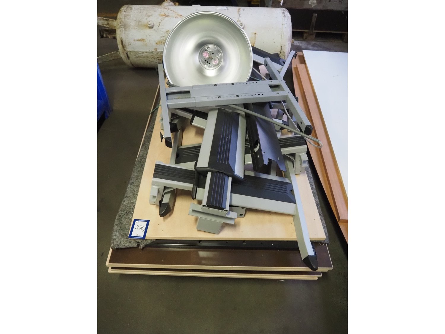 Office inventory, consisting of: 6 table blades, frames, and industrial light.