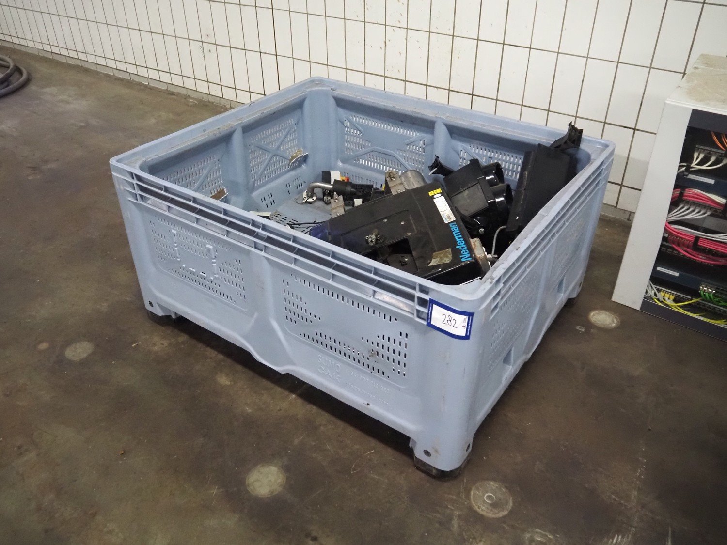 Pallet box with parts, dimensions: 1200 mm x 1000 mm x 600 mm.