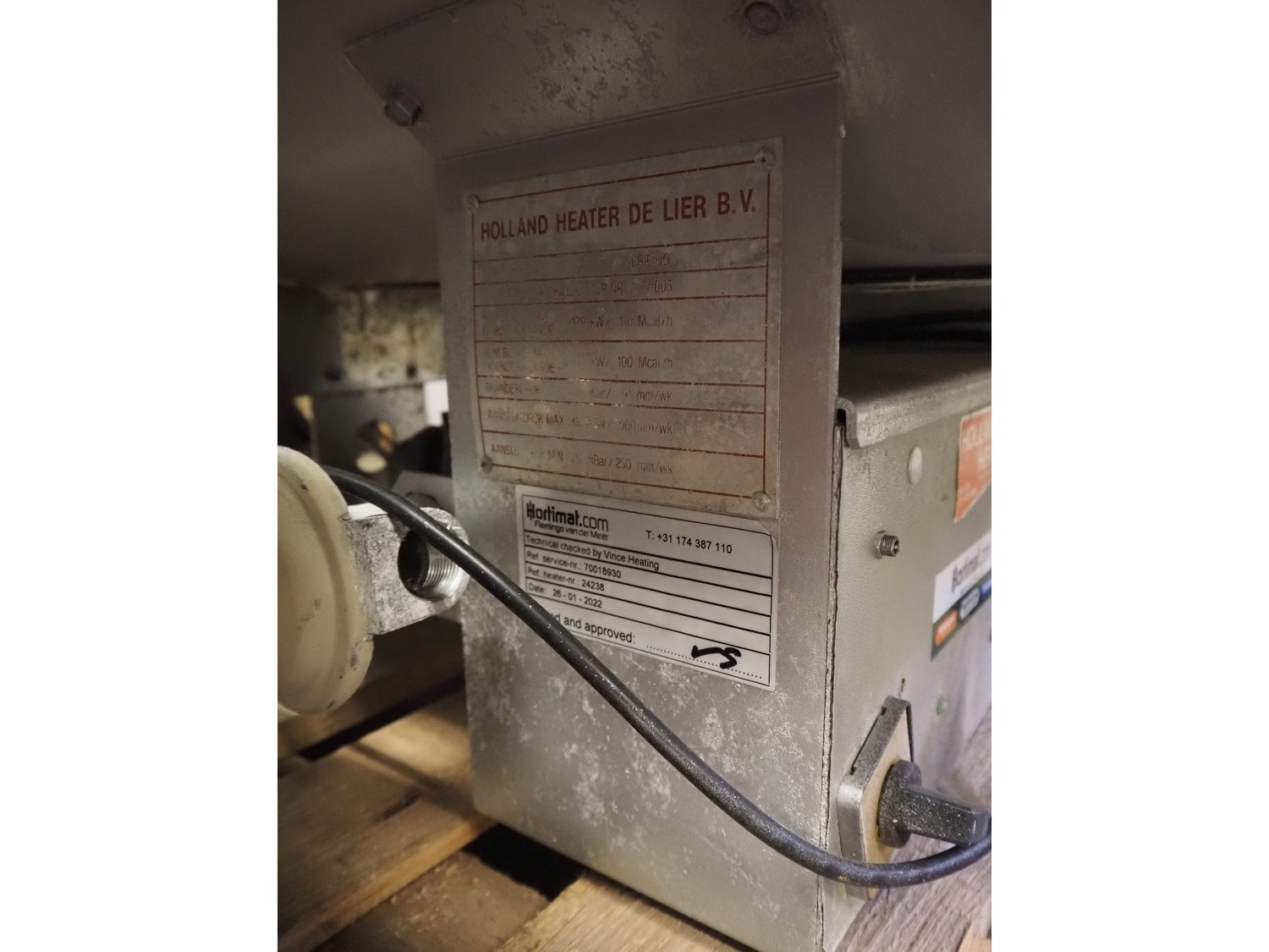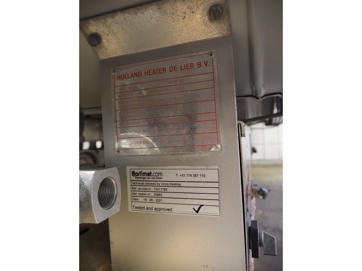 2 Holland Heater hot air heaters, type: HH 80, dimensions: (2x) 580 mm x 1560 mm x 780 mm.