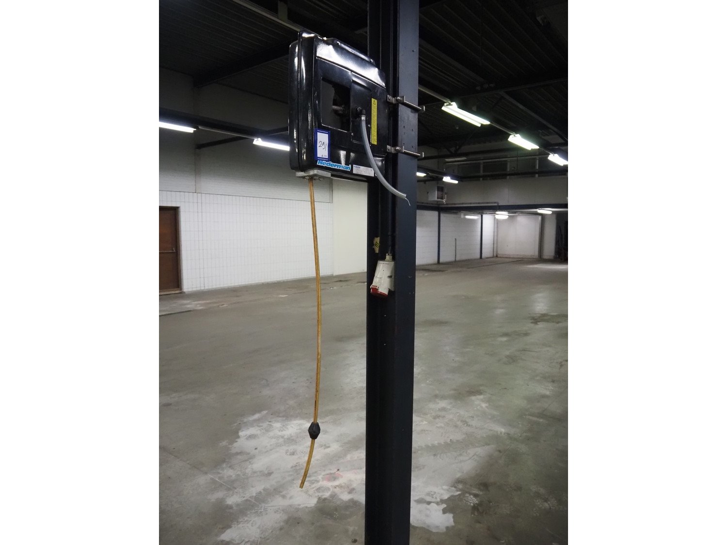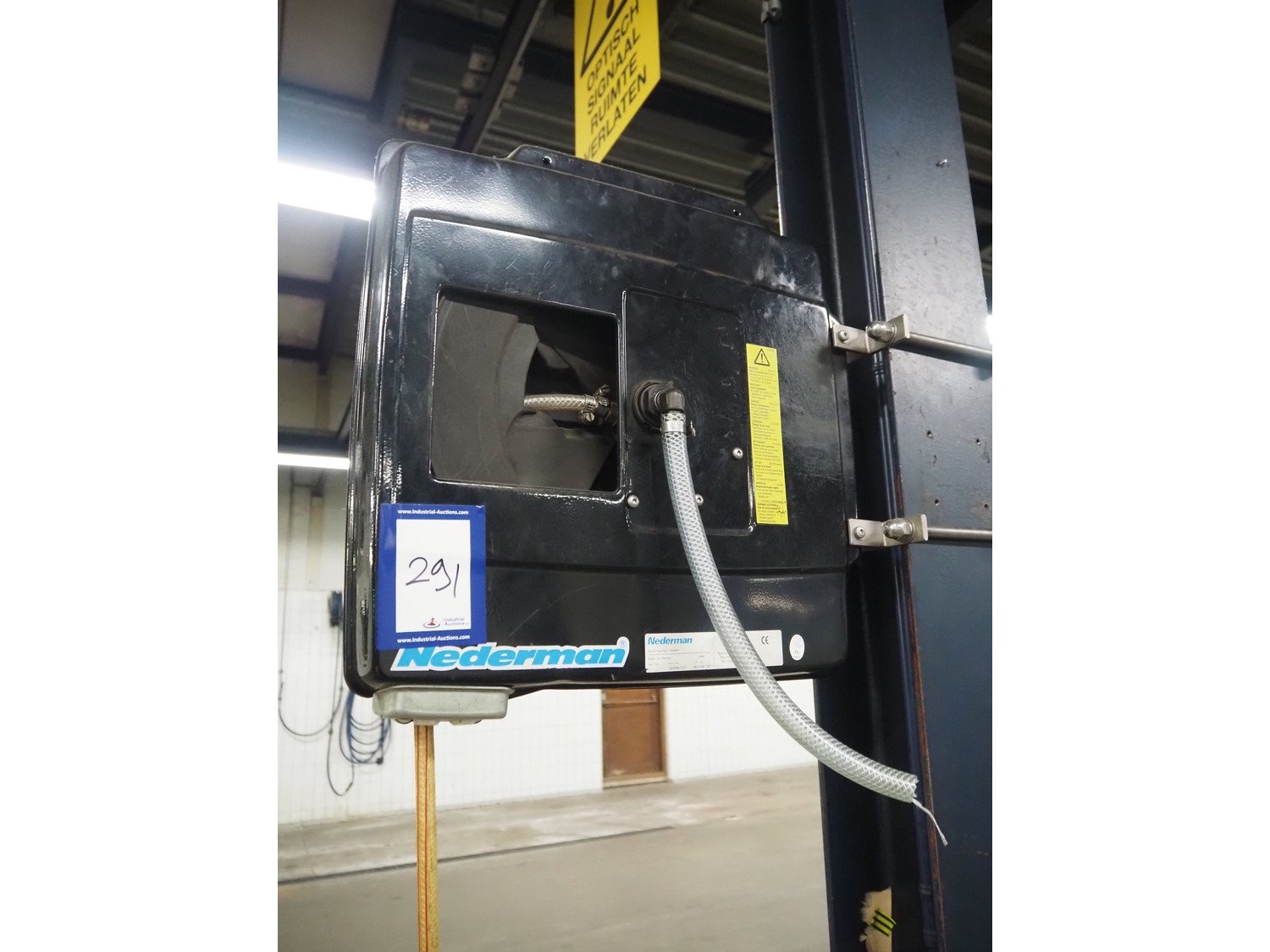 Nederman s/s hose reel, serial number: 886, bore: Ø 12.5 mm (1/2"), maximum pressure: 10 Mpa, maximum length: 25 meter, dimensions hose reel: 700 mm x 350 mm x 700 mm.