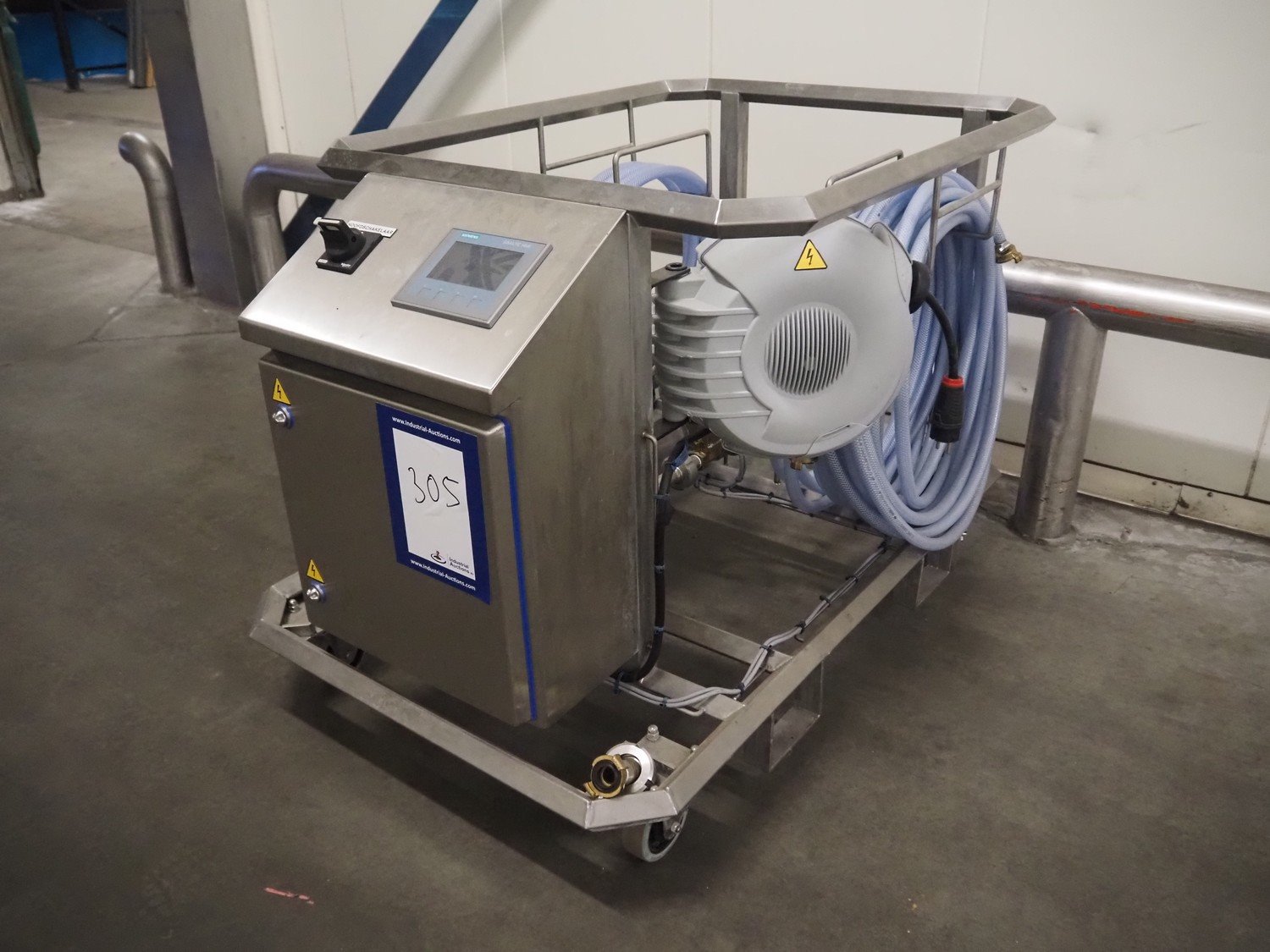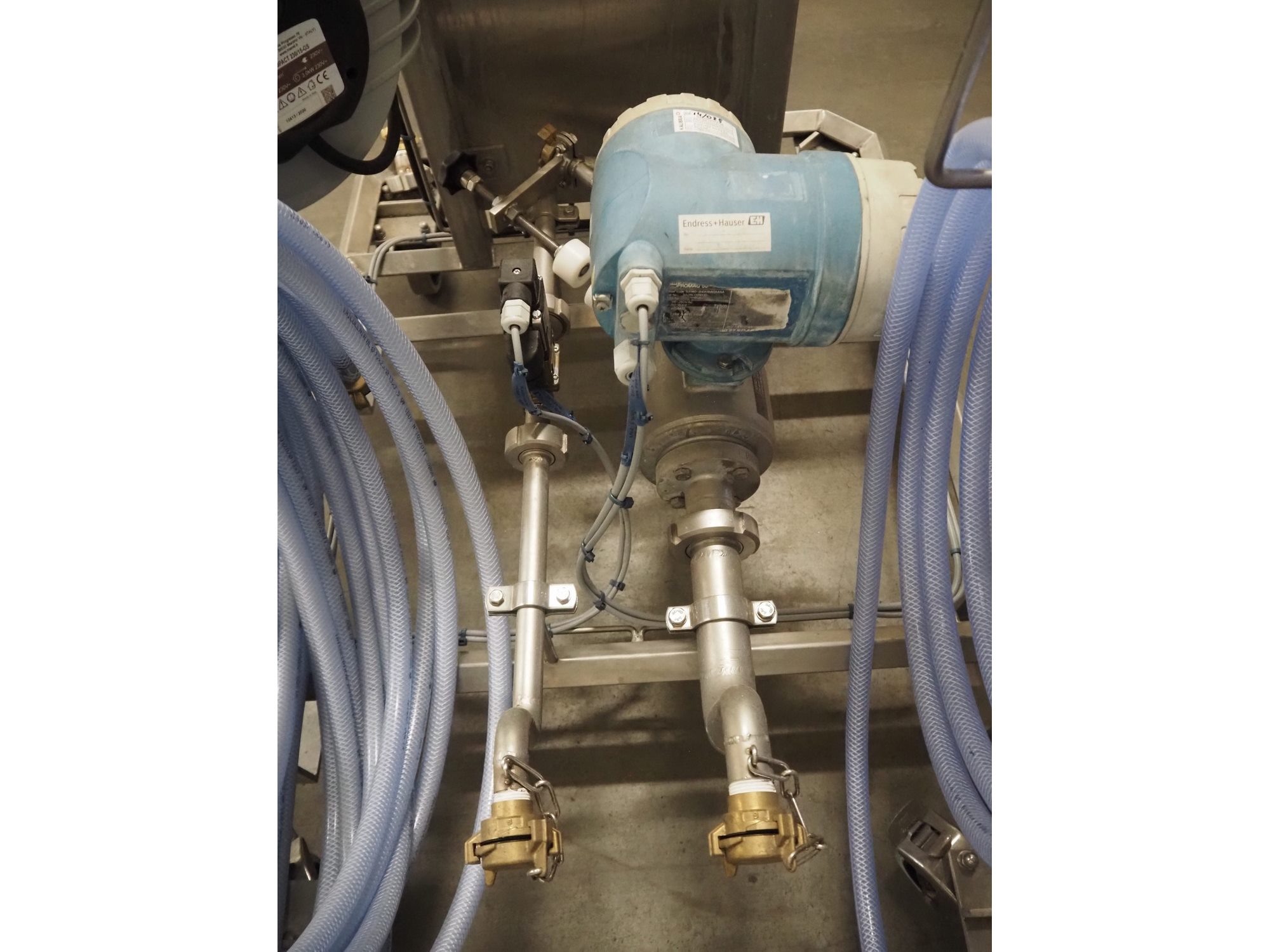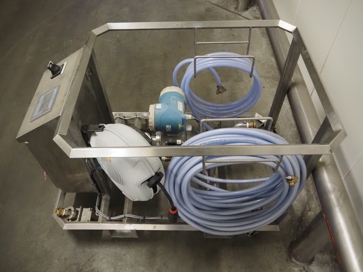 S/s hygiene trolley with flow meter and 2 hoses, dimensions: 1150 mm x 770 mm x 800 mm.