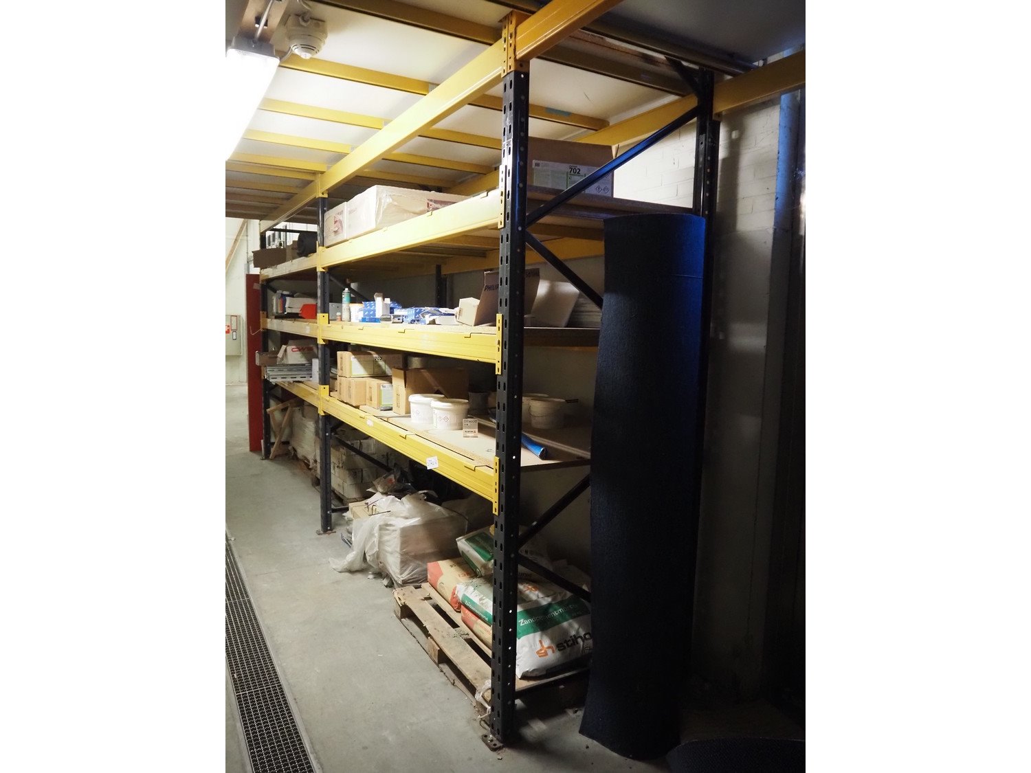 Steel pallet racks with large amount of various parts, dimensions racks: (2x) 8500 mm x 1010 mm x 2700 mm.