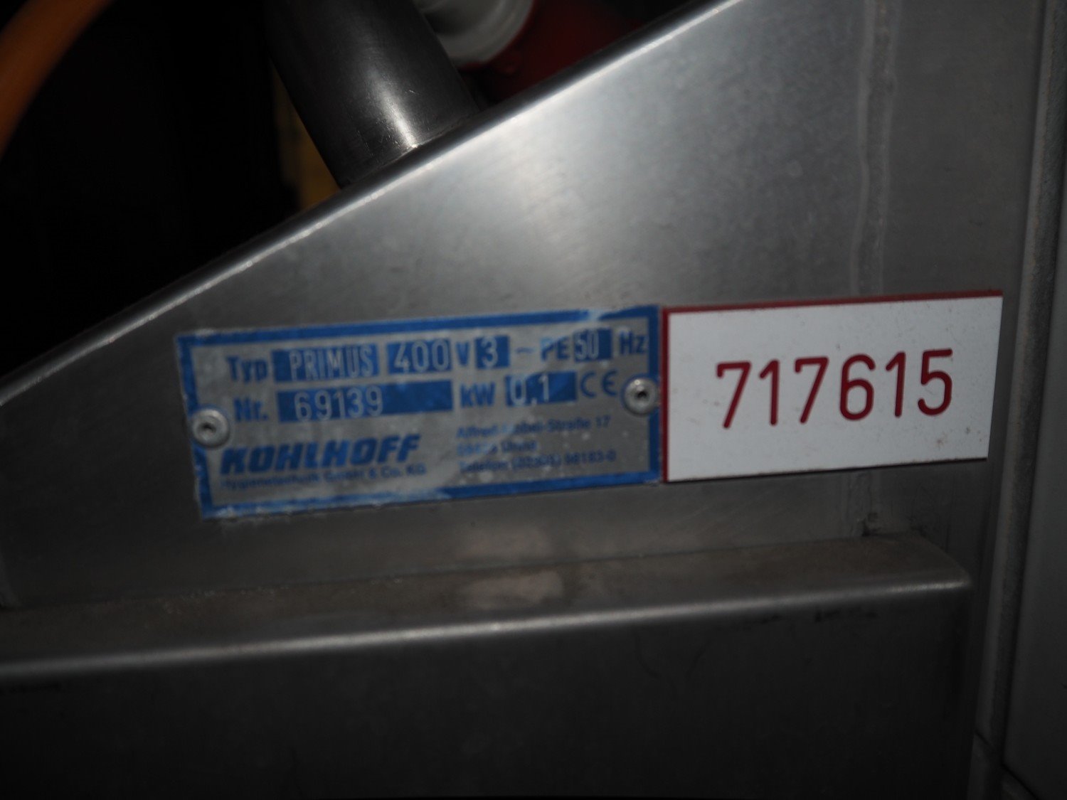 Kohlhoff boot cleaning station, type: Primus, machine number:69139, 230 V, 3 Ph, 50 Hz, 0.1 kW, dimensions: 520 mm x 420 mm x 1000 mm.