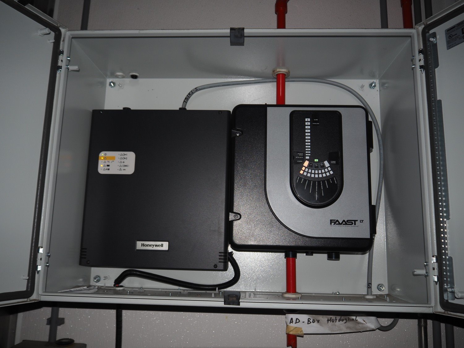 Steel switch cabinet with Honeywell Faast notifier fire system, dimensions: 800 mm x 300 mm x 600 mm.