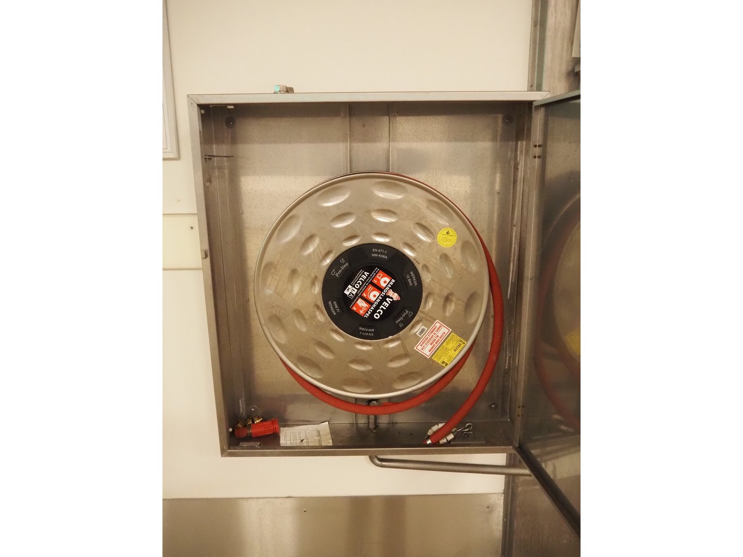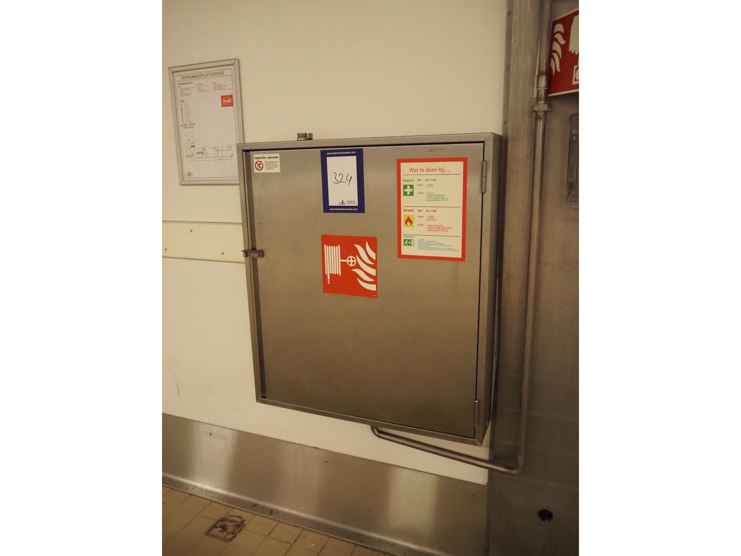 S/s cabinet with Velco fire hose reel, dimensions: 850 mm x 180 mm x 950 mm.