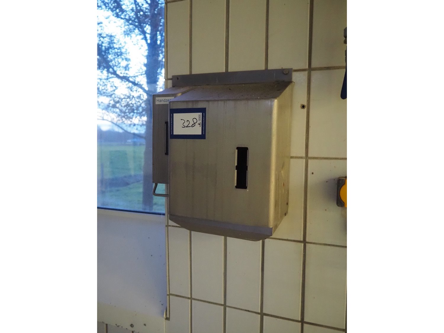 S/s paper dispenser, dimensions: 390 mm x 210 mm x 460 mm.
