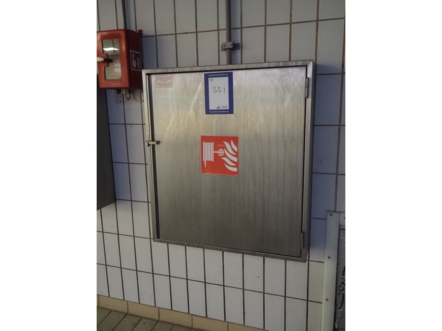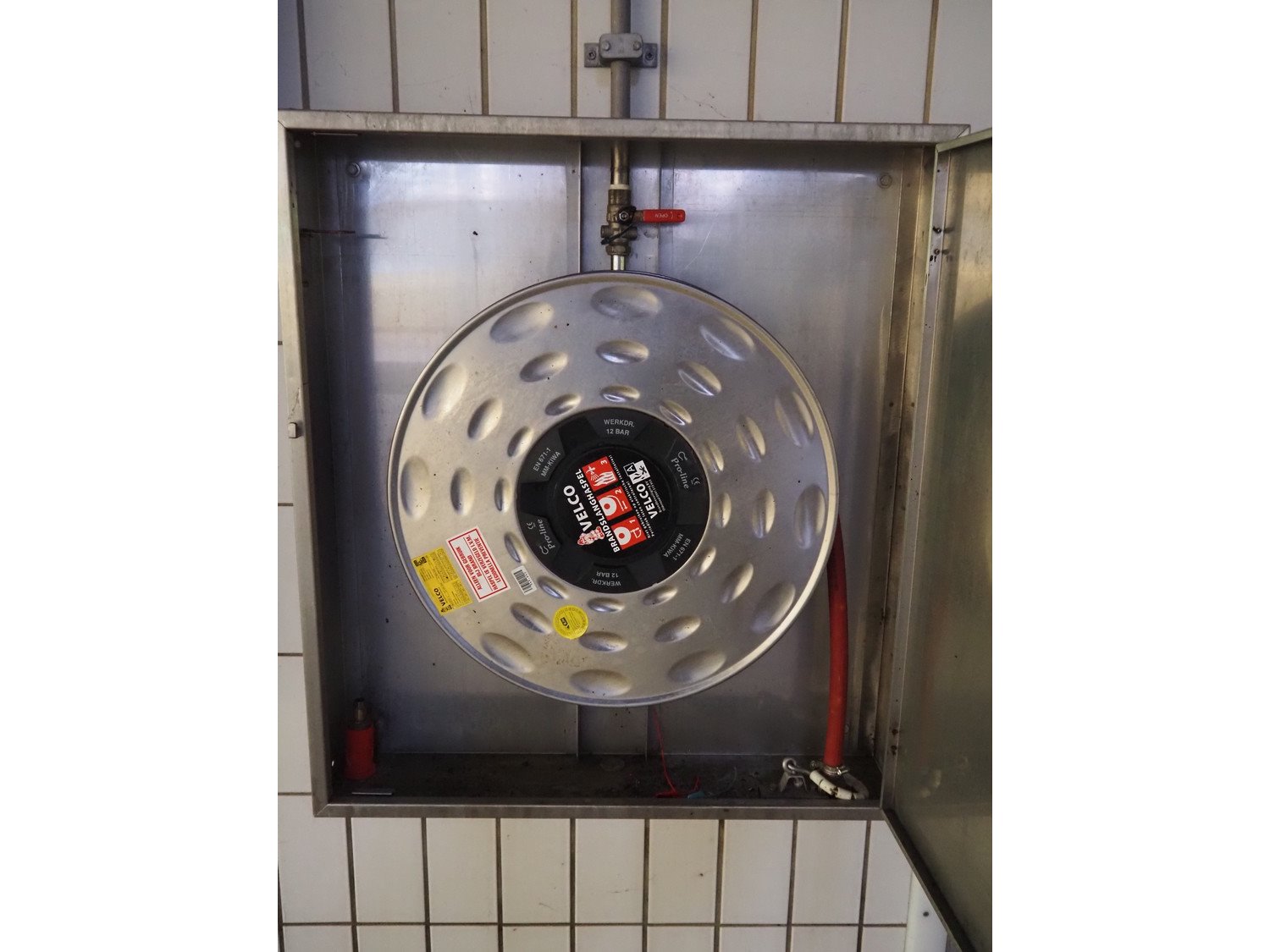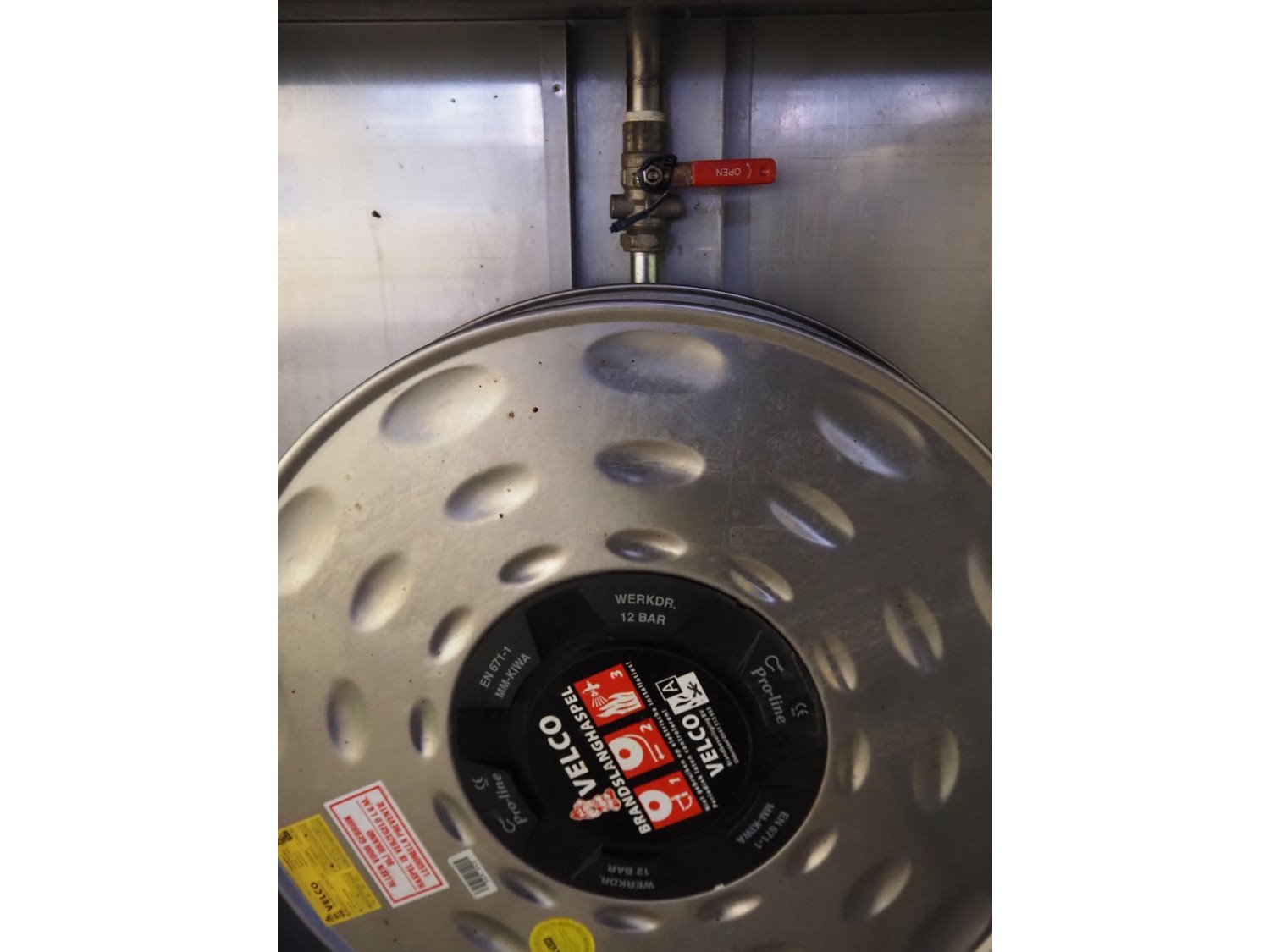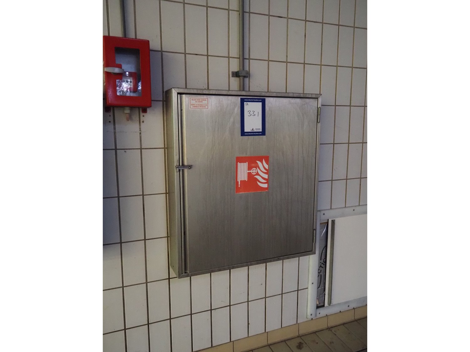 S/s cabinet with Velco fire hose reel and s/s cabinet with BTN fire extinguisher, dimensions fire hose reel: 850 mm x 180 mm x 950 mm, dimensions fire extinguisher cabinet: 400 mm x 200 mm x 800 mm.
