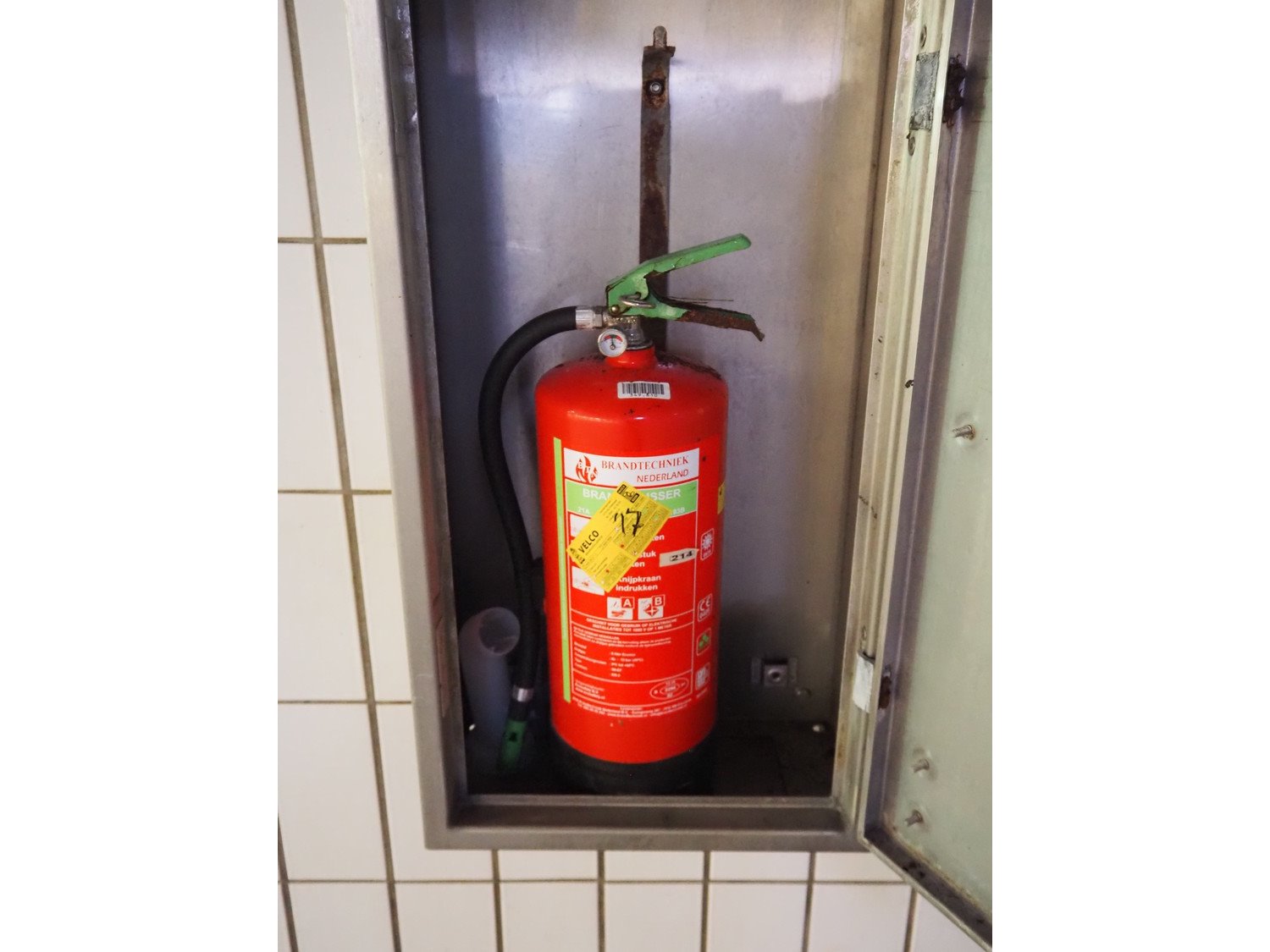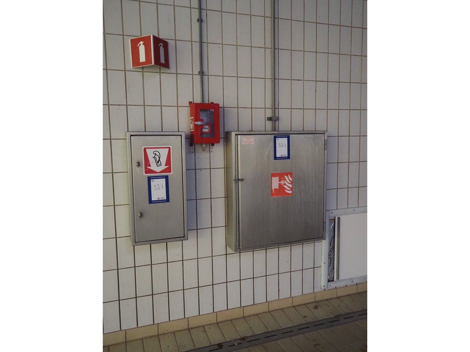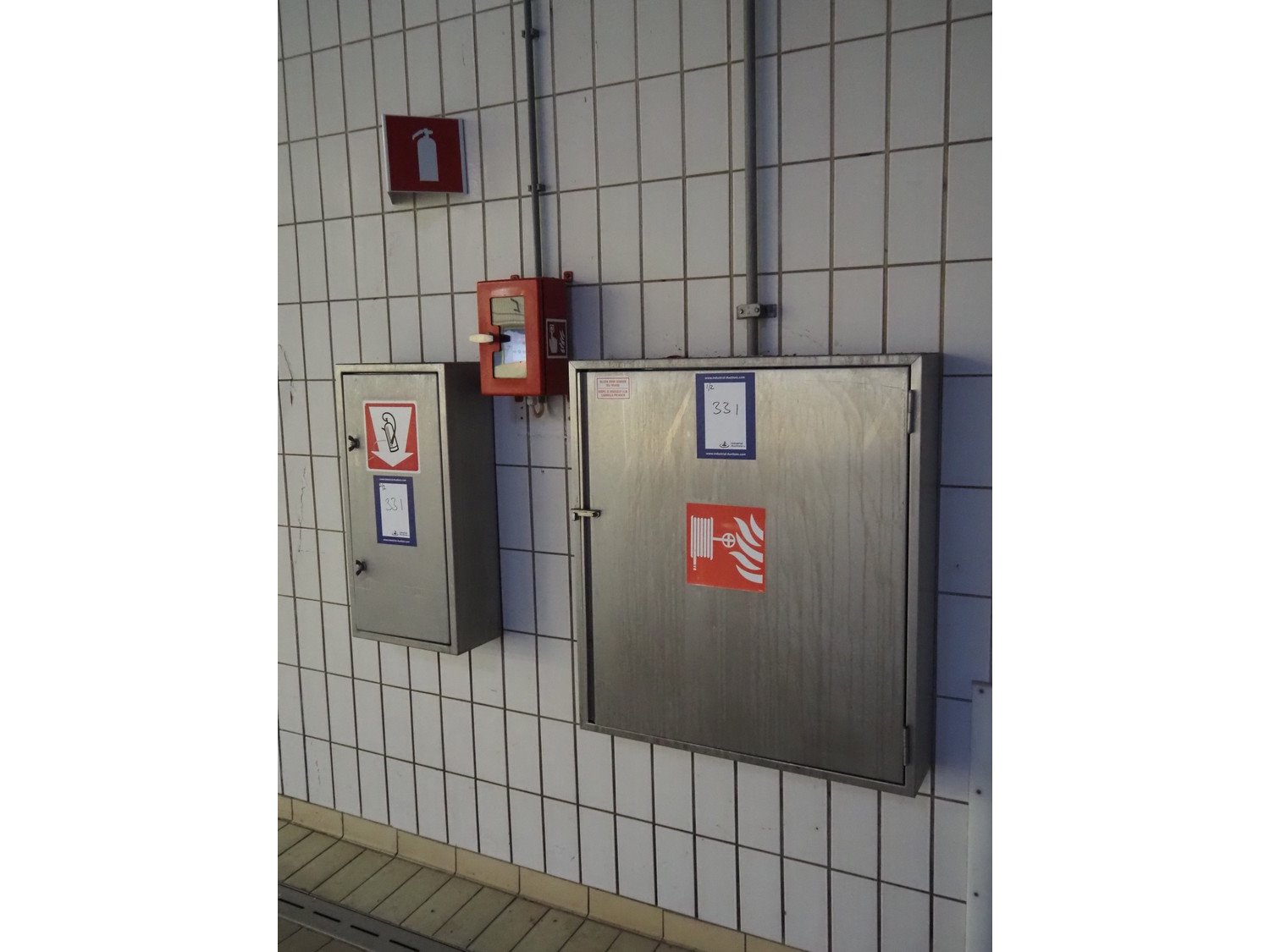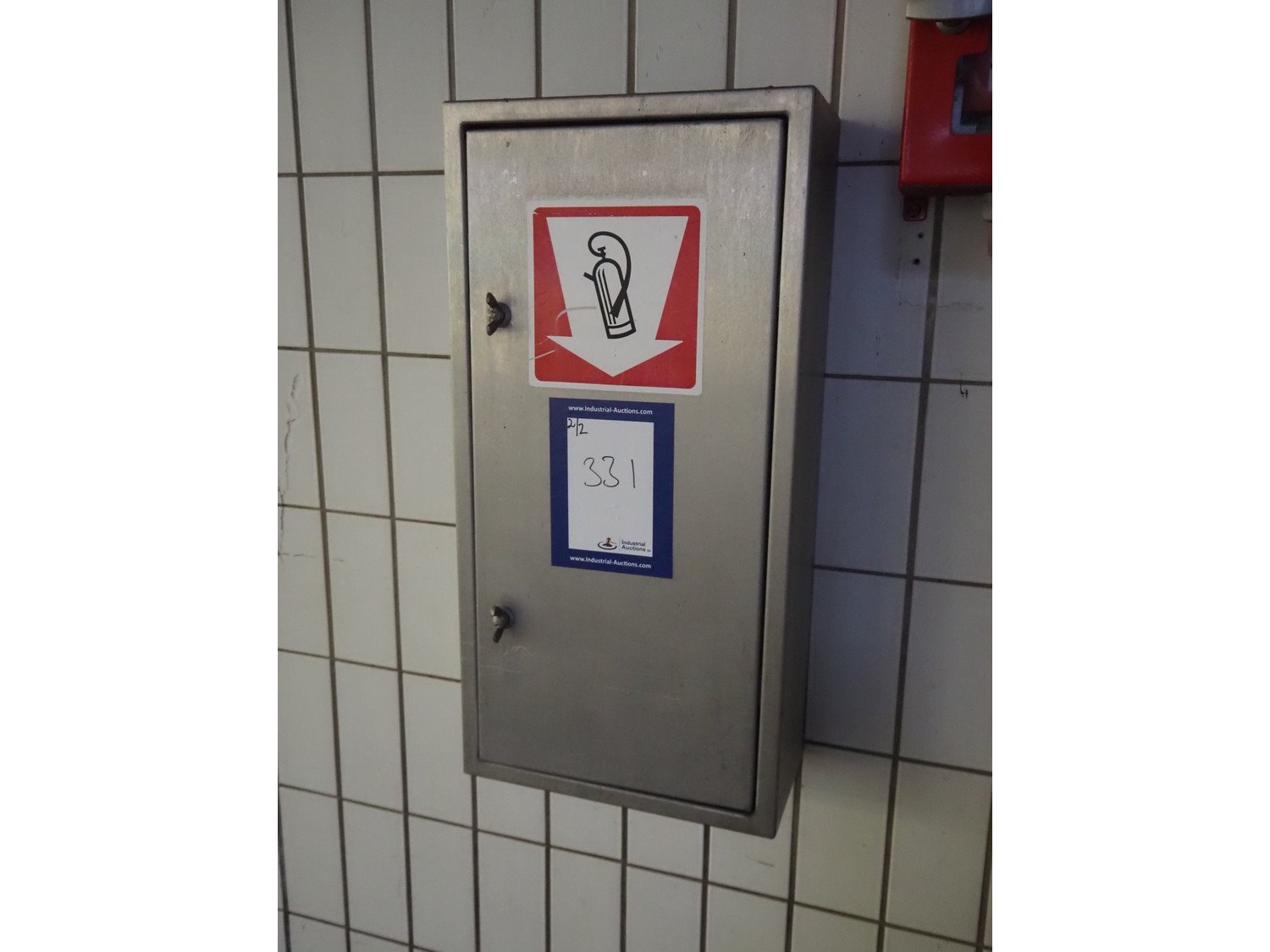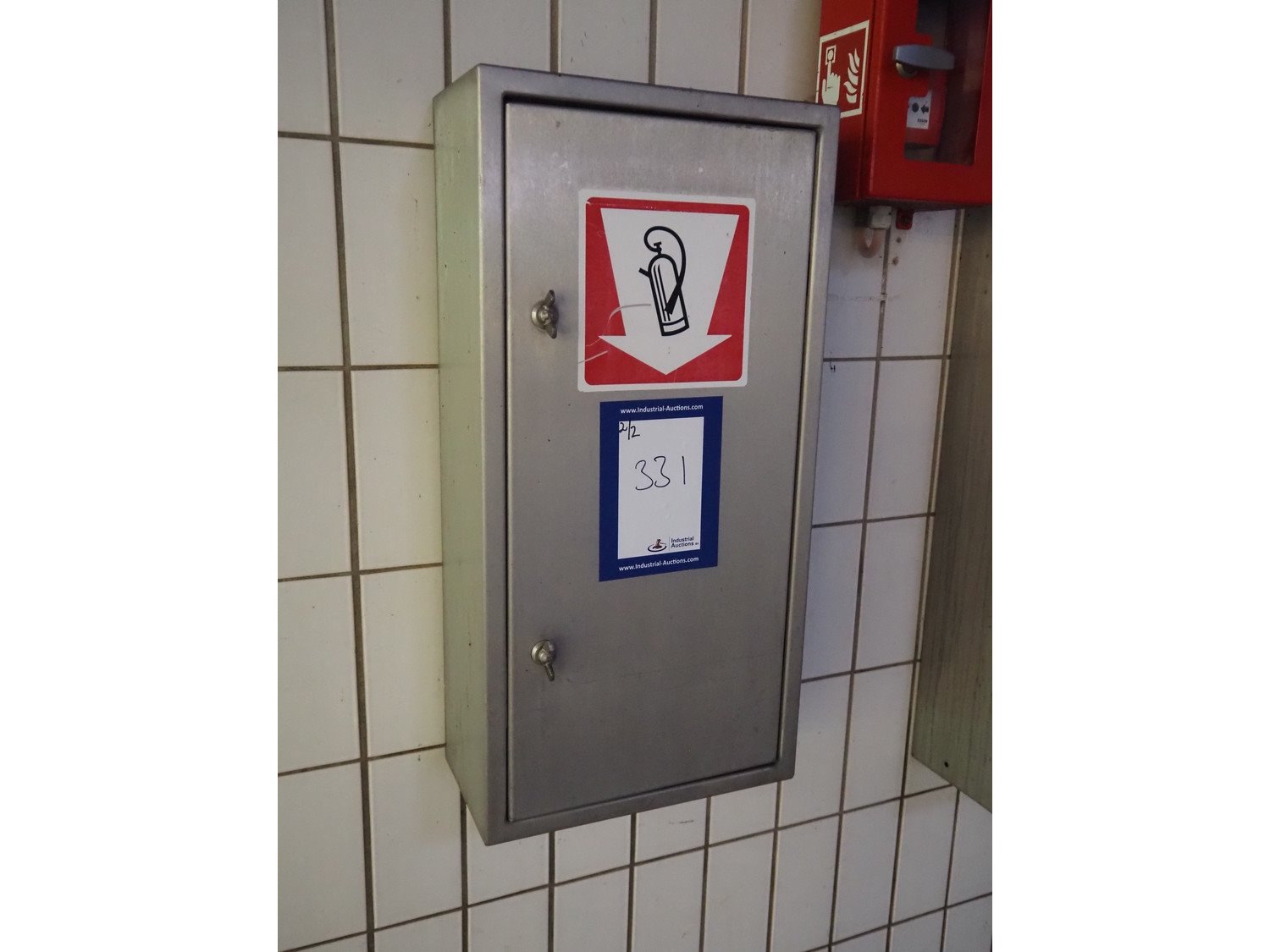 S/s cabinet with Velco fire hose reel and s/s cabinet with BTN fire extinguisher, dimensions fire hose reel: 850 mm x 180 mm x 950 mm, dimensions fire extinguisher cabinet: 400 mm x 200 mm x 800 mm.