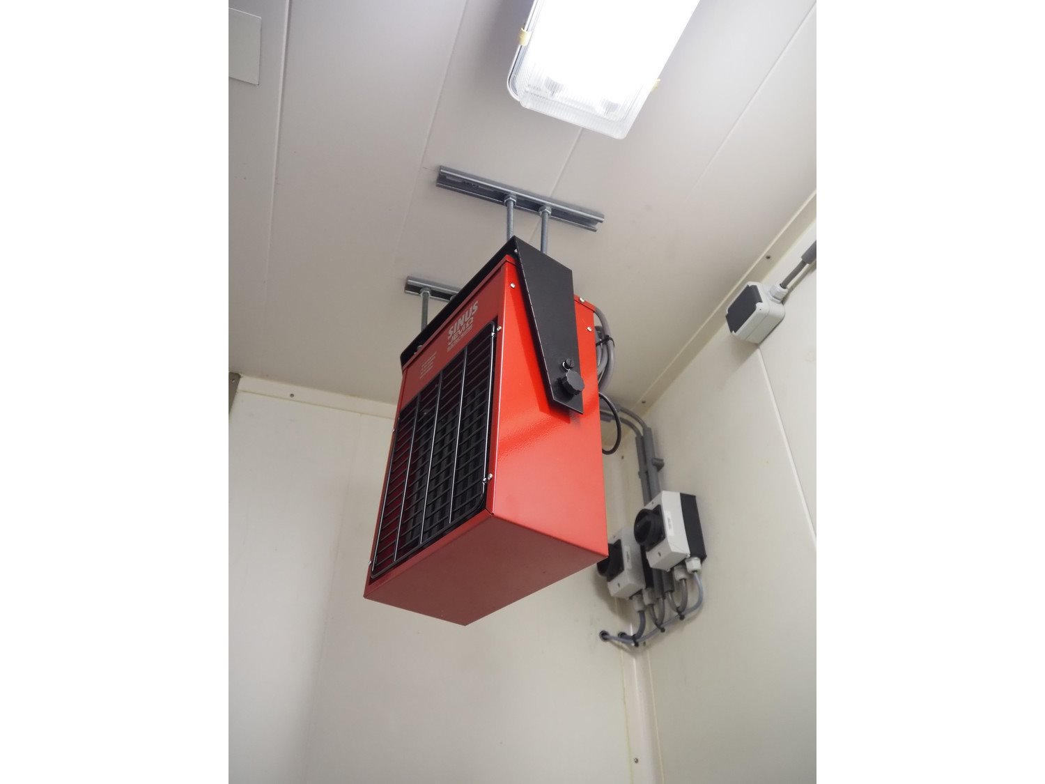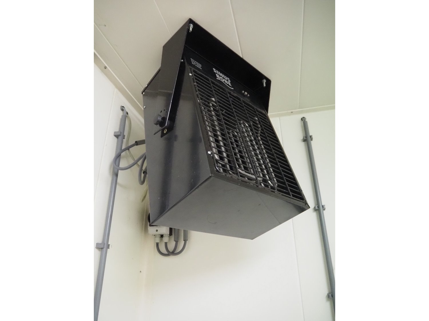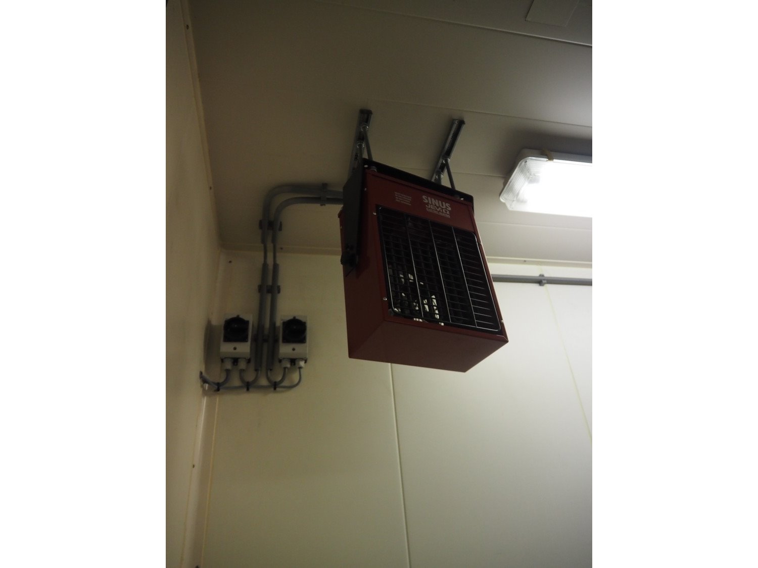 (2x) mark heaters, type: ECOFAN W 42, serial numbers: P8103022 and Za8100412, 230 V, 1 Ph, 0.65/1.2 A, 0.12/0.15 kW, dimensions: (2x) 560 mm x 640 mm x 200 mm, (1x) Sinus Jevi heater, type: WBK 3, 230 V, 13.5 A, 3000 W, dimensions: 420 mm x 230 mm x 280 mm, (1x) Sinus Bobe heater, 230 V, 2000 W, dimensions: 380 mm x 220 mm x 500 mm.