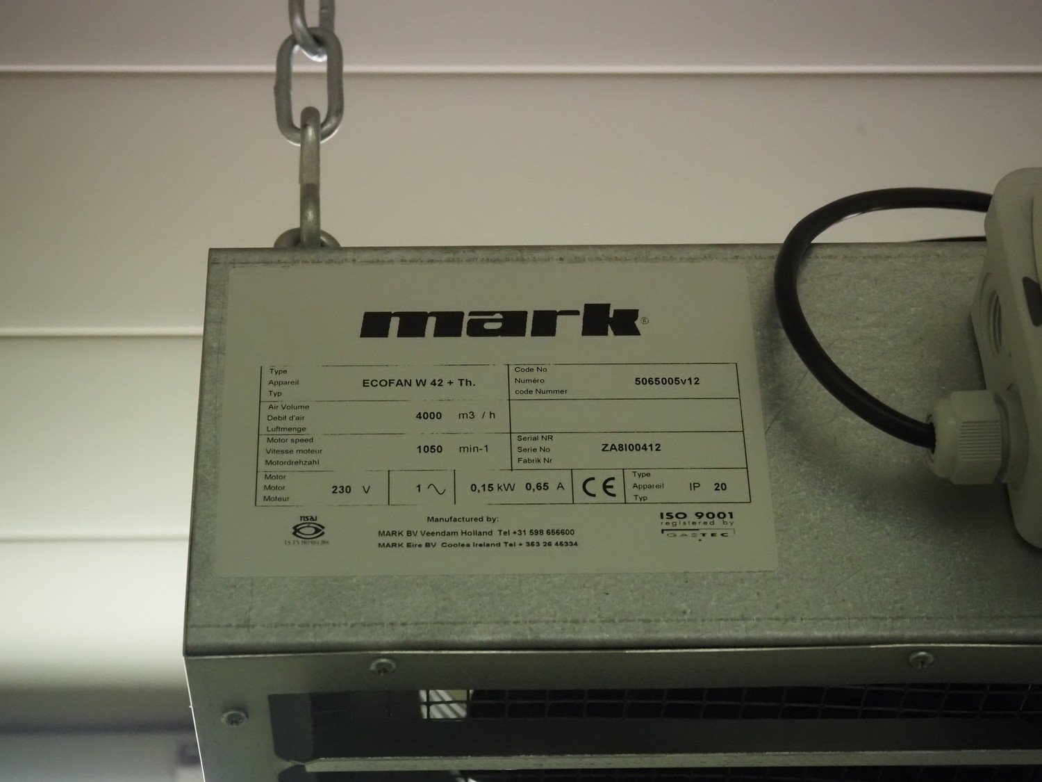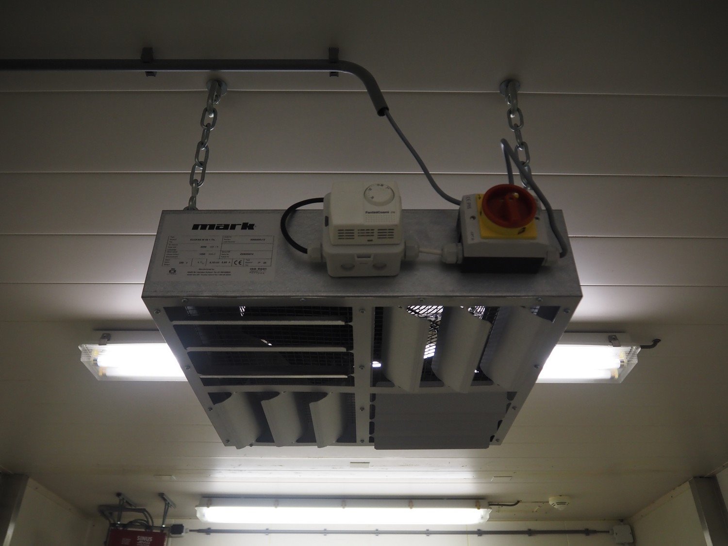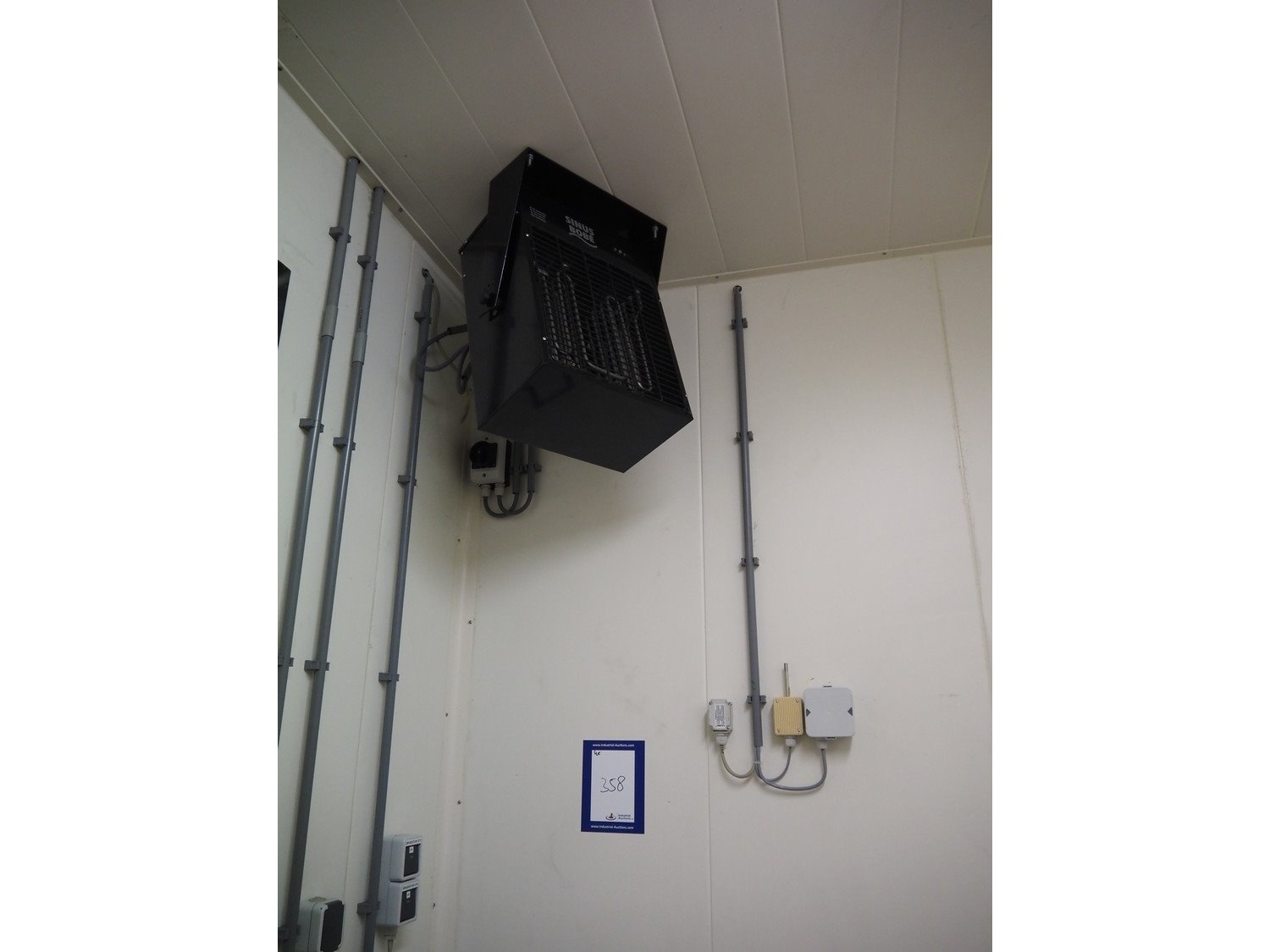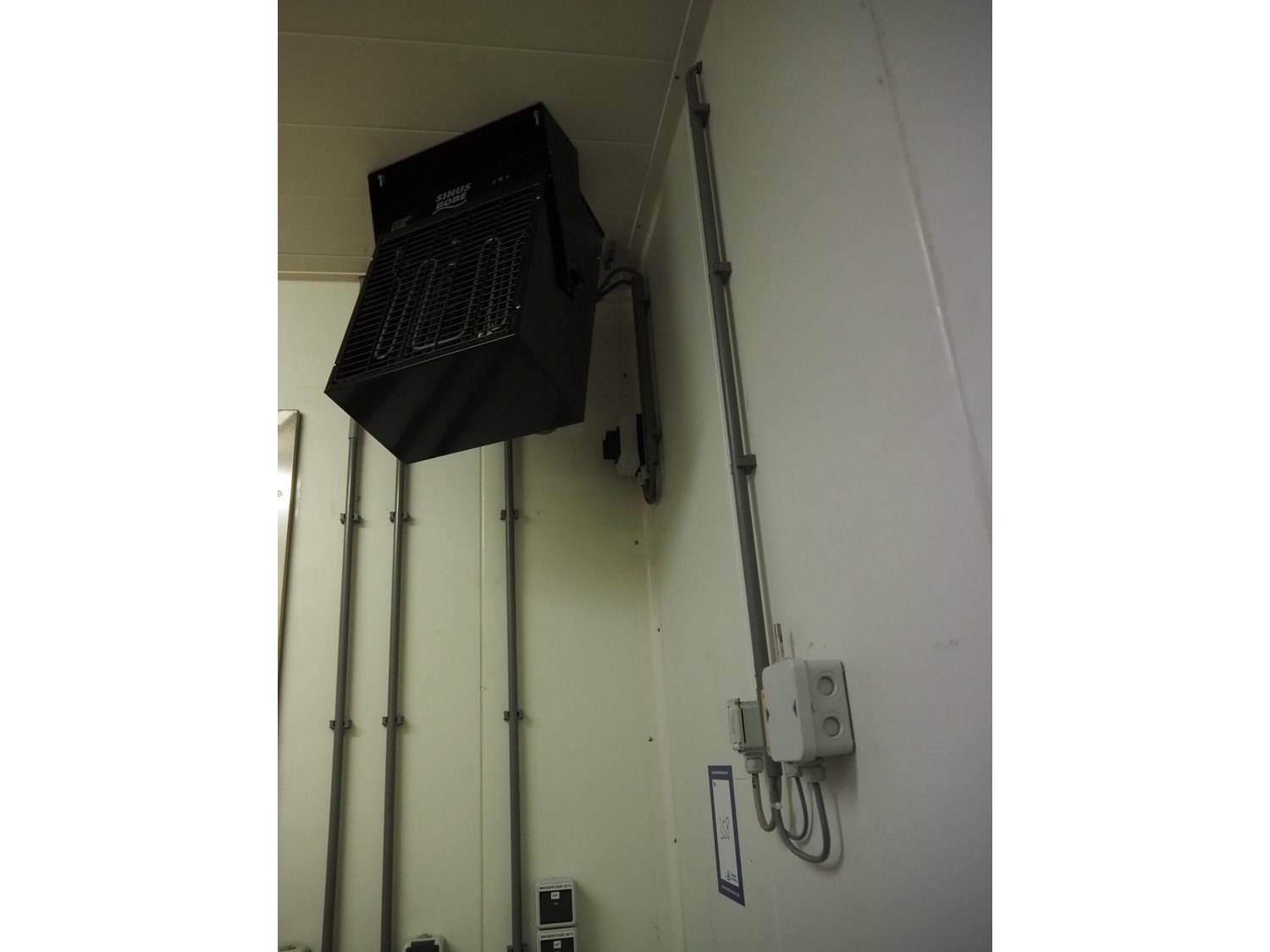 (2x) mark heaters, type: ECOFAN W 42, serial numbers: P8103022 and Za8100412, 230 V, 1 Ph, 0.65/1.2 A, 0.12/0.15 kW, dimensions: (2x) 560 mm x 640 mm x 200 mm, (1x) Sinus Jevi heater, type: WBK 3, 230 V, 13.5 A, 3000 W, dimensions: 420 mm x 230 mm x 280 mm, (1x) Sinus Bobe heater, 230 V, 2000 W, dimensions: 380 mm x 220 mm x 500 mm.