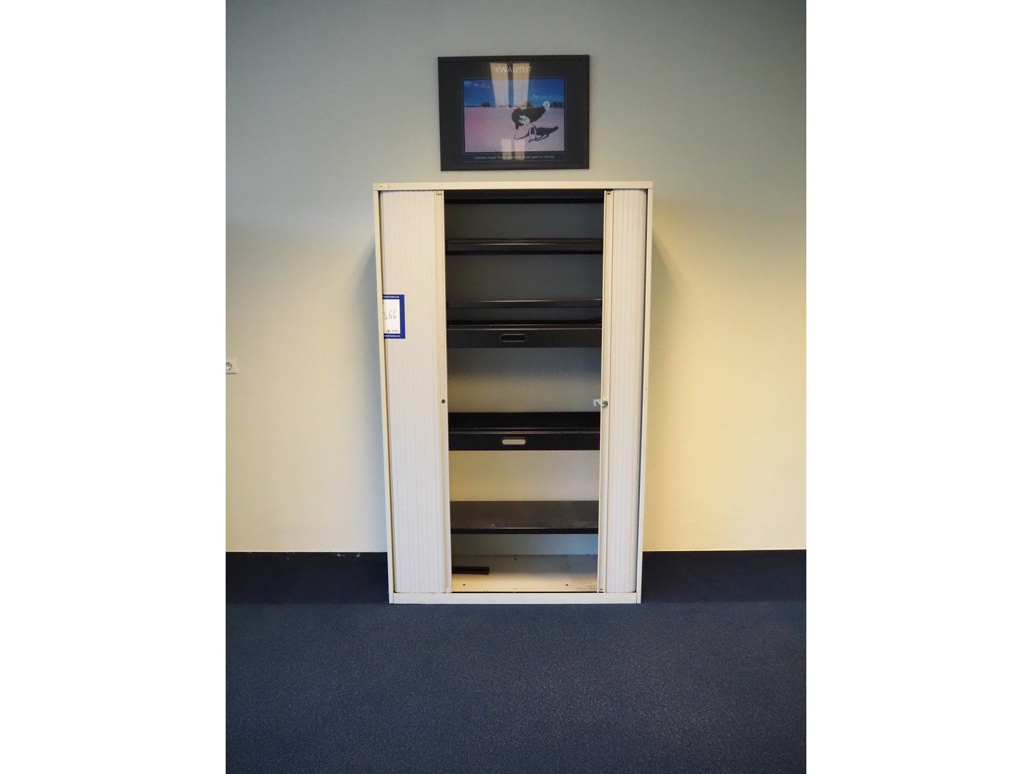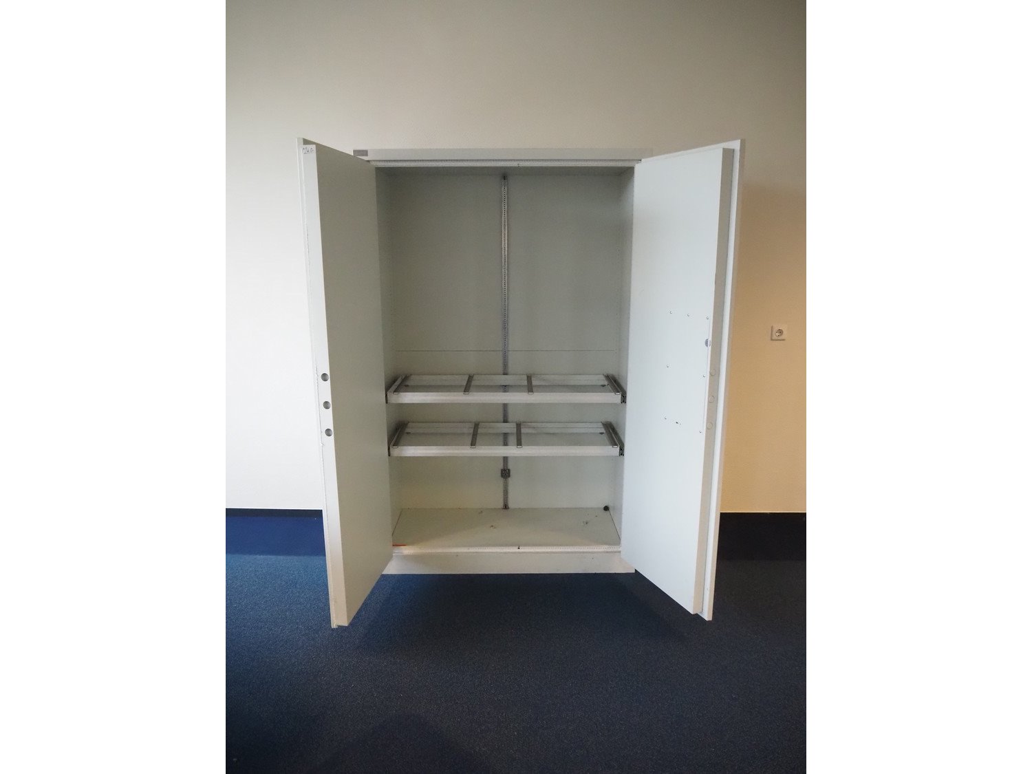 (1x) Sistec steel fire-resistant filing cabinet, dimensions: 1260 mm x 600 mm x 1950 mm, (1x) steel cabinet with sliding doors, dimensions: 120 mm x 470 mm x 1950 mm.