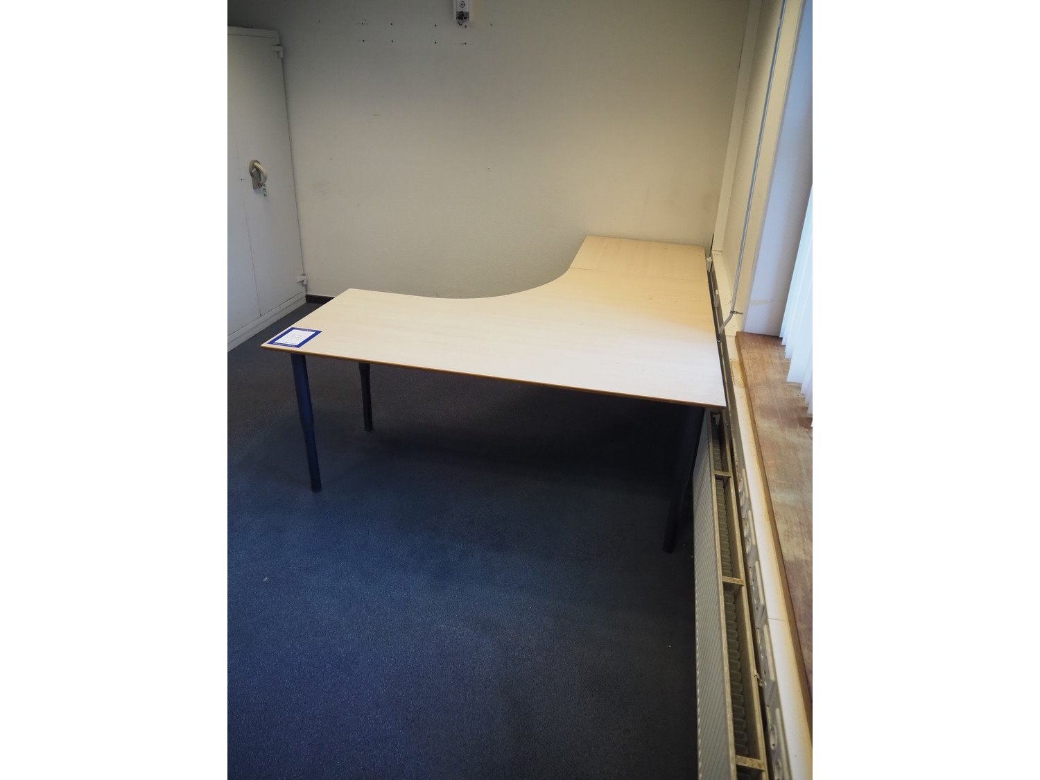 6 desks and 1 cabinet, dimensions cabinet: 1500 mm x 500 mm x 1950 mm, dimensions desks: (2x) 1000 mm x 2000 mm x 760 mm, (1x) 1800 mm x 1600 mm x 760 mm, (1x) 1700 mm x 1200 mm x 760 mm, (1x) 1800 mm x 800 mm x 740 mm, (1x) 2400 mm x 1800 mm x 750 mm.