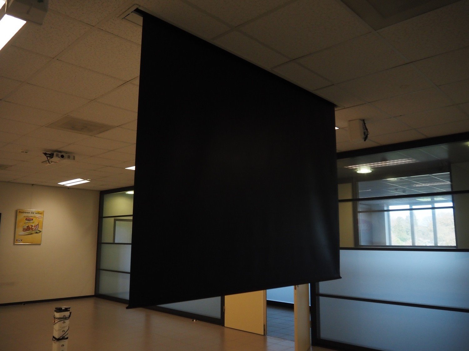 Optoma beamer with screen, dimensions screen: 2100 mm x 1600 mm.
