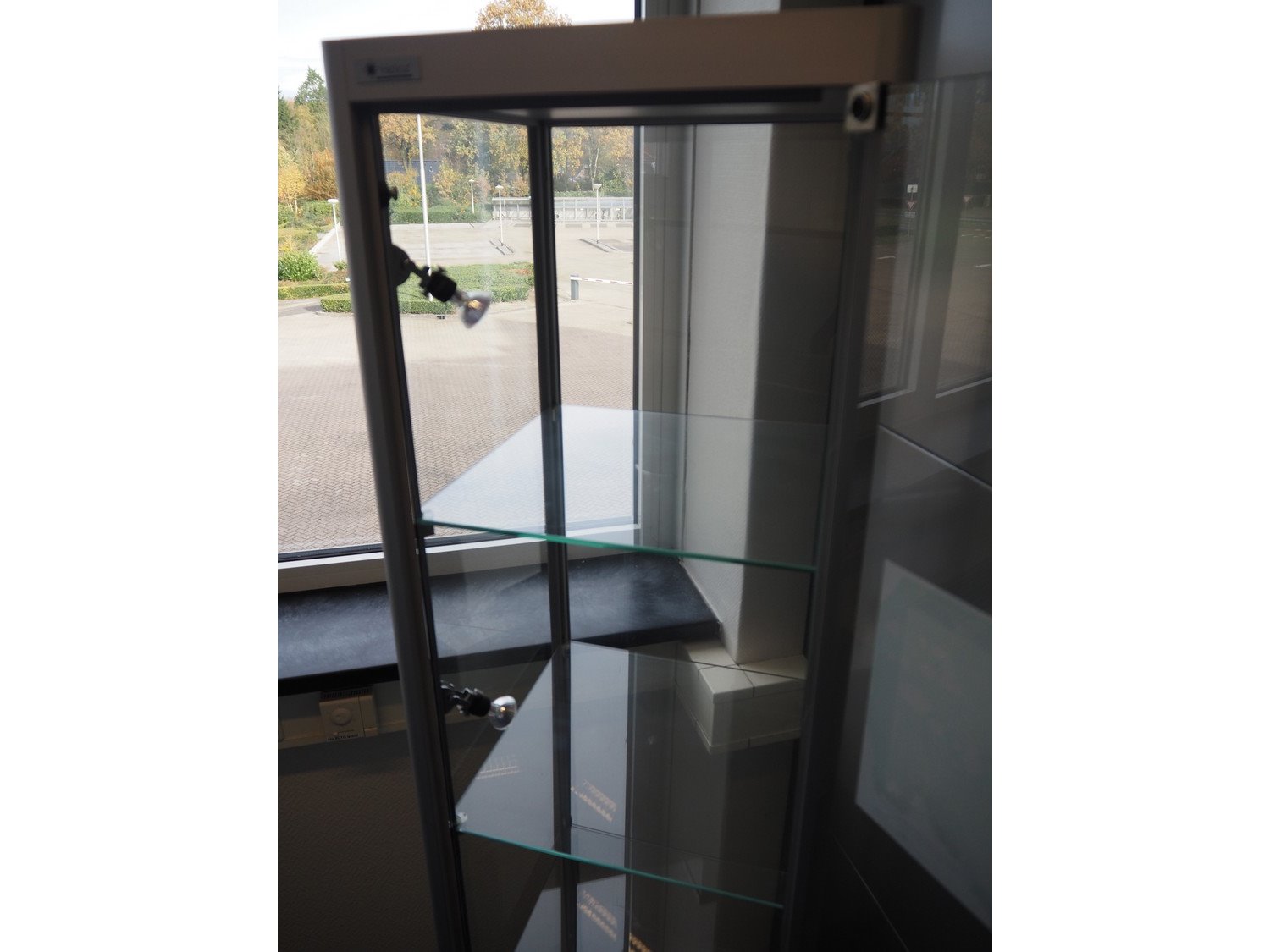 2 Glass displays, floor dimensions: 400 mm x 400 mm, (2x) total dimensions: 435 mm x 435 mm x 1755.