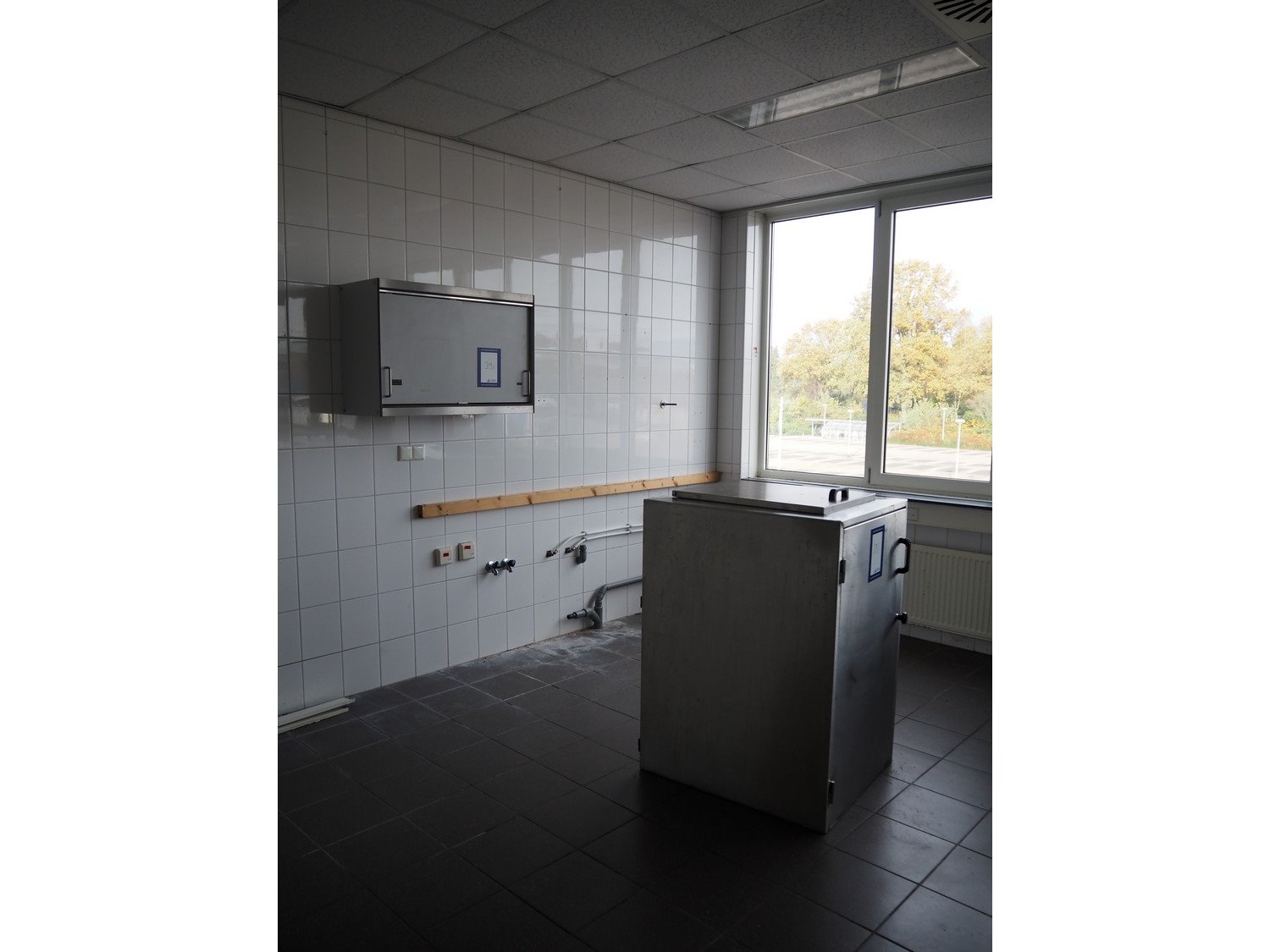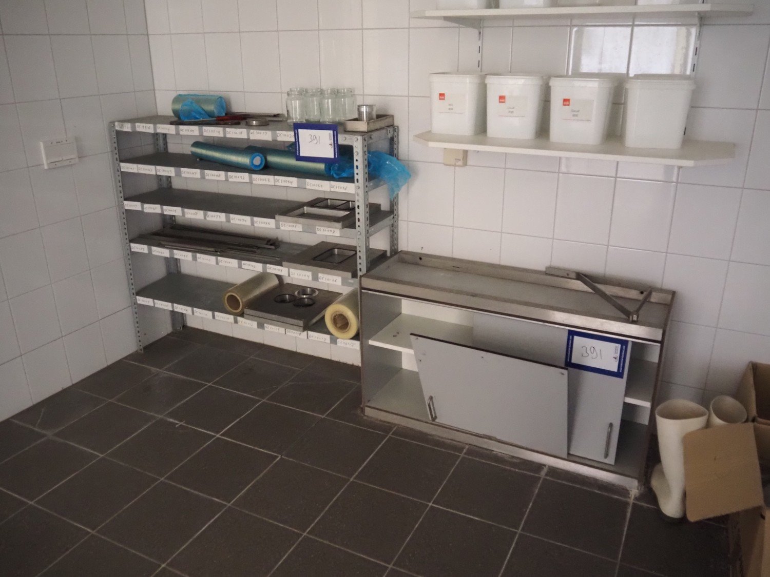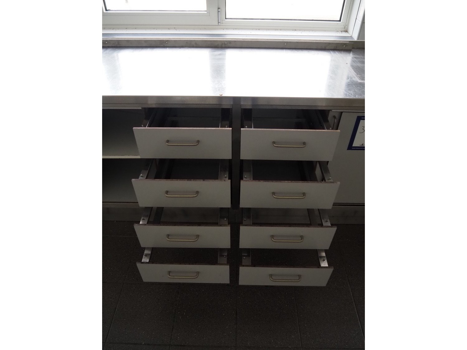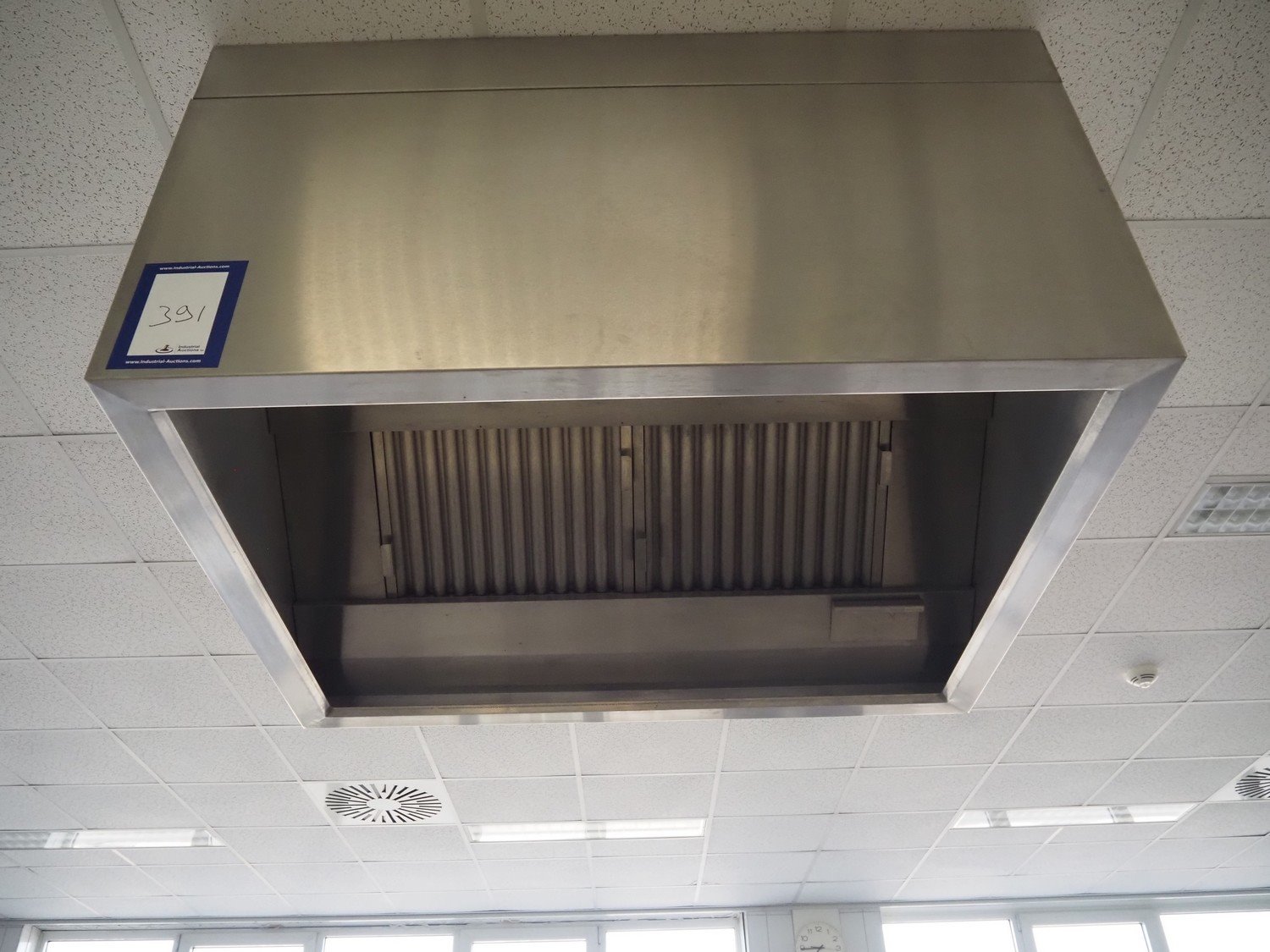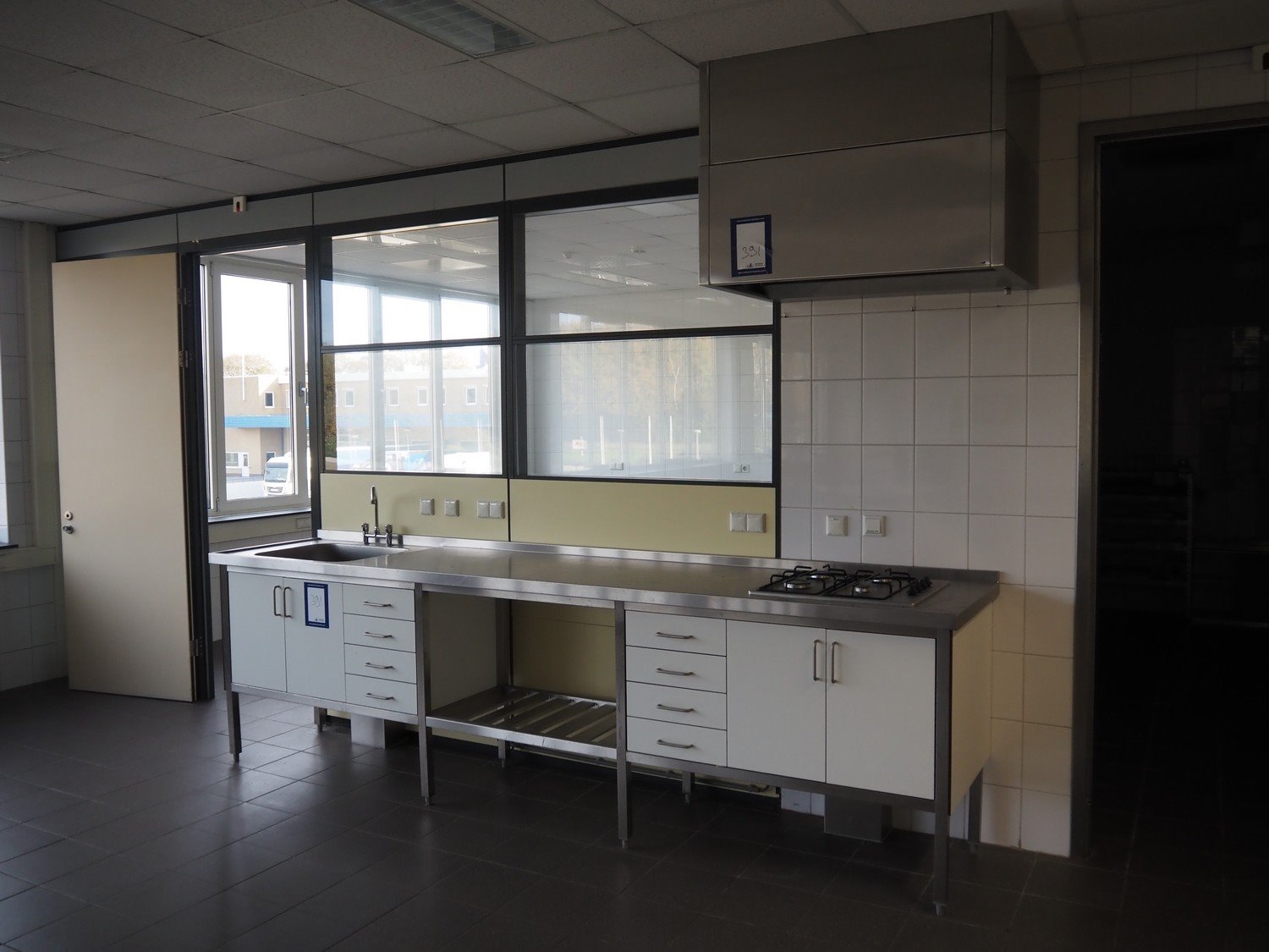 Kitchen inventory consisting of: s/s kitchen counter with double sink, dimensions: 3400 mm x 1370 mm x 900 mm, s/s kitchen counter with ETNA gas heated 4 burner stove, dimensions: 3400 mm x 700 mm x 1000 mm, s/s kitchen counter, dimensions: 3000 mm x 700 mm x 900 mm, wall mounted s/s cabinet, dimensions: 900 mm x 360 mm x 610 mm, 2 extraction hoods, dimensions: (1x) 1400 mm x 1100 mm x 760 mm, (1x) 1000 mm x 700 mm x 750 mm.