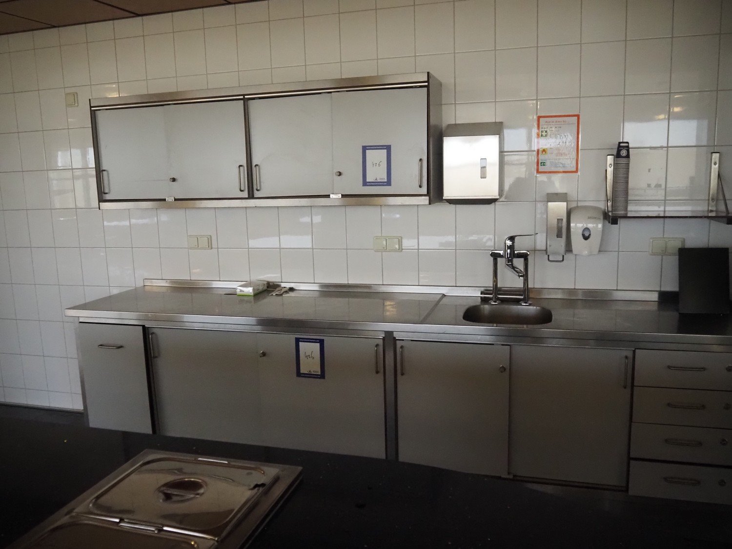 Canteen kitchen inventory, consisting of: Smeva BV refrigerated showcase, type: performer cold-trade, id number: 2001/309187, year of construction: 3-10-01, 240 V, 50 Hz, refrigerant: r 404 a, dimensions: 2500 mm x 1100 mm x 2500 mm, s/s kitchen counter with sink, dimensions: 1600 mm x 700 mm x 900 mm, wall mounted s/s cabinet, dimensions: 1350 mm x 360 mm x 610 mm, MKN kitchen counter, consisting of: double fryer, type: 1220303-02, machine number: 269801, 400 V, 3 Ph, 12.0 kW, cooking plate, type: 1221103-02, machine number: 178401, 400 V, 3 Ph, 7.2 kW, double cooking plate, type: 1223201-01, machine number: 124701, 400 V, 3 Ph, 5.2 kW, total dimensions: 2200 mm x 700 mm x 900 mm, Lainox combi steamer, type: CE105M, number: 046284101JANLLXMA, year of construction: 2001, 400 V, 3 Ph, 50 Hz, 6.15 kW, 150-500 Kpa, 5 floors, dimensions each floor: 535 mm x 310 mm, total dimensions: 800 mm x 750 mm x 1400 mm, s/s extraction hood, dimensions: 3300 mm x 950 mm x 500 mm, s/s kitchen counter with sink, dimensions: 3250 mm x 700 mm x 900 mm, wall mounted s/s cabinet, dimensions: 1900 mm x 360 mm x 610 mm, canteen counter with heated showcase, dimensions: 7800 mm x 1500 mm x 1620 mm, Smeva BV refrigerated showcase, type: performer cold-trade, id number: 2001/309186, year of construction: 3-10-01, 240 V, 50 Hz, refrigerant: r 404 a, dimensions: 2500 mm x 1100 mm x 2500 mm.