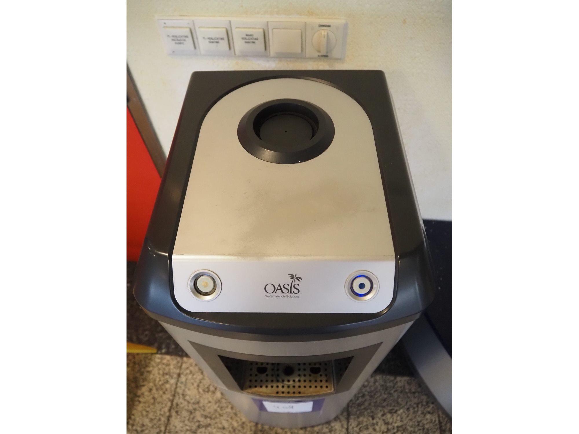 Oasis drink water dispenser, model: P1PVCDKY, serial number: 1728P29965, 220-240 V, 1 Ph, 50/60 Hz, 0.8 A, 100 W, 300 kPa, refrigerant: R134a/60 gram, dimensions: 320 mm x 380 mm x 1150 mm.
